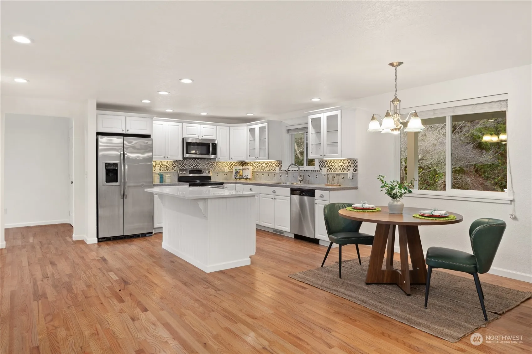 Welcome to this beautifully updated rambler offering a glimpse of the stunning Hood Canal & Olympic Mountains! Located on the outskirts of Kingston this 3-bedroom home features an open floor plan that creates a seamless flow between the spacious living area, kitchen and dining. A bonus living room adds versatility and could be great for a home office. Recent updates include a new roof, fresh paint, new carpet, and energy-efficient windows. The updated kitchen boasts stainless steel appliances, a large island with seating and modern finishes, making it a joy to cook and gather. Situated in a peaceful setting on over a half acre, this home combines comfort and convenience with breathtaking surroundings. Don’t miss your chance to own this gem!