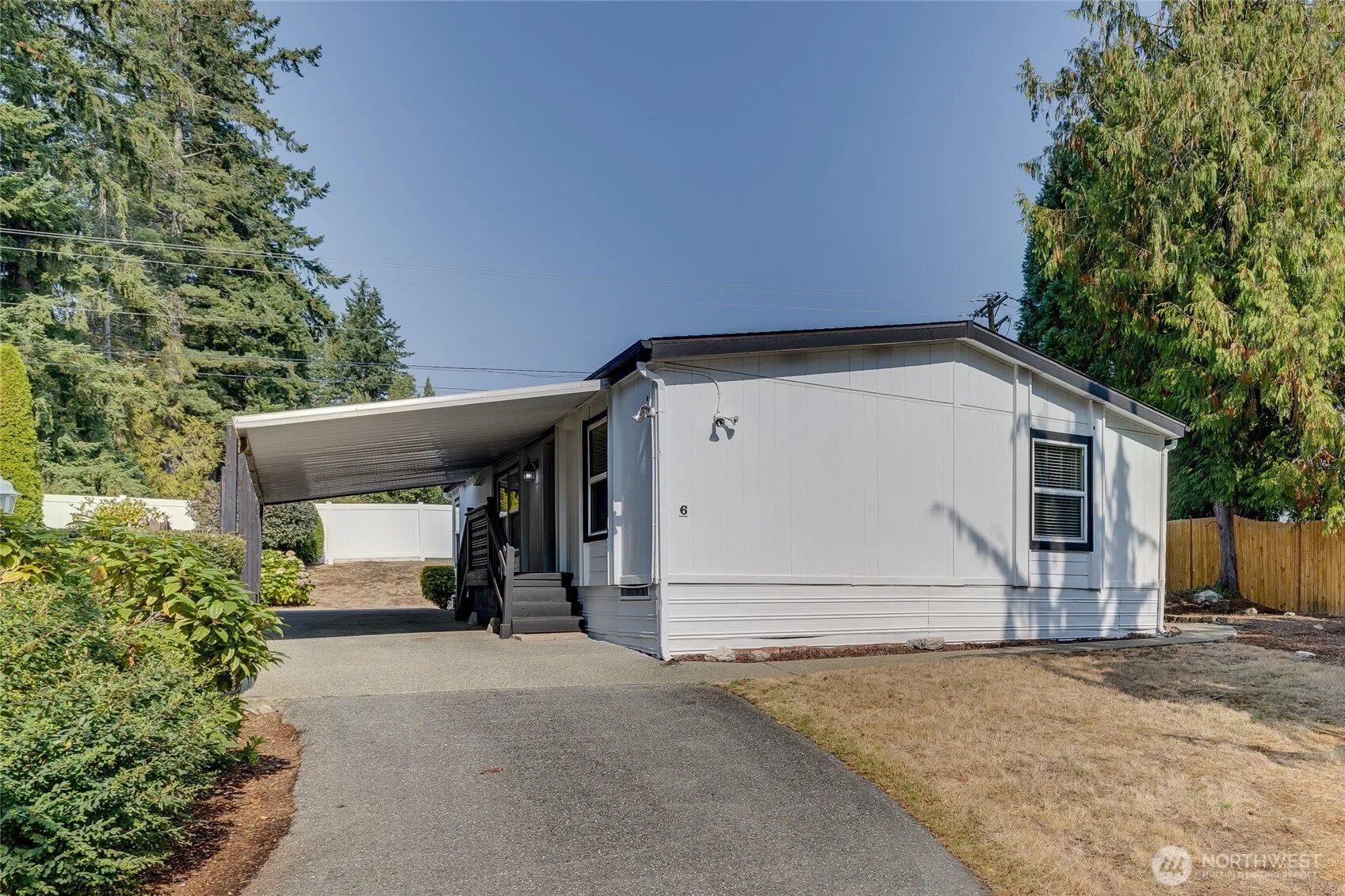 Be close to it all but feel like your own private space. Corner, private lot with long driveway and yard, this updated double wide in all ages Sherwood Village is move in ready. Updated with new paint & flooring inside. Primary bedroom has walk in closet, walk in shower + separate soaking tub. 2 additional bedrooms for plenty of room + main bath with tub/shower combo. Utility room off of kitchen. Large back deck and 2 sheds for storage. Open space + RV parking in the community. Financing options available, this is newly a CO-OP for stability in rents. Close to Mill Creek Town Center & many commute options. Everett Schools, Jackson HS. Space rent: $995, includes water, sewer, joint area maintenance, & ownership in Co-op.