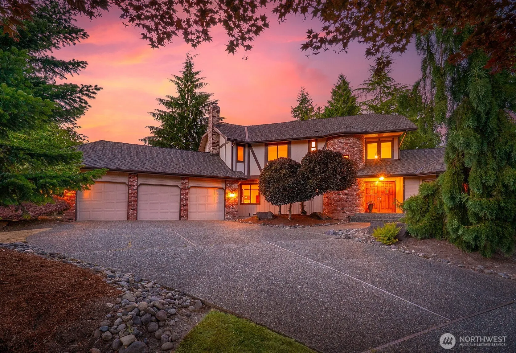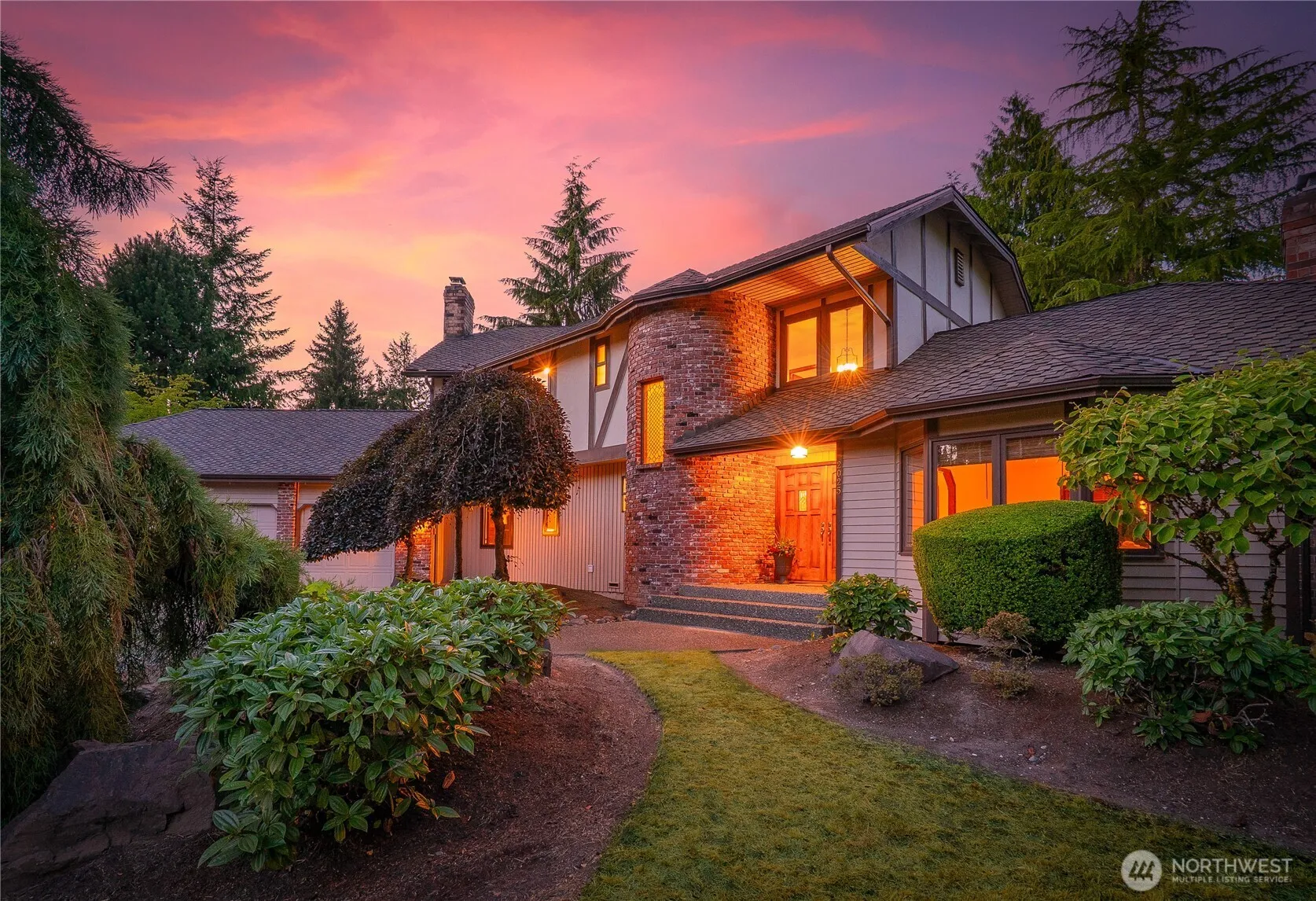 [VINE MAPLE IN THE MILL CREEK COUNTRY CLUB] Stately home majestically positioned on elevated grounds with a commanding presence. Old World Tudor style seamlessly blends timeless architecture with modern conveniences. The crown jewel is the stunning brick turret with lead-paned window, a testament to exceptional quality & craftsmanship. Copper fireplace serves as elegant focal point. Chef’s kitchen with quartz counters & KitchenAid appliances. Rich hardwood floors & wood-wrapped black-framed windows (2022). Primary Suite with private balcony. Landscaped grounds & large deck for entertaining. Presidential roof (2017). Near award-winning schools, community parks, trails, tennis, pool, golf & vibrant Mill Creek Town Center. [ELEVATED ELEGANCE]