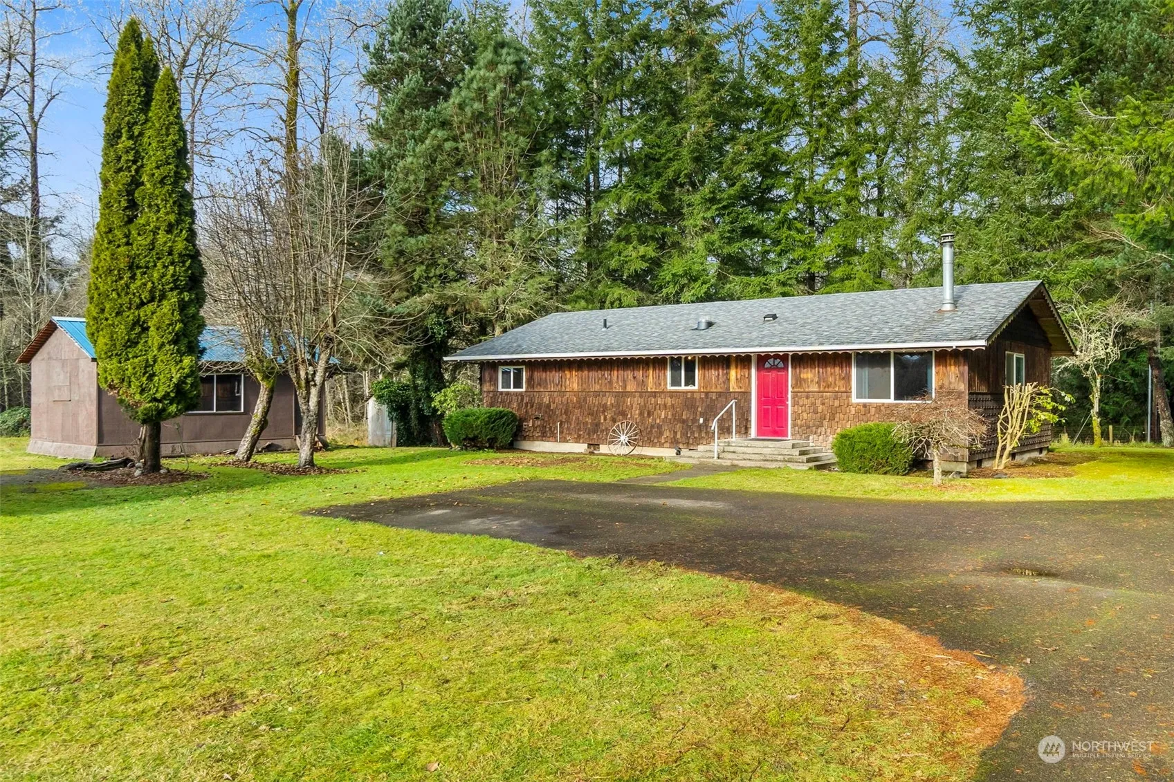 Situated just outside of Elma at the end of a quiet dead-end road, this property offers 2.29 acres of tranquil country living. Highlights include a seasonal creek, a spacious 40’x24′ two-bay shop with a lean-to, and a paved driveway for easy access. The cozy 2-bedroom home features a 3/4 bath, a large open living area with a wood stove, and distinctive kitchen cabinets. Outdoor amenities include a chicken coop, a 24’x26′ outbuilding/workshop, a concrete patio, and a large, level backyard with fruit trees and a wooded area. Conveniently located just an hour from the ocean beaches and 40 minutes from Olympia, this property is brimming with potential. Don’t miss your chance to make it your own!