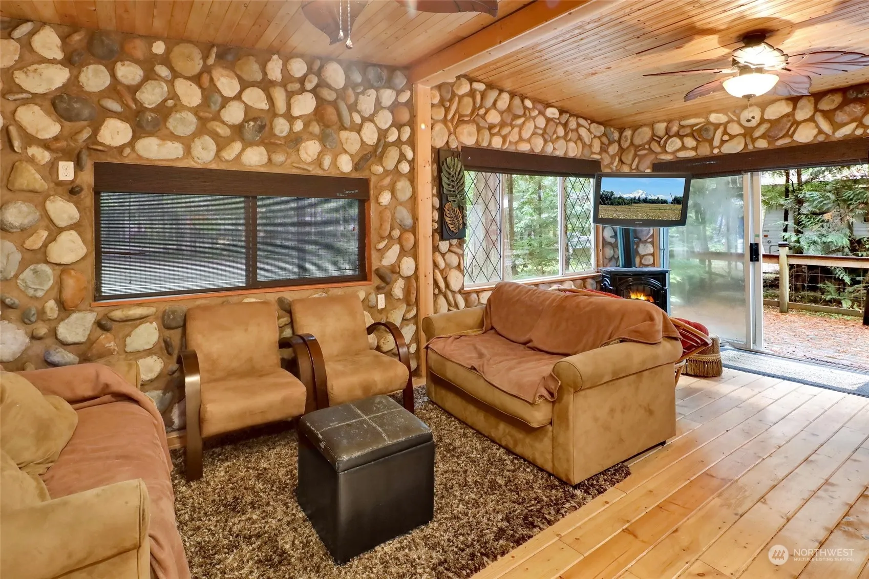 Dream of having your own Log and Stone Cabin in the woods? Relax in your own ski, golf, fishing, hiking base. Rare find, one-of-a-kind beauty. 1 bed, 1 bath + den. All furnished. All appliances, indoor/outdoor furniture, 2 fireplaces, 2 TV’s, kitchenware and dinnerware included. 608 sf cabin, 3396 SF lot, 430 SF deck + porch, 1 carport and 1 shed w/tools. The cabin is in a secure gated community with swimming pool, clubhouse, playground. Near Silver Lake recreational area, 45 minutes to Mt. Baker hiking/Ski area. 2 hours to Seattle, 40 mins. to Bellingham. 100% ownership, 120 days recreational use in any time of the year, mail delivery ok. Can not be year around residence. No short or long-term rental allowed. County accessed value $93,234.