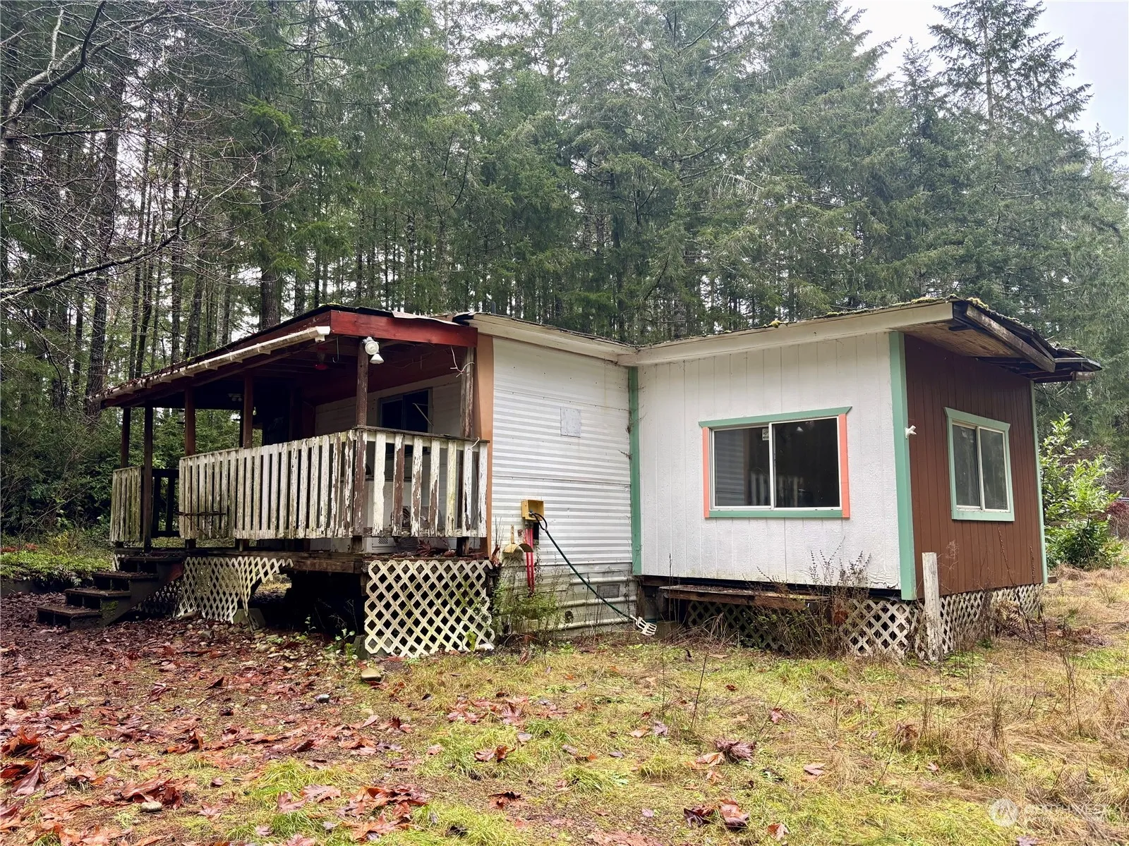 INVESTOR ALERT! 1967 single wide sitting on 1.3 acres w/ power, water & a 5bd septic (pumped in 2022) on property. Bring your tool belts & tear down the existing home & start fresh. Fruit trees – plum & pears. Flat lot w/ tons of parking, gardening space, play area & a circular driveway. Collins Lake includes a community beach and park. Value is in the land. Direct access to DNR land. Seller offering to clear overgrown driveway. Minutes away from Belfair State Park, Collins Lake & dirt/riding trails – View today!