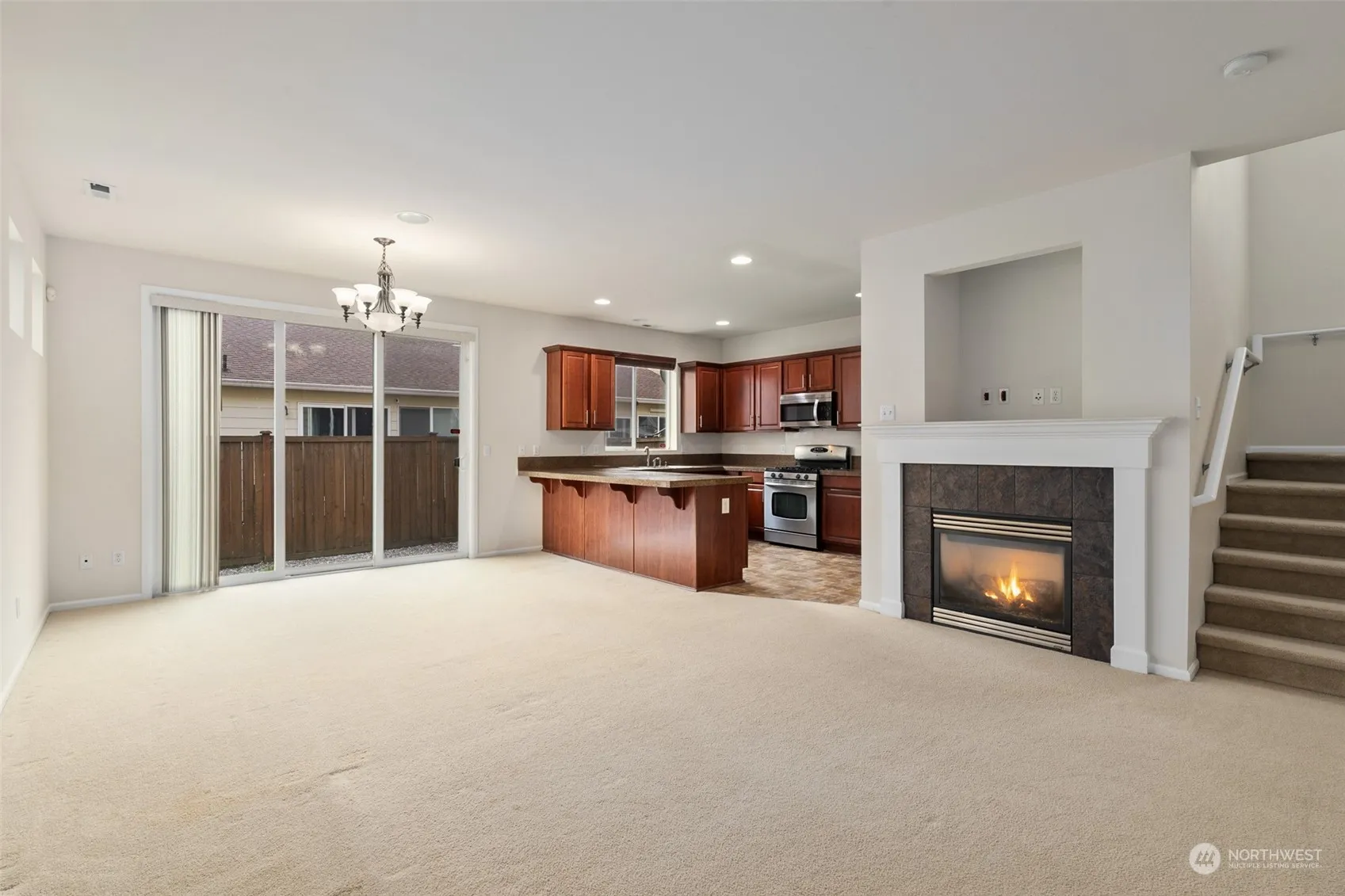 Radiance invites you to this D.R. Horton build with over 1,800 sq feet of living. Open kitchen with maple cabinets, stainless steel appliances, eating bar and large walk in pantry. Adjoining living area with gas fireplace which opens up to backyard; perfect for guests. Large master suite with 5 piece bath and walk in closet. Oversized garage. Fully fenced and low maintenance yard with patio. Minutes to freeways, schools, sounder station and future link light rail. Enjoy community parks including; sports courts, skate park, wiffle ball field, walking trails and more. Call for your private showing.