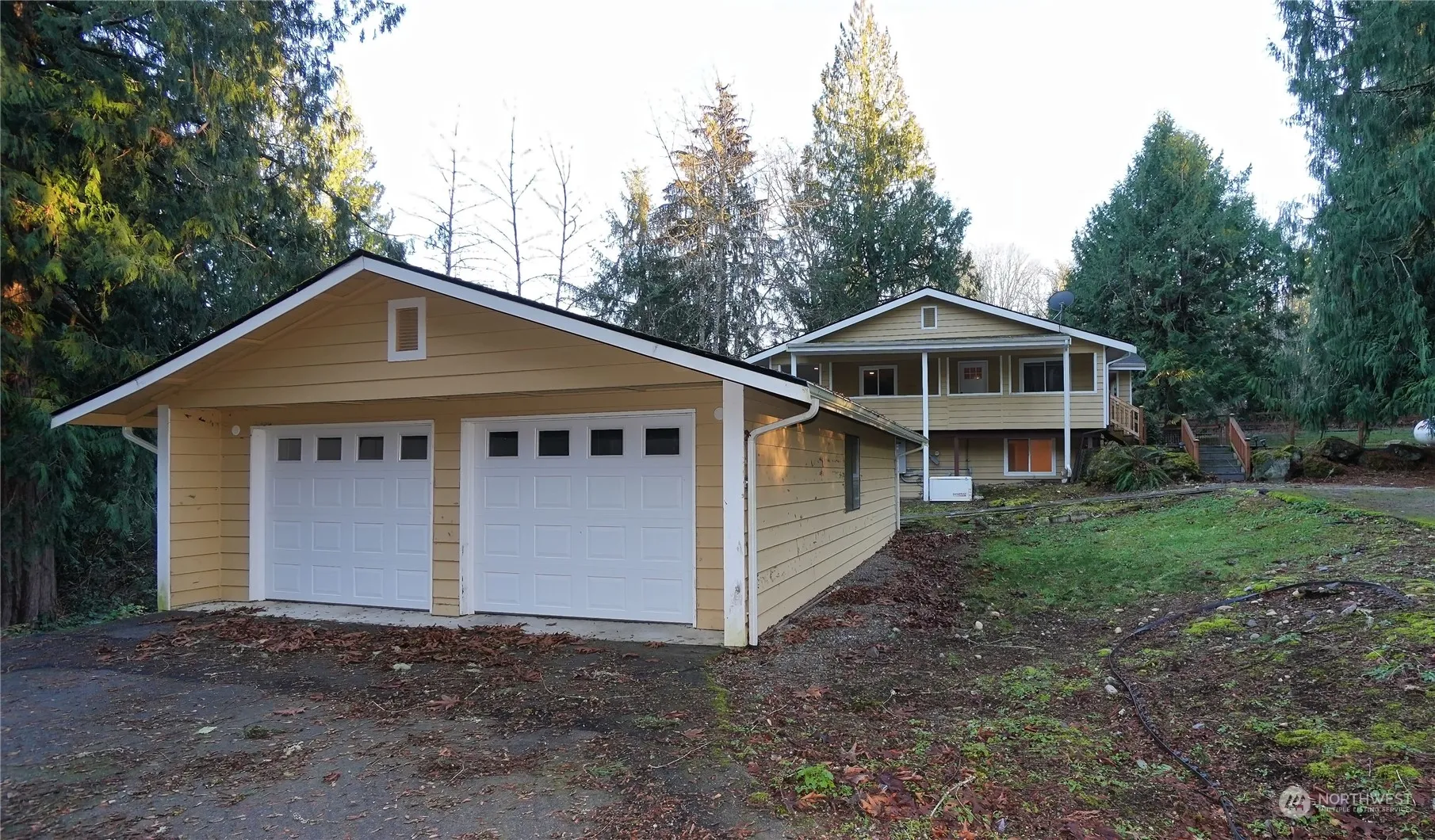 Secluded home in the woods. Get away from it all to your private piece of paradise. Beautiful kitchen with quartz countertops and expansive island. Open floor Plan upstairs and downstairs for maximum enjoyment. 2 conforming bedrooms & 2 non conforming bedrooms. 3 bedroom septic. Main floor den. Downstairs has expansive areas perfect for recreation & quiet living. Large decks to overlook your property. Some of the flooring has been removed in some rooms and will need replacing. Downstairs utility room. Fenced area perfect for pets. Detached garage could hold 4 cars. The Barn/Shop and attached well house. Barn has one horse stall, large oversized garage door and offers plentiful space inside. Long private driveway. Adjacent to forested areas.