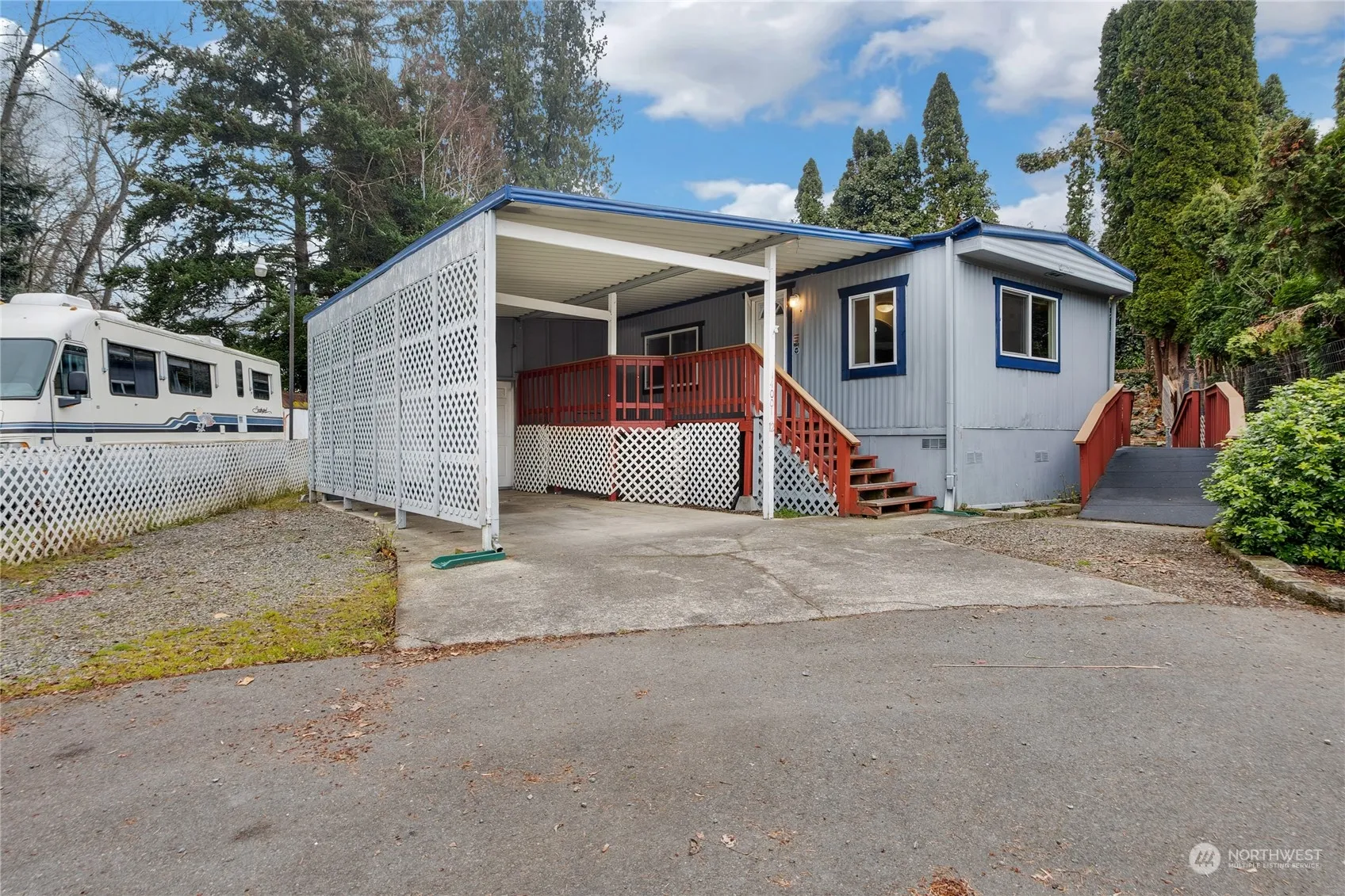 Don’t pass this one by! This home on it’s own land in Rainier Manor, a 55+ community is located in a great location with easy access to Hwy 410, shopping, schools & more. This home features a bright kitchen with eating space and plenty of storage. A spacious living room with access to a huge back deck to enjoy your private back yard. You have two bedroom, a full bathroom, utility space with a second access to the private back yard. You have a large carport area with a door to the back yard and a second door for access to the she, in addition the home is ADA accessible. Call your broker today to set up a showing!