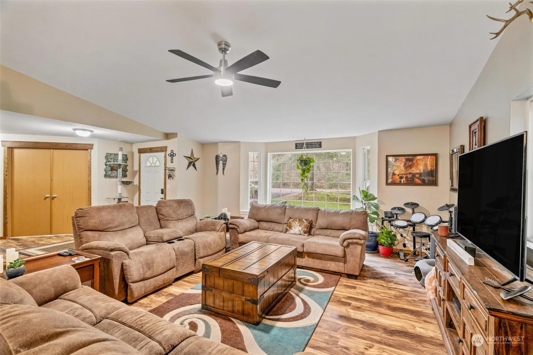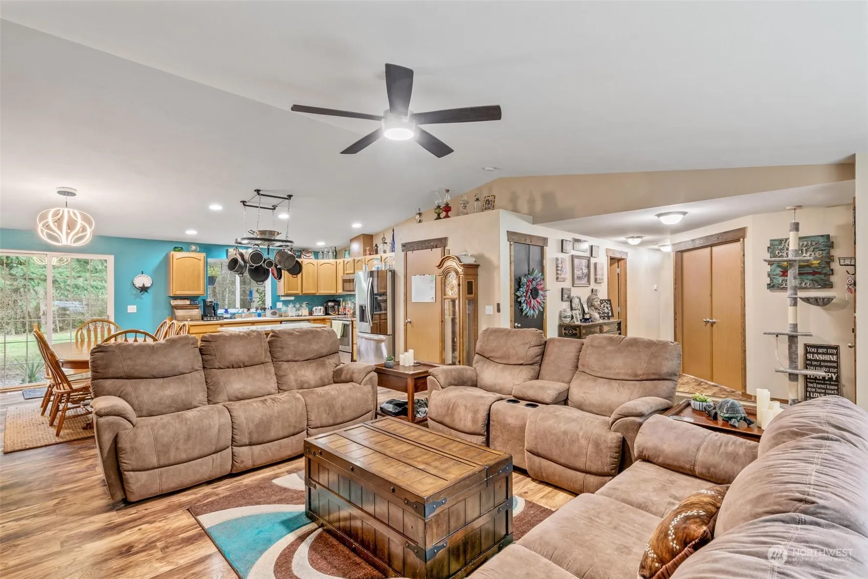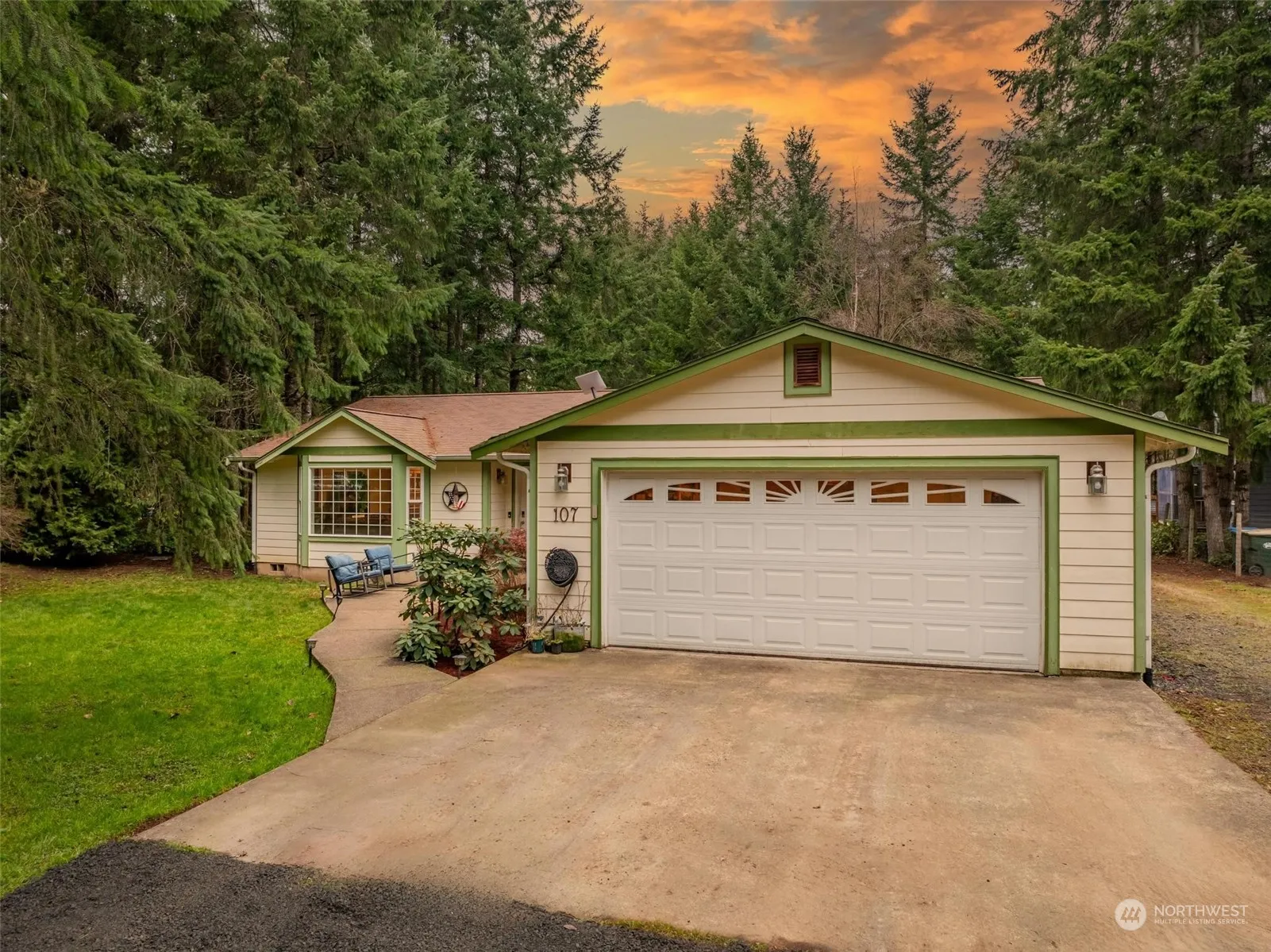 Move-In-Ready, 1731 SqFt One-level home w/ 3BD, Office, 2BTH & 3 car garage space. You will enjoy this private, treed lot w/ over One-acre, mature landscaping & located on the end of a peaceful & quiet lane. Open concept home has vaulted ceilings, New interior paint, New laminate flooring & New custom wood trim. Kitchen w/Island, pantry & all appliances stay. Spacious Primary bedroom w/attached bath & large walk-in closet. Property features heat pump, 2-200 Amp panels, water manifold/pex plumbing, 16x24x14 Shop, RV parking & hot tub stays. ToledoTel fiber internet available at road & conveniently located 5-7 min from I-5. Check out Video Tours. Don’t miss this one.