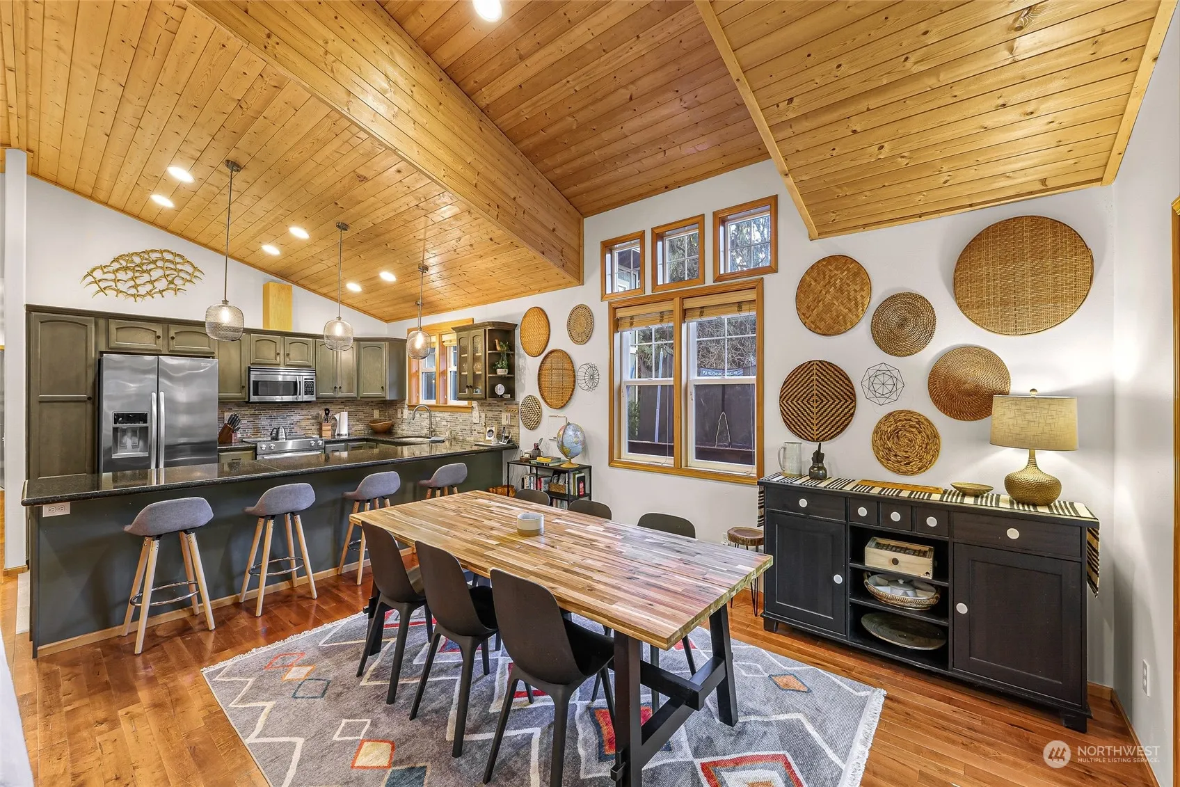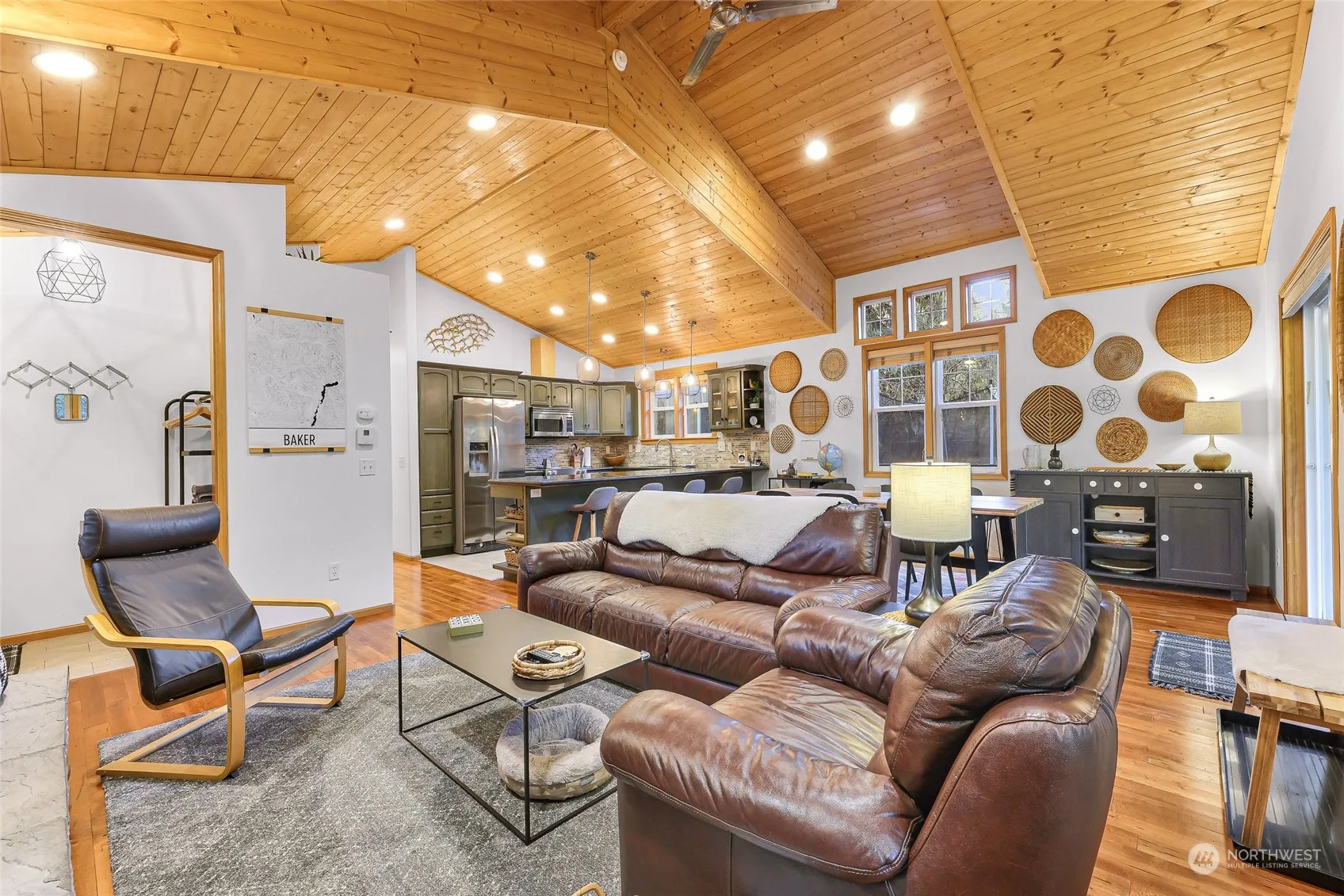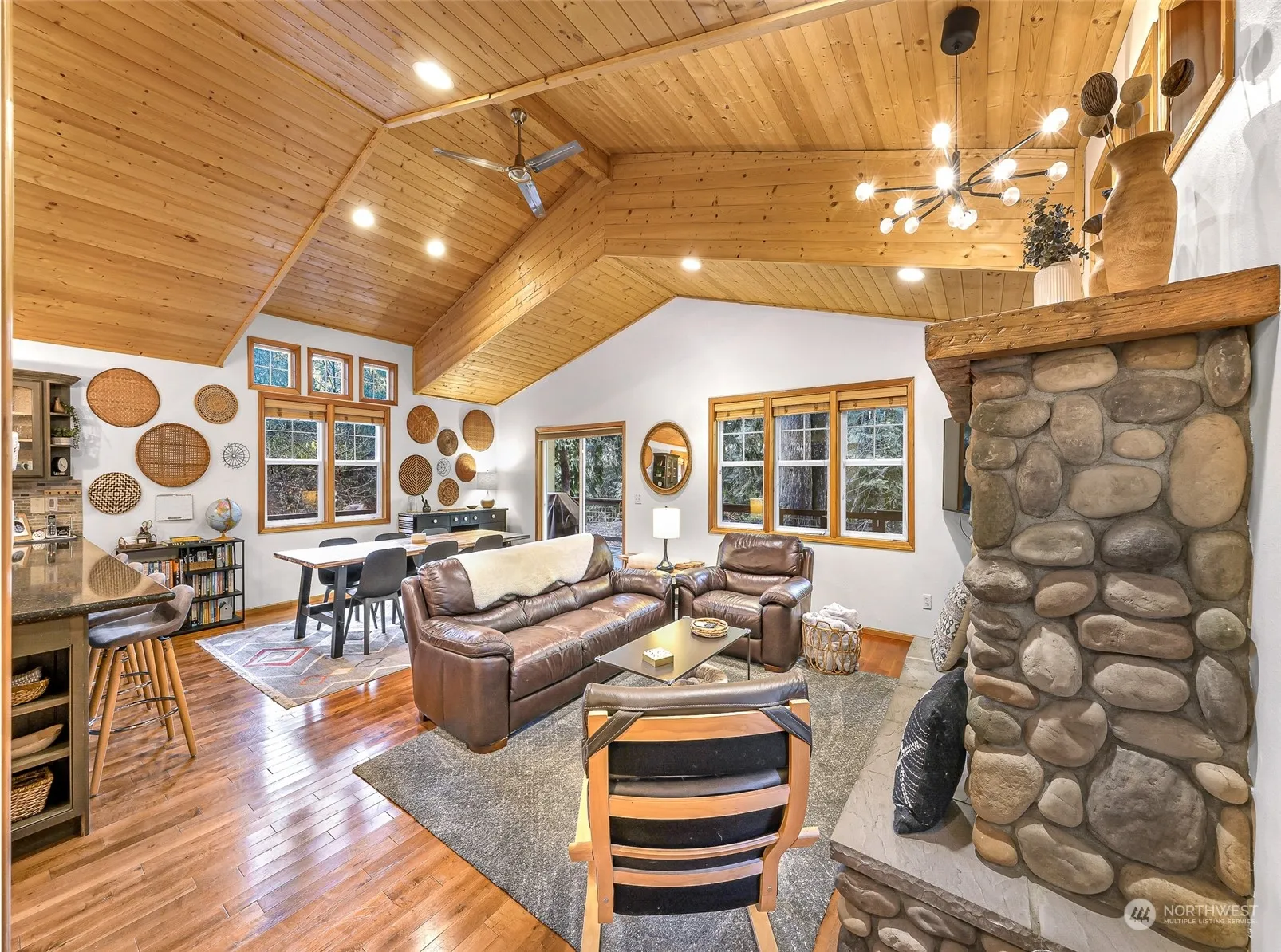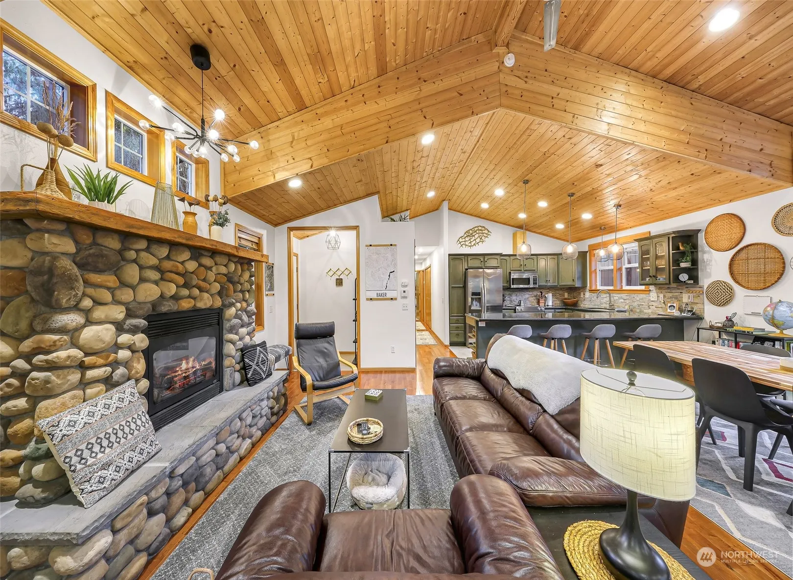 This 2005 stick-built, single-level home in the Mt. Baker Rim gated community is the perfect mountain getaway. Just minutes from Mt. Baker Ski Area and nearby hiking, biking, and kayaking, the home features an open floor plan with cherry hardwood floors, a rock fireplace, and stainless steel appliances. With 3 bedrooms and 2 baths, the home also includes a private slider to a new hot tub on the wraparound deck and a firepit for outdoor gatherings. Additional features include a large storage area/shop, a separate shed, generator, Ziply fiber internet (coming soon), and access to the community center with a pool, clubhouse, courts, and sauna. Ideal as a primary residence or second home, with an electric vehicle hookup and durable metal roof.
