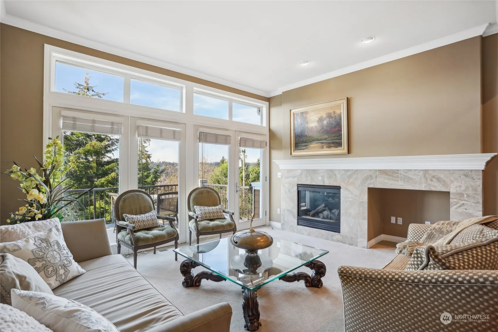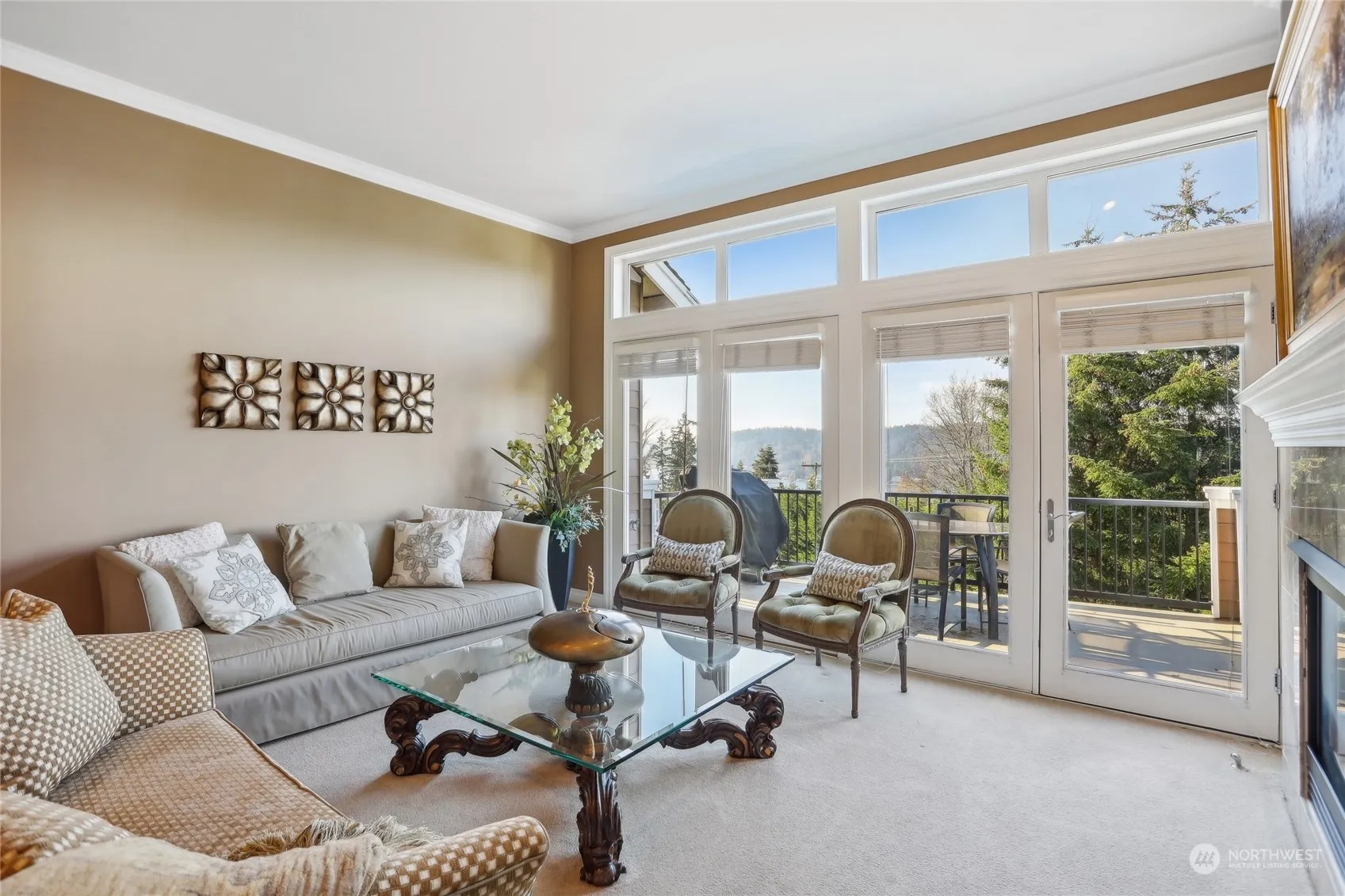 Easy, low maintenance living while keeping the large entertaining spaces and elegance of your home. Privacy abounds in this end unit with views of Lake Washington. Walls of windows flood the home with natural light. Home features coved ceilings, gas fireplace, hardwood floors and radiant heat. Main floor primary suite with spa-like 5 piece bath, walk-in closet and more lake views. Expansive kitchen with gas cooktop and tons of cabinets and storage. Downstairs has the 2nd bedroom, full bath, a 3rd room that is currently being used as an office, plus a family room with custom built-ins. Large view deck with gas hook up. 2 car attached garage plus additional off street parking.