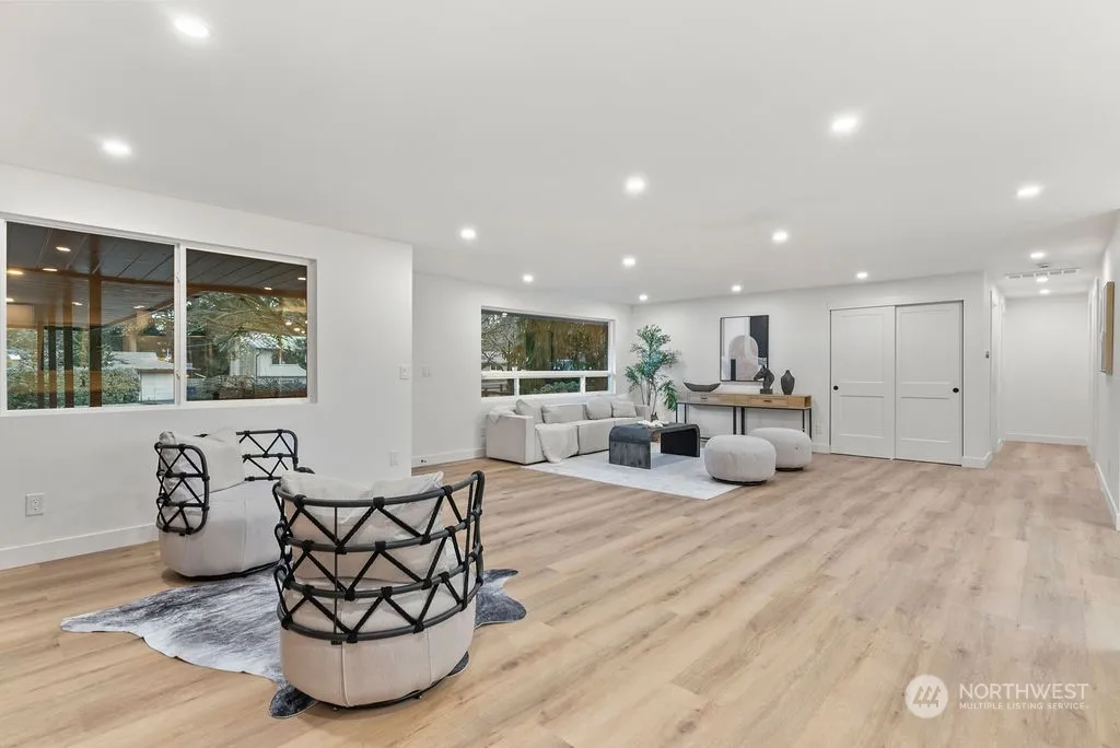 Stunning HGTV-style remodeled rambler with 4 bedrooms, 2 bathrooms, and an open-concept design perfect for modern living. The spacious primary suite features a luxurious ensuite bathroom with custom tile work. The living area showcases an accent fireplace wall, adding warmth and character. The gourmet kitchen boasts custom cabinets, quartz countertops, and a stunning waterfall island, ideal for entertaining.Outside, the fully fenced yard offers privacy and space for outdoor activities. The extra-large 600 sq. ft. garage provides plenty of room for vehicles and storage. Conveniently located near Millcreek Center, Silver Lake, Boeing, and with easy access to I-5,this home blends style and functionality.Don’t miss this must-see gem!Won’t Last!