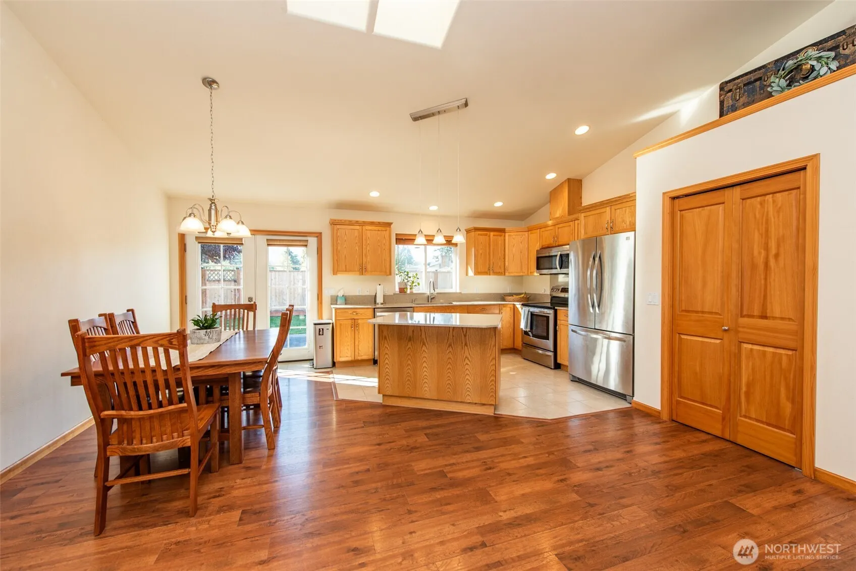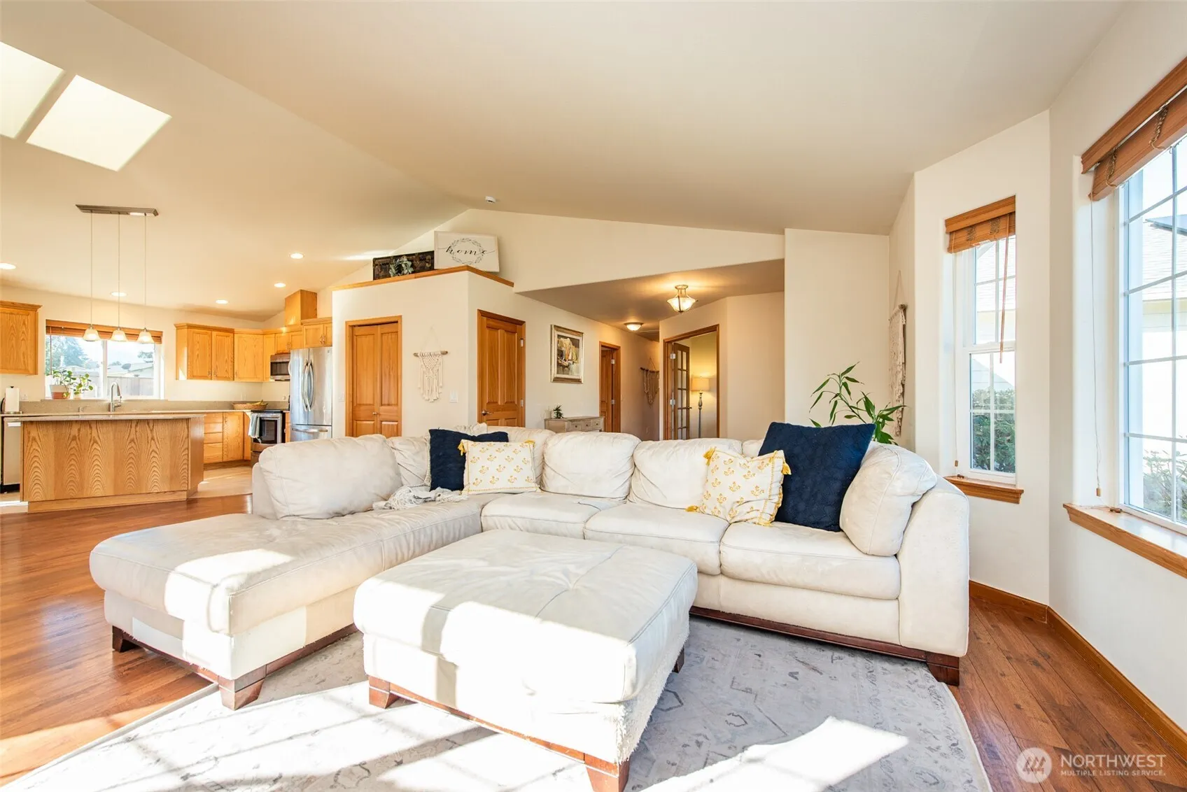 Welcome to this beautifully maintained 3-bed 2-bath home in sunny Sequim, perfectly located close to town, shopping, and all amenities. Bright and inviting, the home features vaulted ceilings and skylights in the open concept living and kitchen, perfect for entertaining. The kitchen and bathrooms have all been updated and combine modern finishes with functionality. The current owners enjoy a $50 electric bill year round with the solar panels, even in the winter months. The roomy two car garage features overhead storage racks and storage cabinets to maximize your garage storage space. Outdoors, enjoy landscaped front and fully fenced back yard. This home offers comfort, style, and convenience with a zero step entrance to the home and garage.