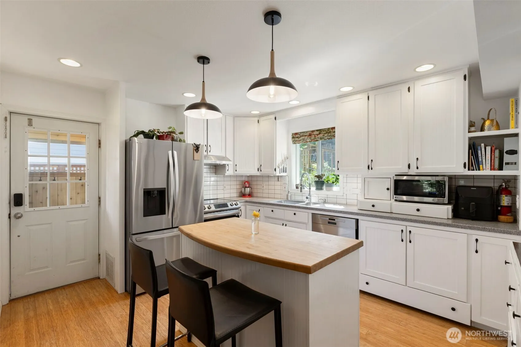 Multi-generational living at its finest w/ a 3 bed house, 2 bed ADU & 1 bed APT. This exceptional property offers versatile living. Main home (2128 sq ft) features built-ins, designer finishes, bamboo floors & bonus rm plus office. Primary suite boasts a jetted tub, 2nd bdrm w vaulted wood ceilings & 3rd bdrm includes walk-in closet. Step outside to an inviting patio w outdoor shower, sauna & hot tub hookup. ADU (1009 sq ft) w/2 beds & 2 bths is light & bright w fenced yard—perfect as rental. Detached 950 SF garage / shop w 1 bed APT above w its own bath, laundry & kitchenette—ideal for extended stays or rental income. Just steps from Cappy’s Trails & minutes from North Beach & Ft Worden—nature & adventure are right outside your door!