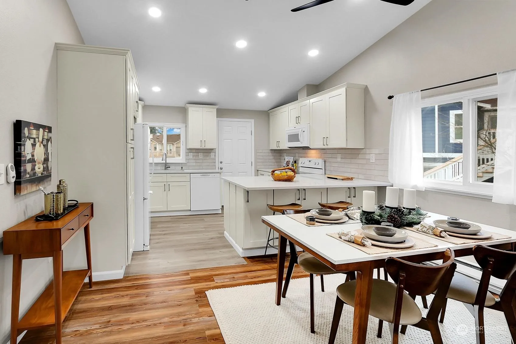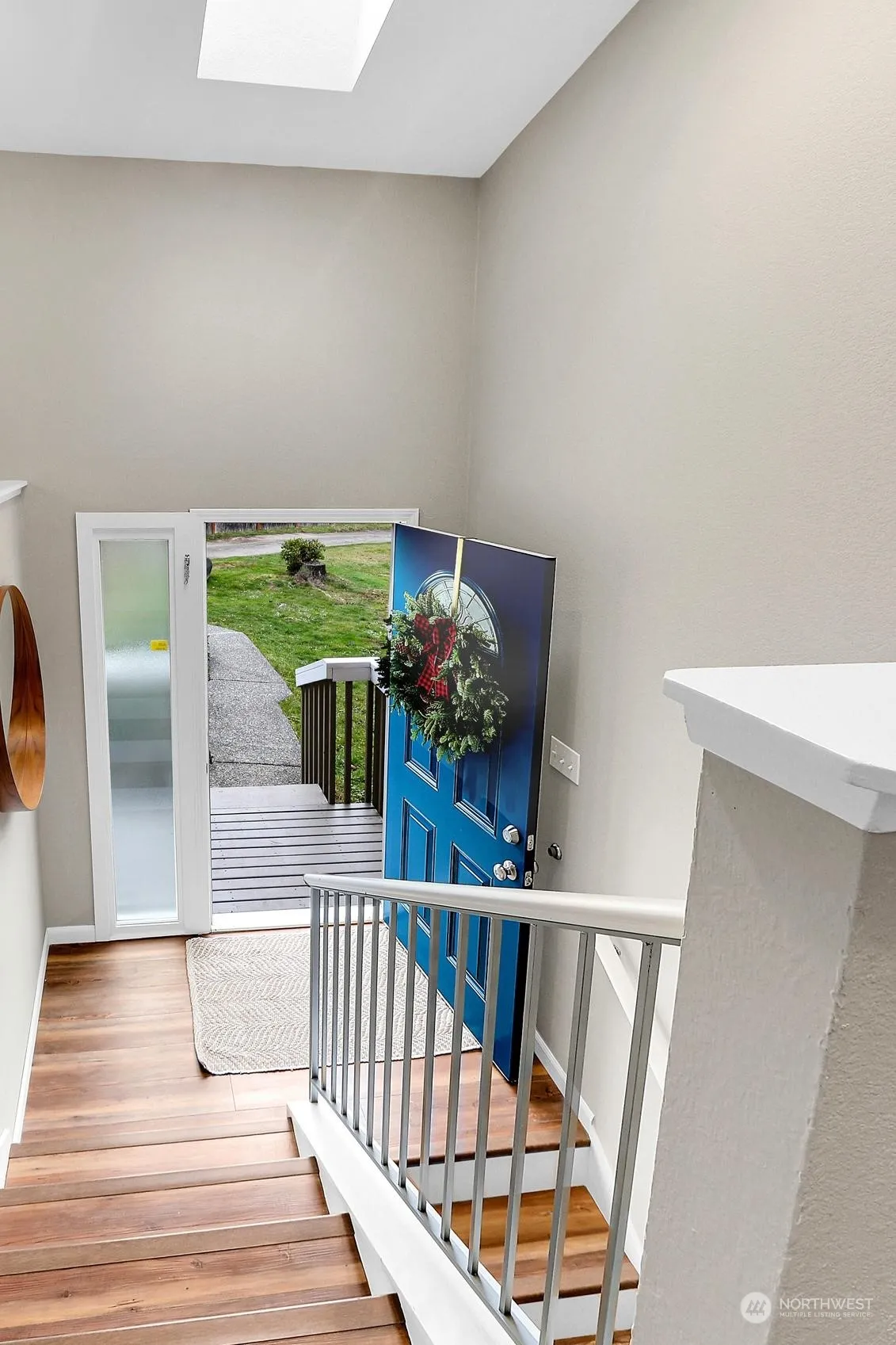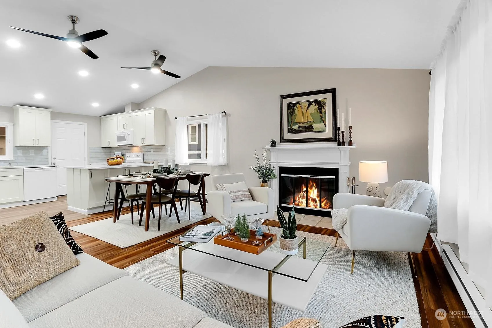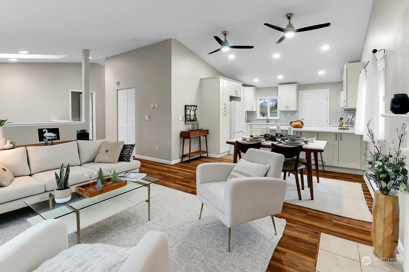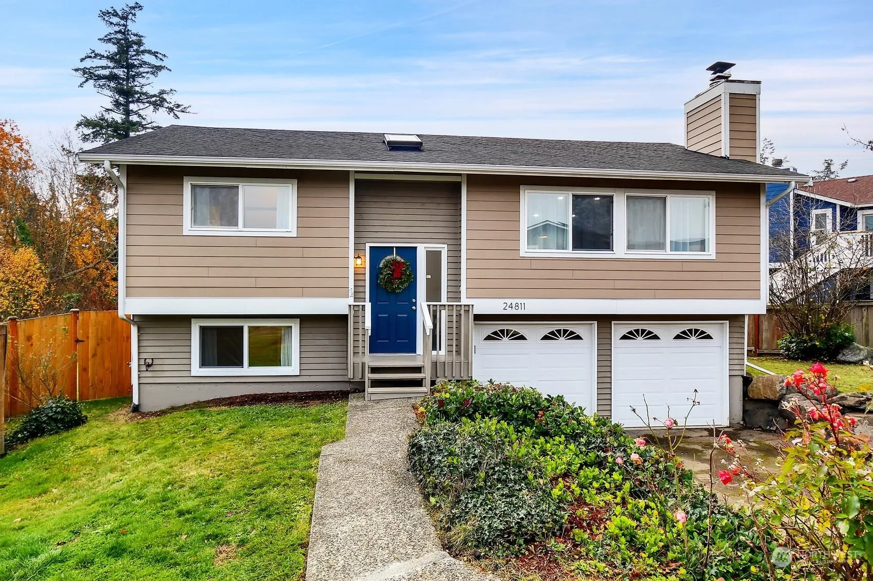 In close proximity to downtown Des Moines, waterfront parks, and freeway access, this remodeled home on a large lot with space for boat or RV parking feels welcoming. Inviting 2-story entrance with skylight offers warm, wood-like luxury vinyl flooring that flows throughout home. Open great room, dining, and kitchen, with vaulted ceilings, are illuminated with light from large front windows. Tastefully remodeled kitchen offers access to an entertaining sized deck and large fenced backyard. Three bedrooms and two bathrooms on upper level, including a primary suite with ¾ bath, and updated main bath with tiled walk-in shower. Lower level boasts a cozy family room, adjacent bedroom, and oversized 2-car garage. *Triple-pane port package windows.