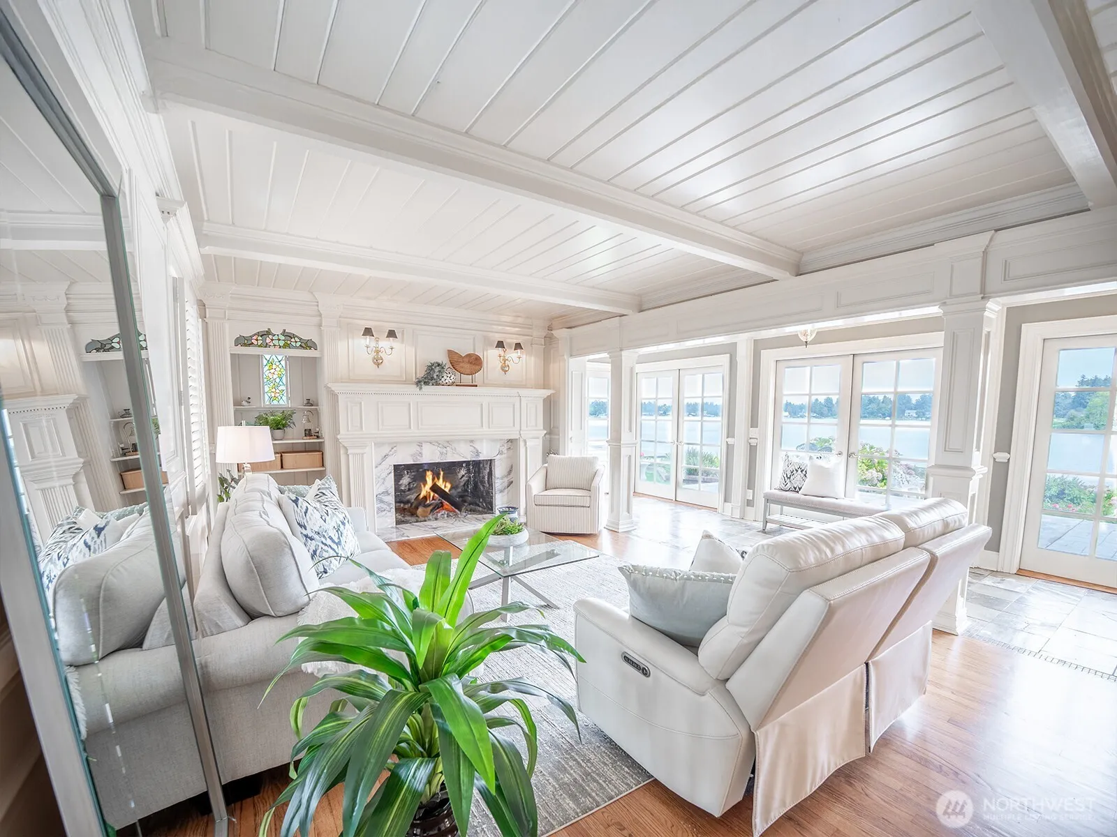 Charming 1931 Tudor on Lake Steilacoom. 130’ +/- private waterfront with magnificent gates at the entrance. Situated on 1.75 acres across three parcels, blending timeless craftsmanship with modern updates. Features include a main floor primary suite, 2 baths, an updated kitchen with granite countertops, stainless appliances, and an apartment above the detached garage. Expansive millwork, stained glass windows, window seat dining, and 2 fireplaces add warmth and character. The boathouse includes a kitchenette with pass-through serving windows, a cozy loft, a propane fireplace and a lakeside deck. Enjoy mature privacy landscaping, stone patio terraces, a private dock, sweeping lake views, and a rare combination of privacy and convenience.