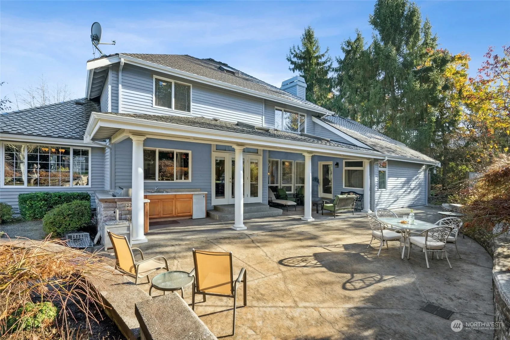 Welcome to this beautiful, updated Buchan home in Taylors Ridge. This home boasts a newer main floor primary, with 5 fixture bath. Newer expanded kitchen great room, oversized island, with under counter microwave. Slab granite counters, upper scale ss appliances, with French doors opening out to a storybook back yard with stamped concrete and rock terraced walls. Fully fenced with western exposure. Second floor includes 3 bedrooms, family room and 2 baths. Take the second staircase down to kitchen great room and garage. Central air, outdoor kitchen 3 car garage. Top schools.