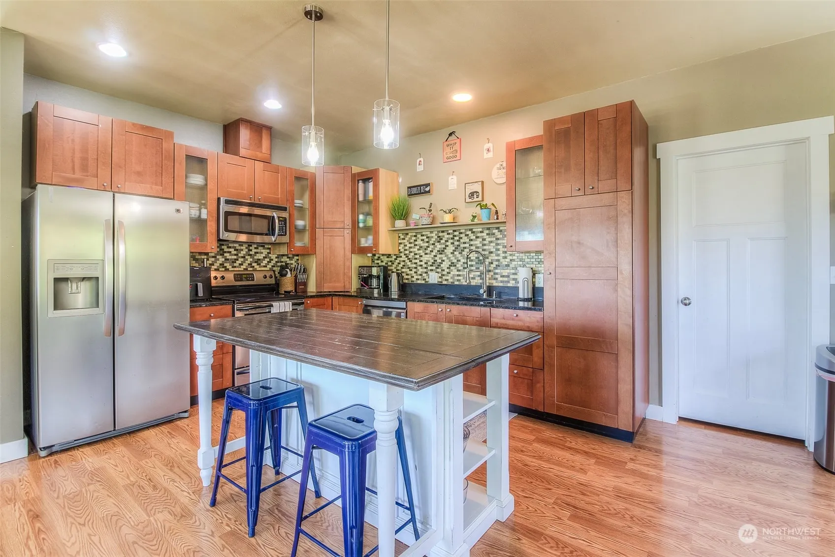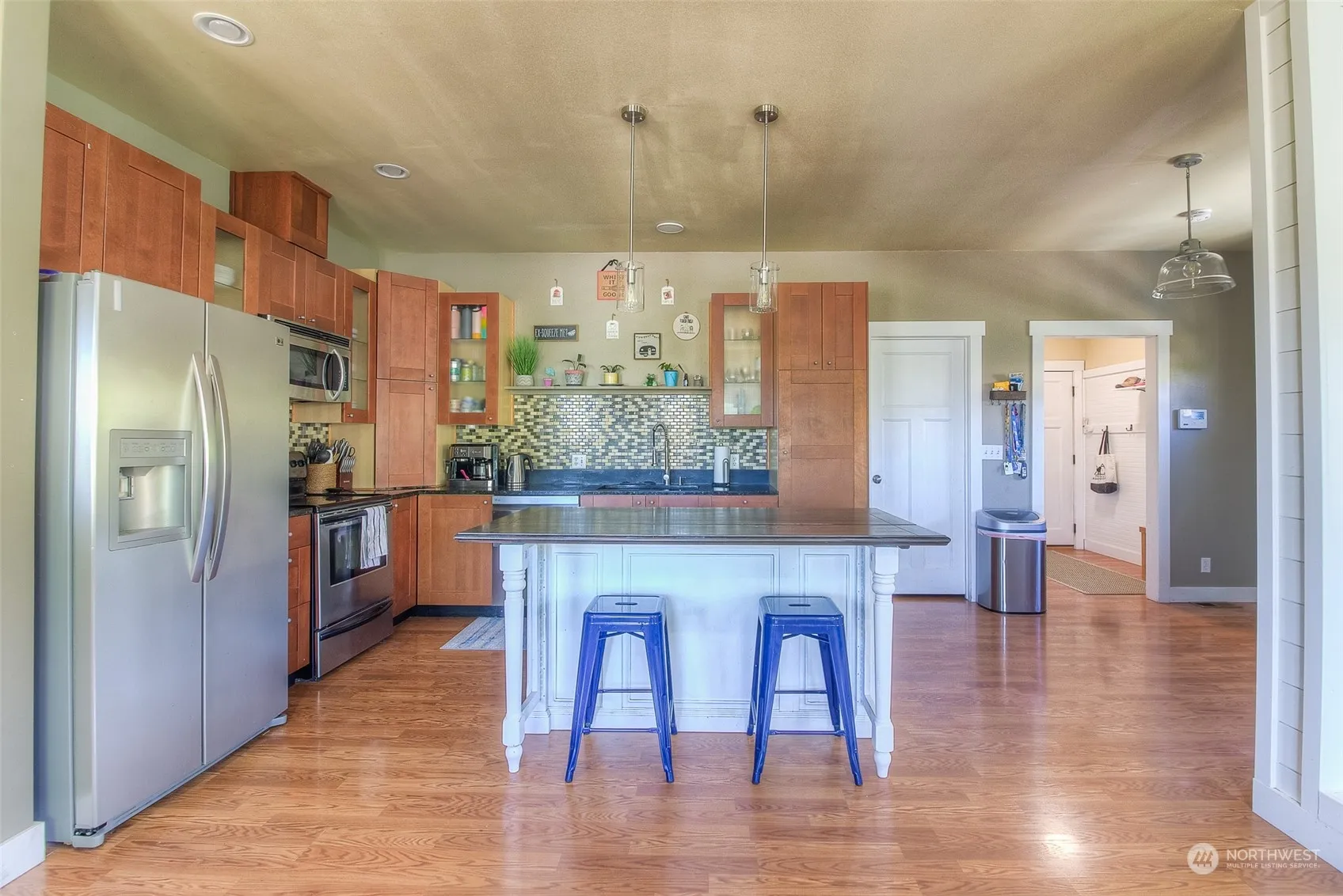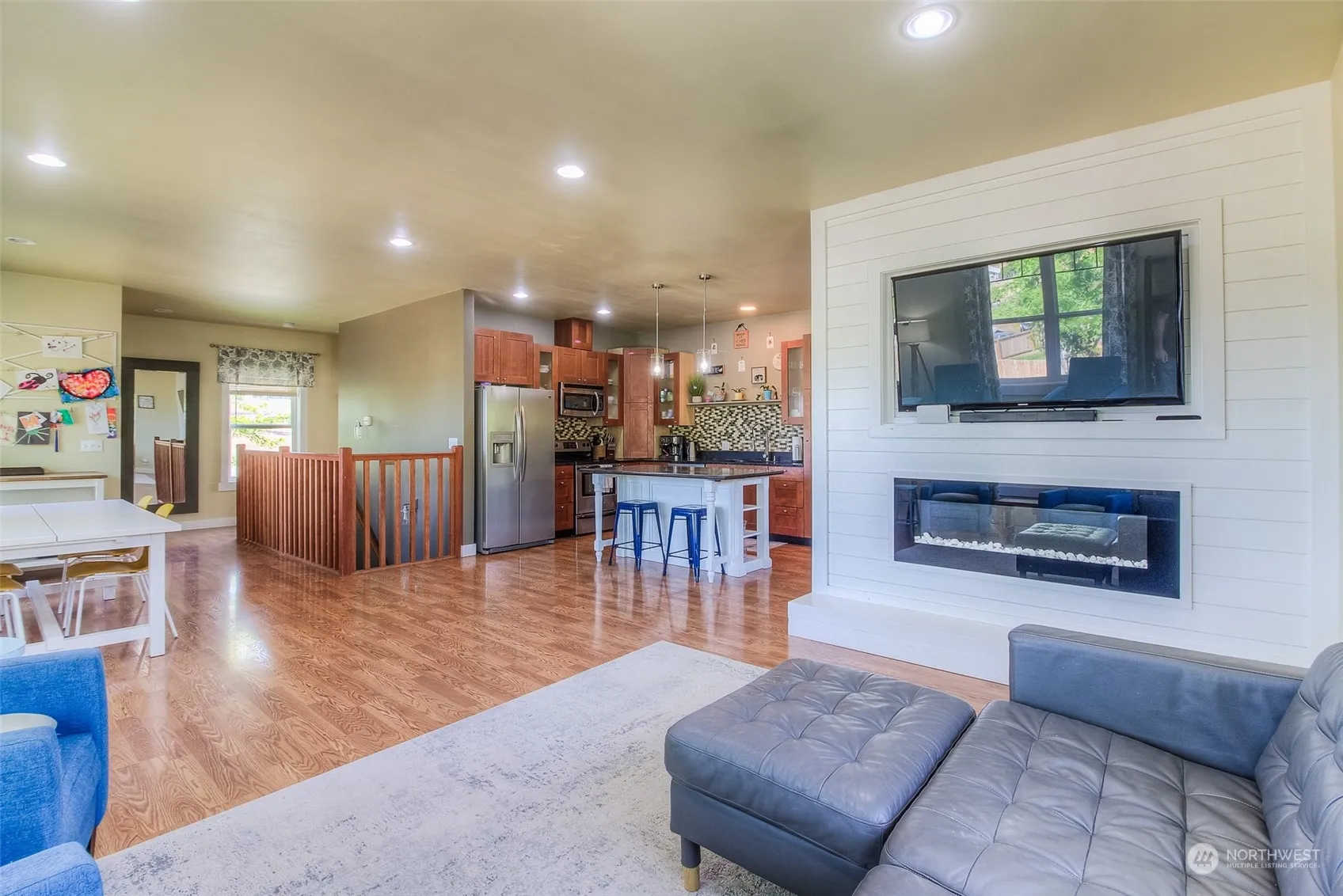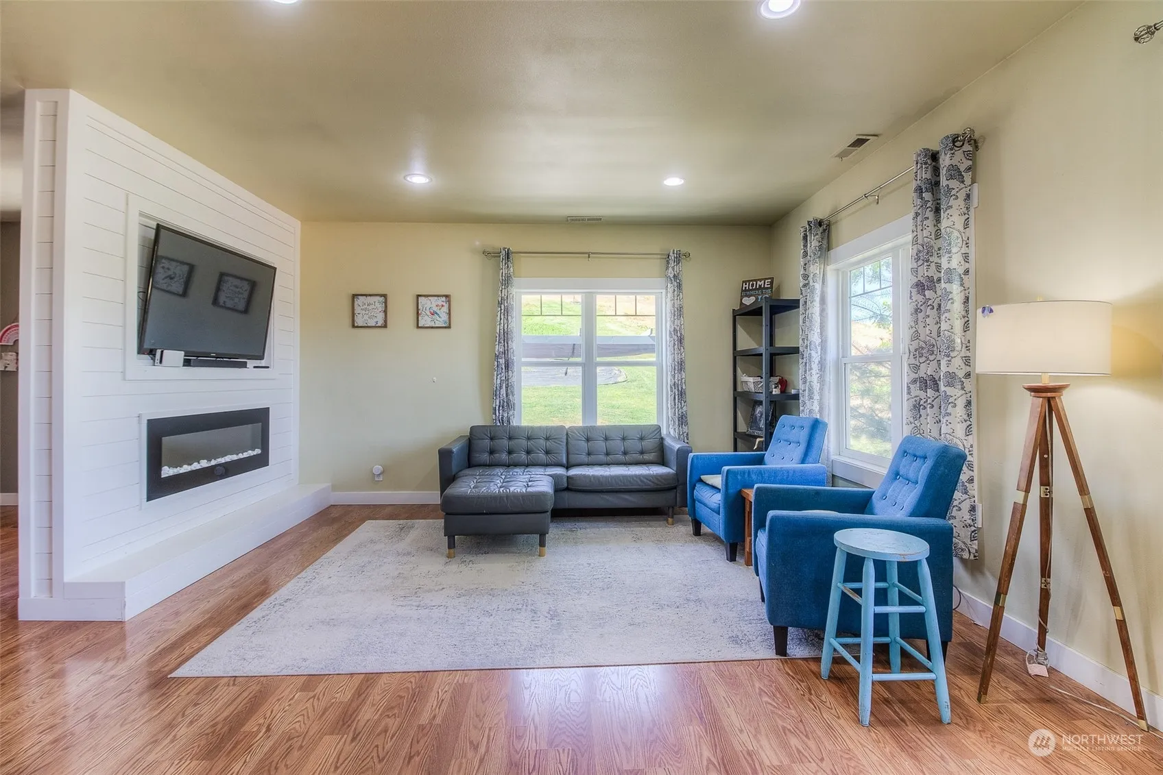 Tucked away quietly on the outskirts of Selah, with a country setting and phenomenal view, this 2560 SF home has 4 bedrooms and 3 baths. The upper level features an open concept kitchen with island and pantry, large dining area, family room, half bath, mud room, primary suite and primary bathroom with double vanities and claw foot bathtub. The lower level offers a second family room, laundry room, bathroom with double sinks, and 3 bedrooms. The outdoor space sits on almost one acre and includes a variety of trees, a terraced yard that would be great for gardening, a back patio, children’s play area with play structure, with plenty of space for parking and lots of room to roam.