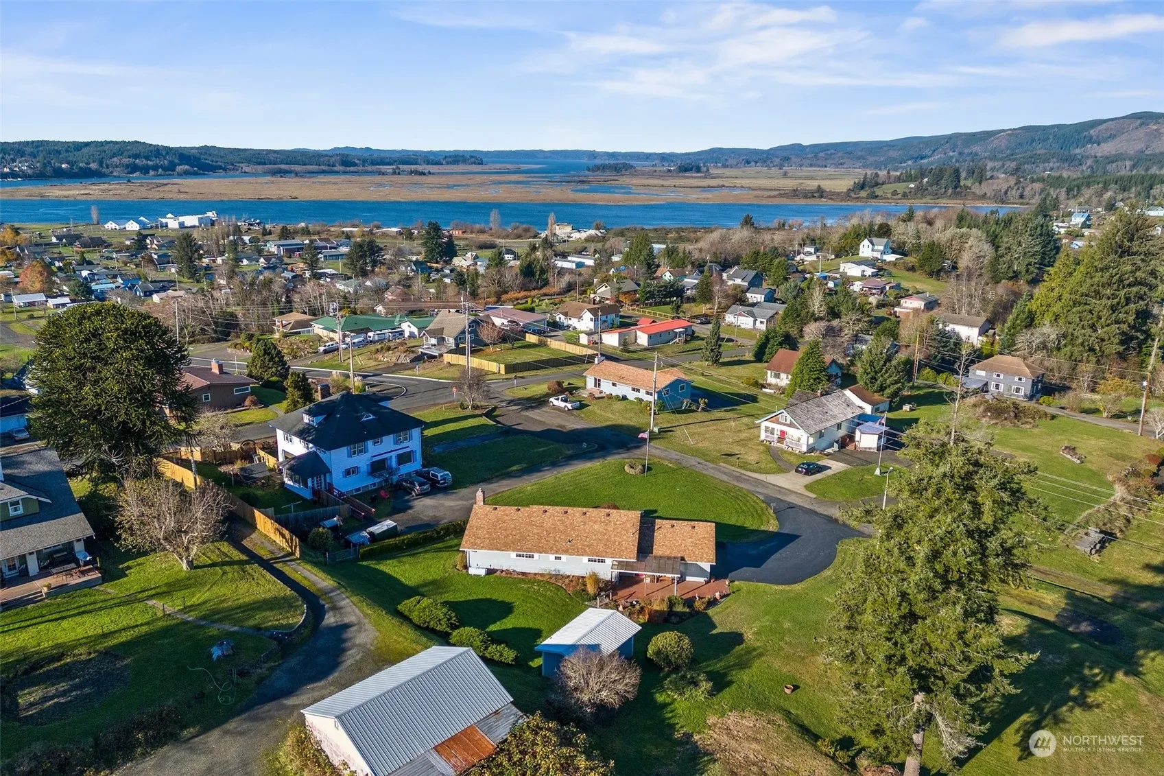 Nestled in a serene setting with river views, this well-maintained single-story home is a true gem. Located on a dead-end street just minutes from town, it provides easy access to all local amenities. The home features 3 spacious bedrooms, 1.75 bathrooms, & has been thoughtfully updated with a newer heat pump & roof. Sunlight floods through large picture windows, creating a warm and inviting ambiance. The kitchen boasts a breakfast bar & an adjoining dining area, ideal for gatherings or casual meals. Step outside to the covered patio, perfect for entertaining or relaxing in the backyard. Ample parking is provided by an attached garage & driveway, with an additional storage shed for all your organizational needs.