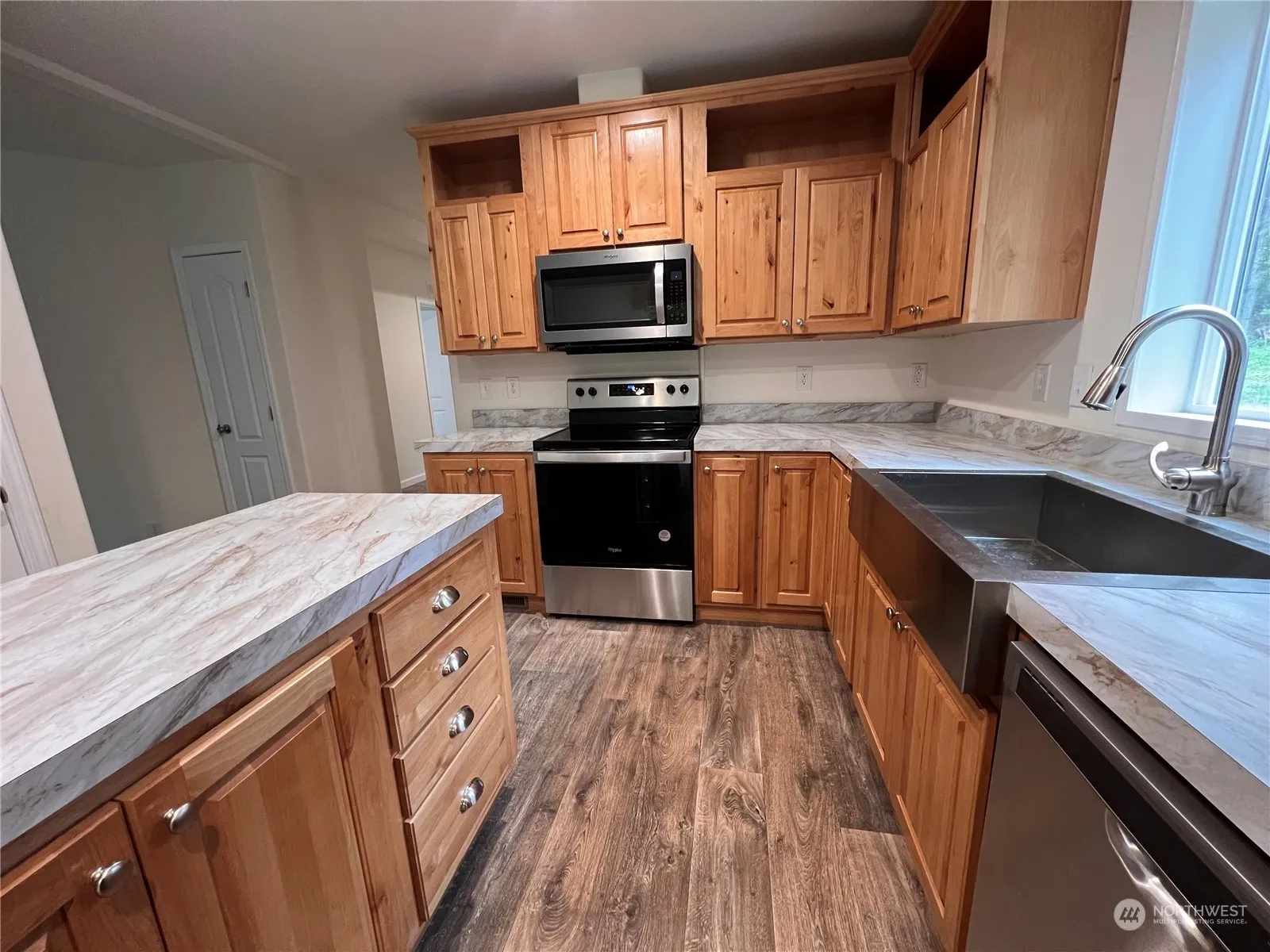 Discover this beautiful, NEW 3-bedroom home offers the perfect blend of modern living and serene privacy. Nestled on a private 1.25-acre lot, this home is designed for comfort and style. Features Include: primary bedroom with an ensuite bathroom, featuring a shower and a relaxing soaking tub. Open Concept Living: The bright, open floor plan seamlessly connects the living room, kitchen, and dining area—ideal for entertaining and everyday living. A dedicated laundry room. Covered porch for enjoying the peaceful surroundings.Enjoy the tranquility and beauty of your lot, perfect for outdoor activities or simply unwinding in nature. Don’t miss the chance to make this stunning property your own!