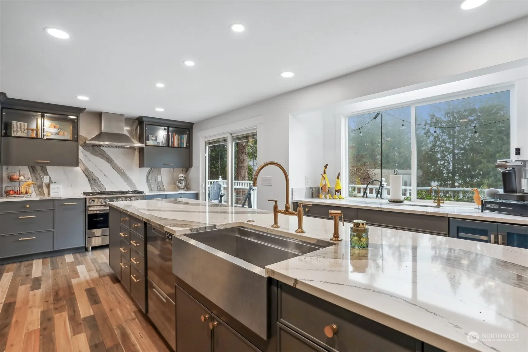 Stylishly updated Carnation home is not to be missed! Updates include new wood flooring throughout the entire 1st & 2nd level. New high end open kitchen & dining area for entertainment. Immense amount of storage & counter space for the chef enthusiast. Pantry, mudroom, double washer & dryer, & separate media room for movie night. Cozy living room with new gas fireplace insert. Main bedroom suite lives large with own fireplace, brand-new ensuite luxurious bathroom, & 2 walk-in closets. 2 more bedrooms & large guest bathroom, with additional workout room or flex space. Basement or ADU with separate living room, game area, 2nd kitchen, office space, & bedroom. Wrap around deck, putting green, garden space, 2 car garage, and more! Welcome home