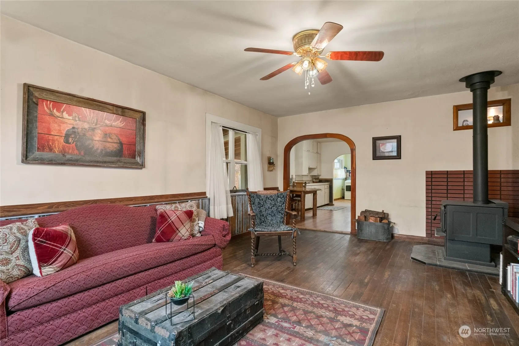 Charming and affordable home located within Tonasket city limits on a corner lot, just one block from the Okanogan River. The cozy living room features a wood-burning stove, perfect for both warmth and ambiance. The kitchen is both functional and inviting, with an adjoining dining area and convenient laundry space. The large, fenced backyard offers plenty of room for pets, gardening, or outdoor activities, plus a bonus shed for extra storage. An unfinished basement provides potential for additional living space and customization. Ideally situated near local restaurants, the grocery store, History Park, and the community pool.