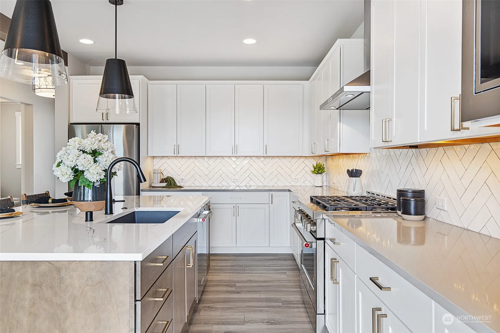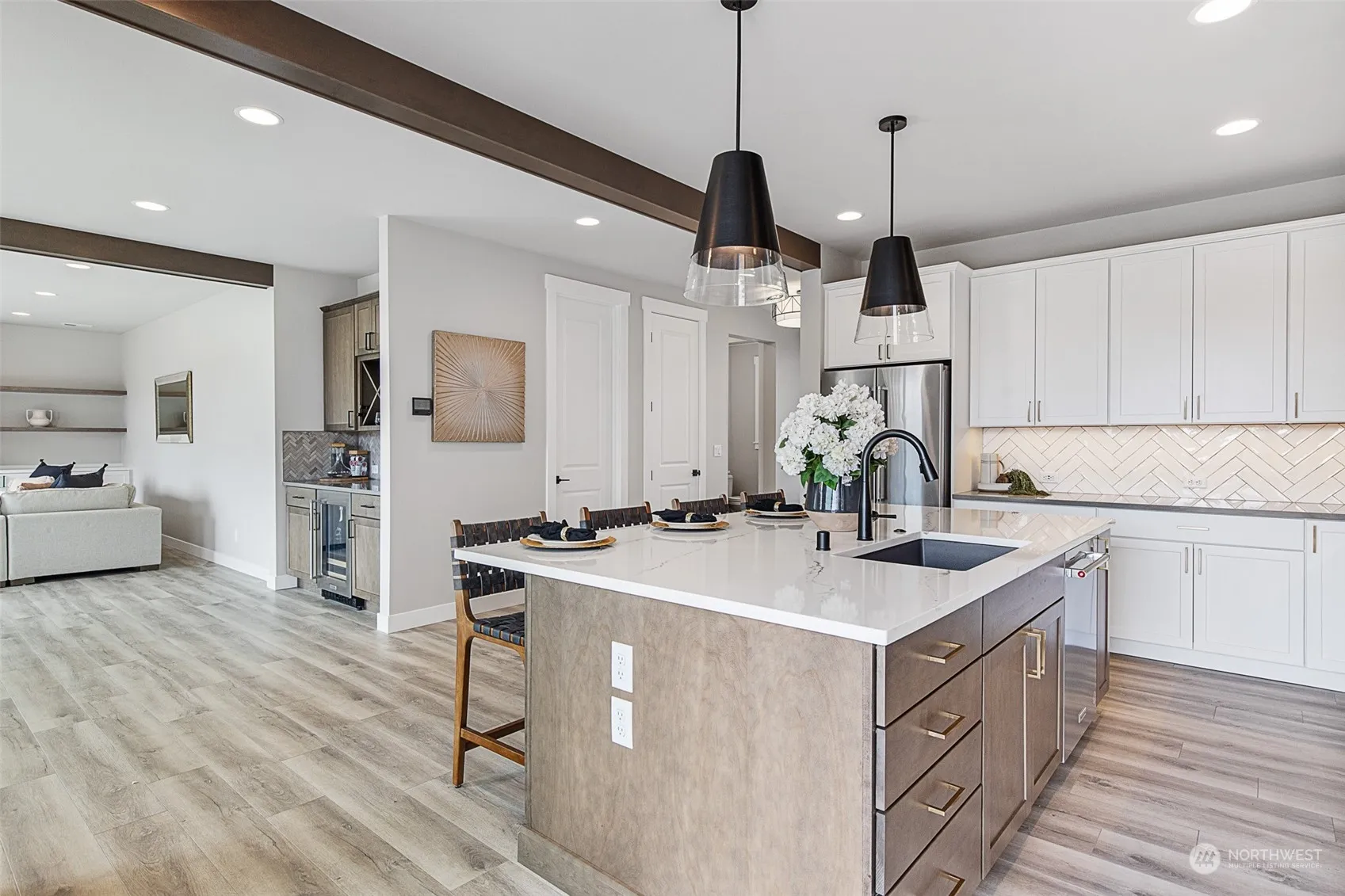 Model Home now available! Two separate living spaces under 1 roof. Uniquely designed with an AADU, JK Monarch offers 3297sf including 5 bedrooms + loft. Kitchen includes soft-close cabinets, SS KitchenAid appls, large island, built-in bar w/ beverage fridge. Great room has title surround gas FP w/ cabinets/ floating shelves. Double doors to primary suite w/ large walk-in closet & spa-like ensuite w/ oversized walk-in tile shower. AADU space on main w/ private exterior entry, separate living room/kitchenette, bedroom, 3/4 bath w/ tile walk-in shower & W/D hook-up. Included features: laundry sink, quartz/tile galore, wrought-iron rails, 8′ interior doors, Heat Pump(A/C), covered patio, fully landscaped/irrigated/fenced. 2 car garage + RV bay.