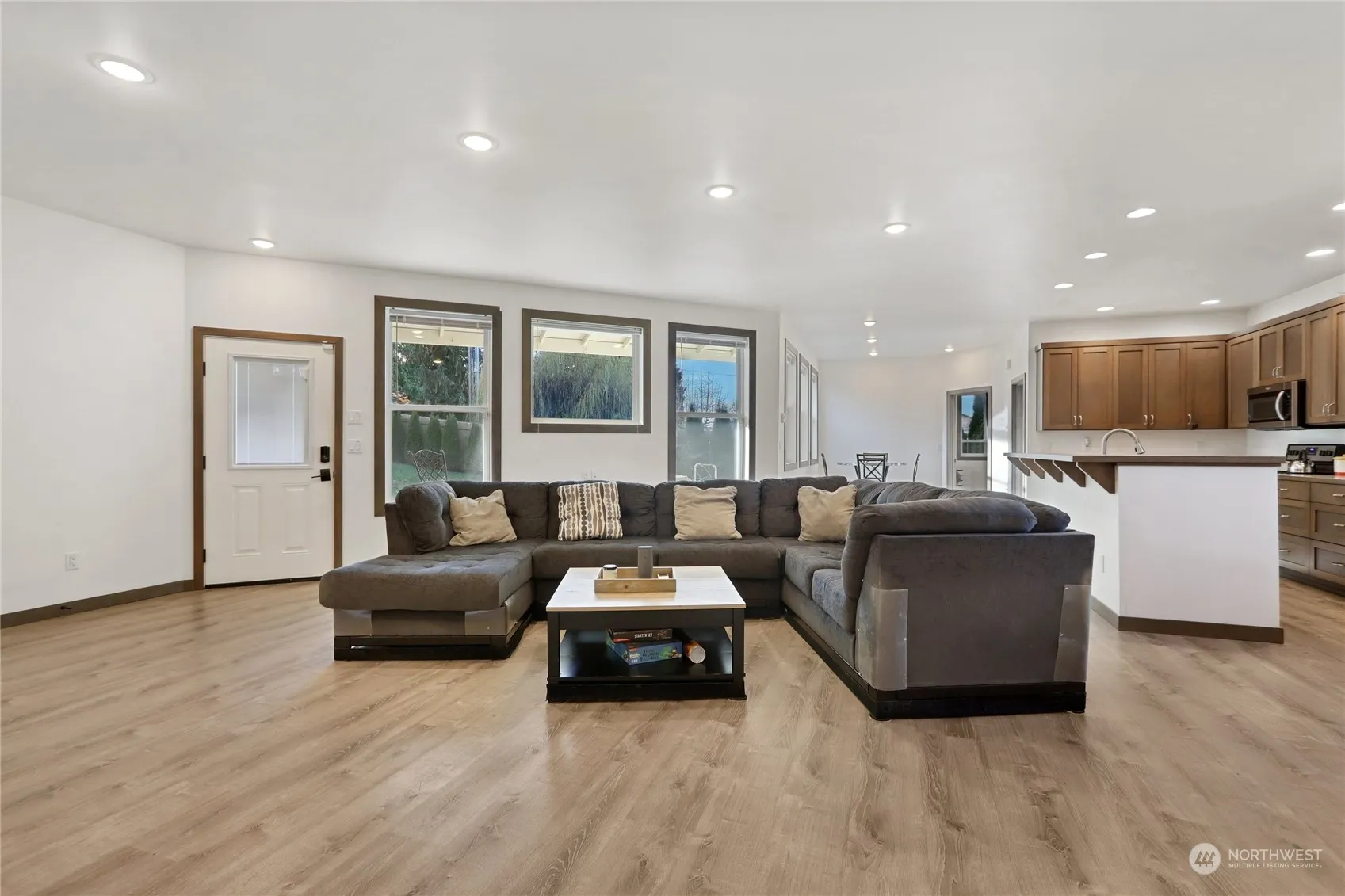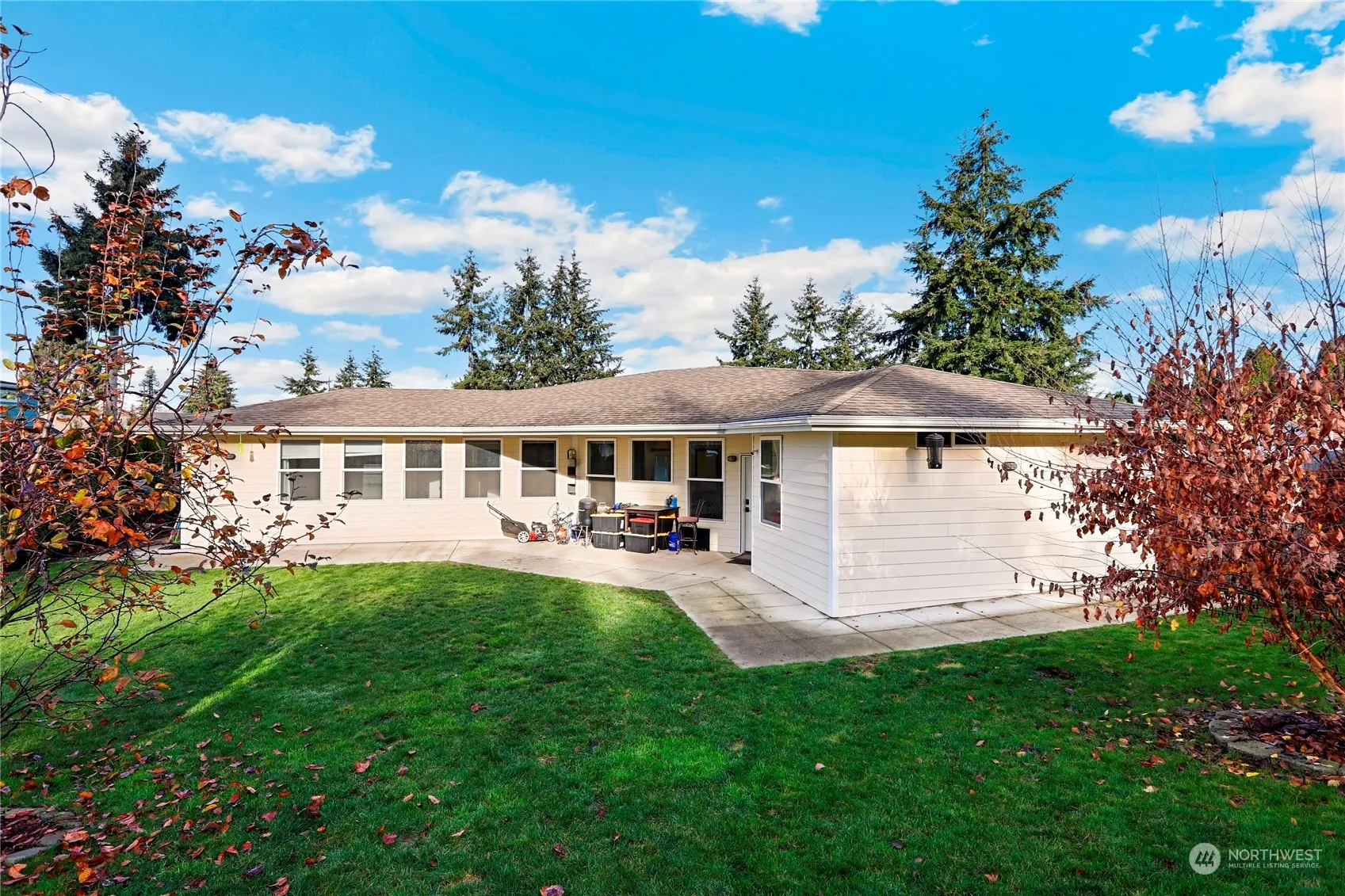 Experience one-level living at its finest in this beautifully designed 2019-built home. Offering 2 bedrooms and 1.75 baths, this residence features a spacious, open-concept layout. The light-filled living room flows seamlessly into the kitchen, complete with ample cabinet space, countertop seating, and an adjacent dining area. The primary suite features a ¾ bath, while an additional bedroom and full bath provide added versatility. Step outside to the large, fully fenced backyard with a patio, green house and garden shed, ideal for entertaining or relaxing. With two driveway parking spaces and convenient access to I-5, shopping, dining, parks, and more, this home perfectly balances comfort and convenience.