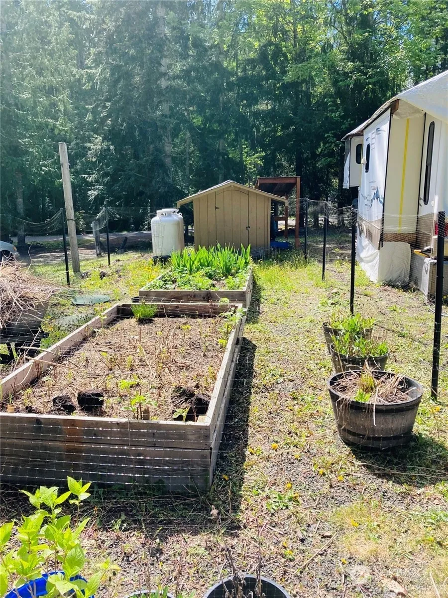 Amazing opportunity to create your own paradise in Division 1, only minutes to private Lake Cushman Park. The park has a private boat launch & dock, swimming area with jumping dock, Basketball and Volleyball courts, covered cabana with BBQ’s, bathrooms with showers and playground. Spacious corner lot, located on a cul-de-sac, with plenty of room to camp or build your dream cabin. Raised garden beds , storage shed and covered firewood area already established. Storage for your car, boat and lake toys in the extra long carport with a low maintenance metal roof. The outbuilding is sheet rocked, has electricity and washer/dryer, ready for campers to come enjoy lake living. Invite a friend as this property is equipped with two RV hook ups.