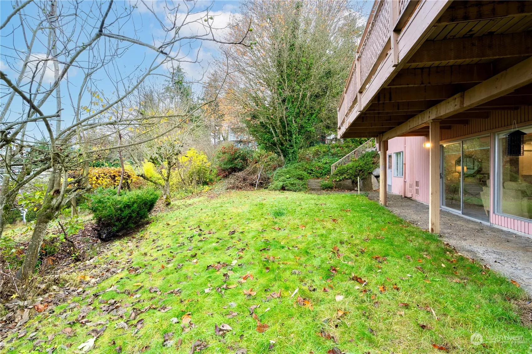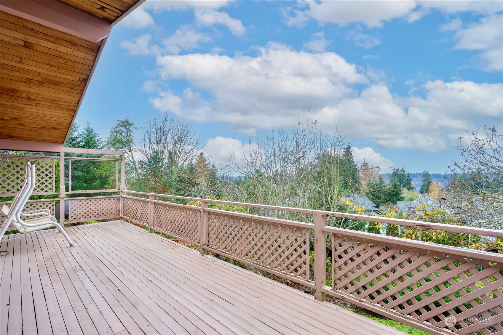 Mid-Century custom view homw on 1/2 acre secluded lot. Enjoy sunny SW exposure & sweeping vistas to the Olympics with filtered lake views. Enter via a private circular driveway, to a cul-de-sac setting. Walk to Hazelwood Elementary. Fenced yard. The house is surrounded by more expensive properties. A unique oasis! Potentially 3 buidling lots, but buyers should verify future development potential. Close to shopping, Starbucks & I-405 access.