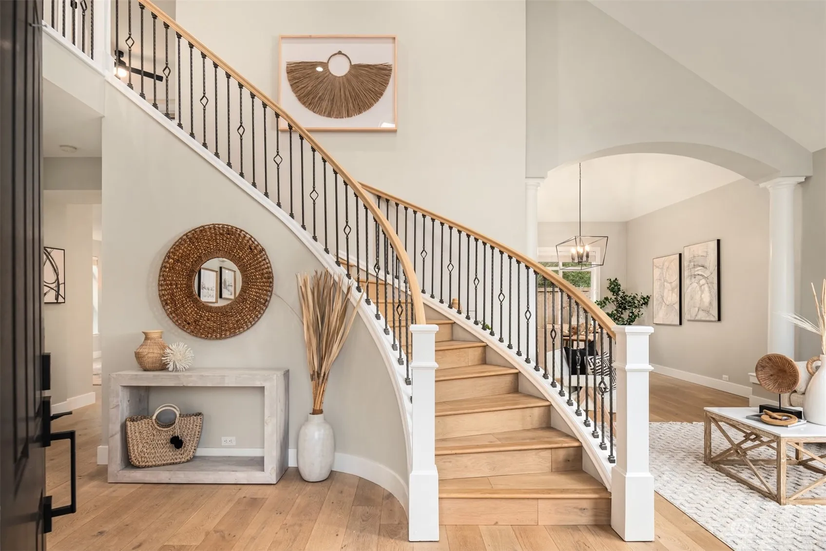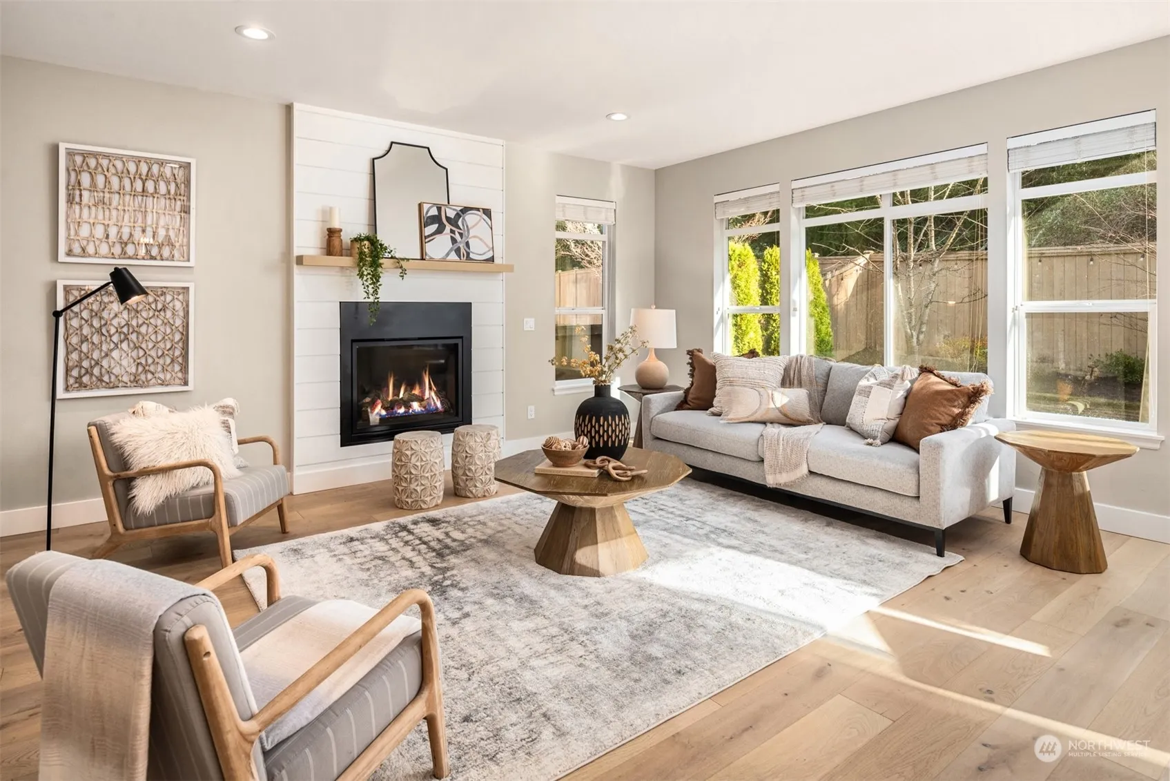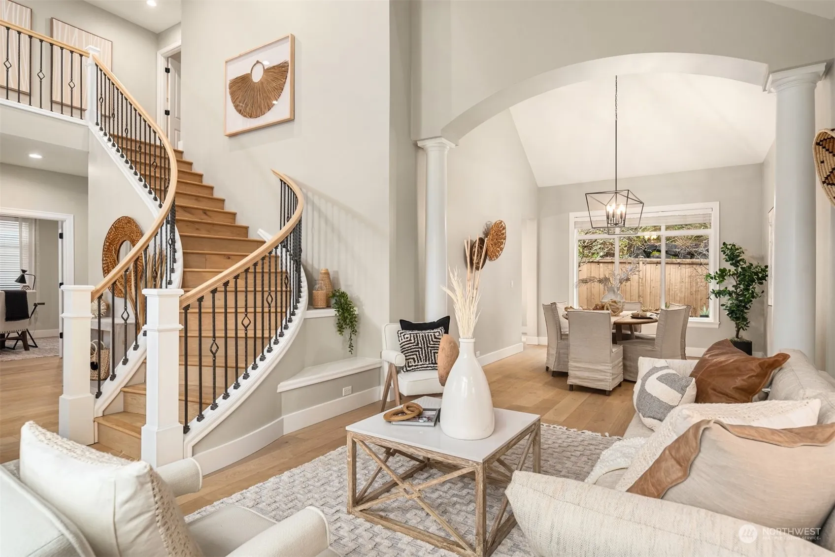 Storybook Snoqualmie Ridge remodel nestled in the coveted Crestview community. Grand entry w/soaring ceilings opens to reveal a sundrenched interior designed for effortless entertaining. Spacious floorplan offers formal living & dining rms, epicurean kitchen, open concept family rm w/breakfast nook, home office, bonus studio & sumptuous primary suite. Extensively remodeled home is loaded w/sophisticated upgrades: wide plank hardwood floors, elegant quartz counters, custom cabinetry, designer fixtures, new furnace & A/C. Idyllic property backs to lush greenbelt for exceptional privacy w/large patio perfect for summer BBQs. Incredible location just steps to community park, mins to schools & world-class golf, w/easy access to shopping/dining.