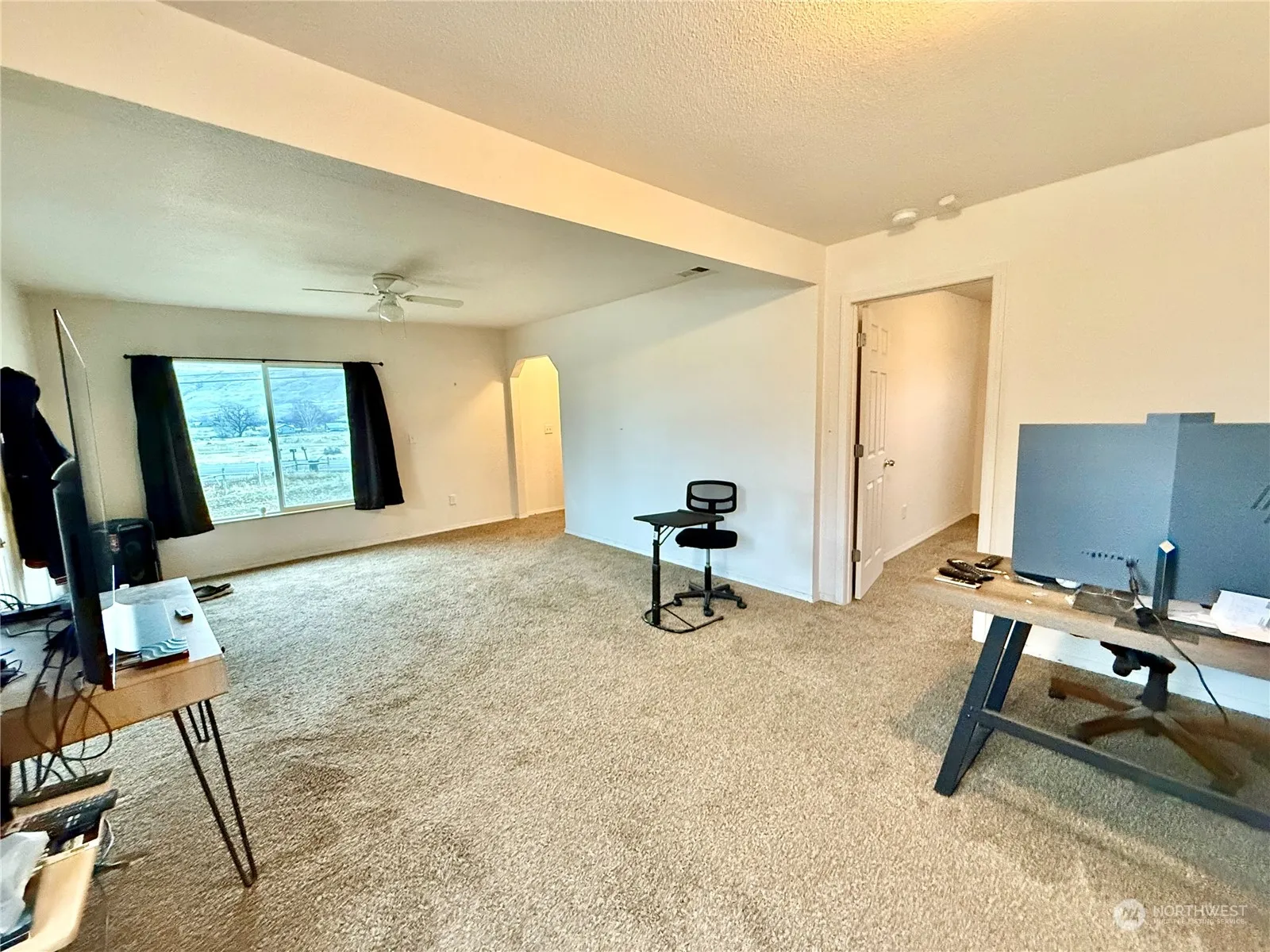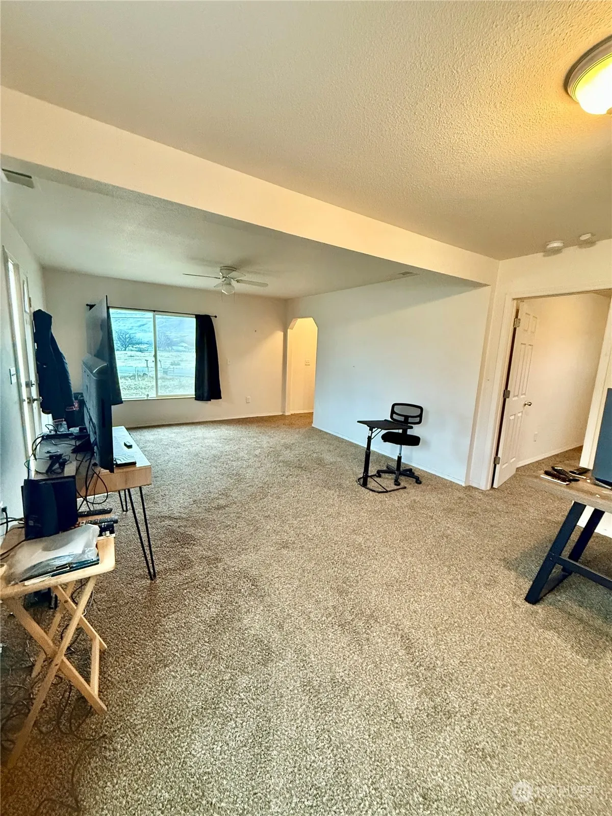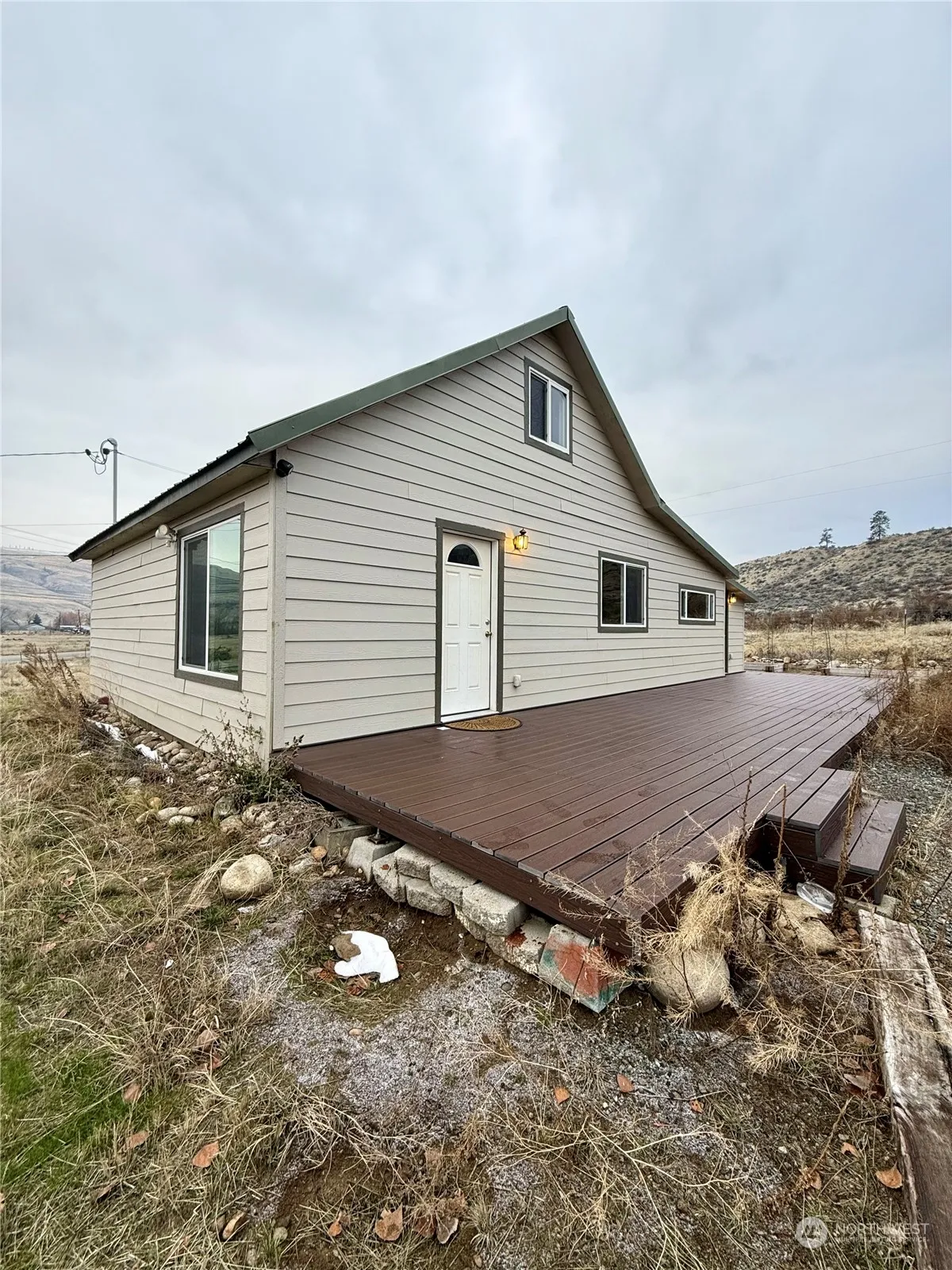 Okanogan – Location, location, location! County living less than 5 minutes away from downtown Okanogan. 1 ACRE COUNTRY HOME w/MOUNTAIN VIEWS! 1188sqft 3 bedroom/1 full bath home close to Smallwood Farms, grocery store, retail shopping, coffee shops, The Dawg House Pub, and more. Main level has kitchen with breakfast bar, dining area – all appliances stay, large living room, two bedrooms, full bathroom, laundry room/mudroom with separate entryway to deck. Upper level includes additional bedroom/bonus room & extra closet area & sitting space. BRAND NEW HEAT PUMP for heating & cooling. Outbuilding w/electricity. Raised garden beds & horseshoe pit. Completely fenced. Septic. Shared Well. $299,900 MLS-2314116/H-3621