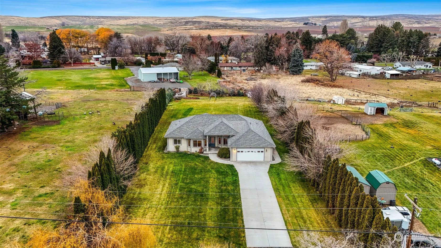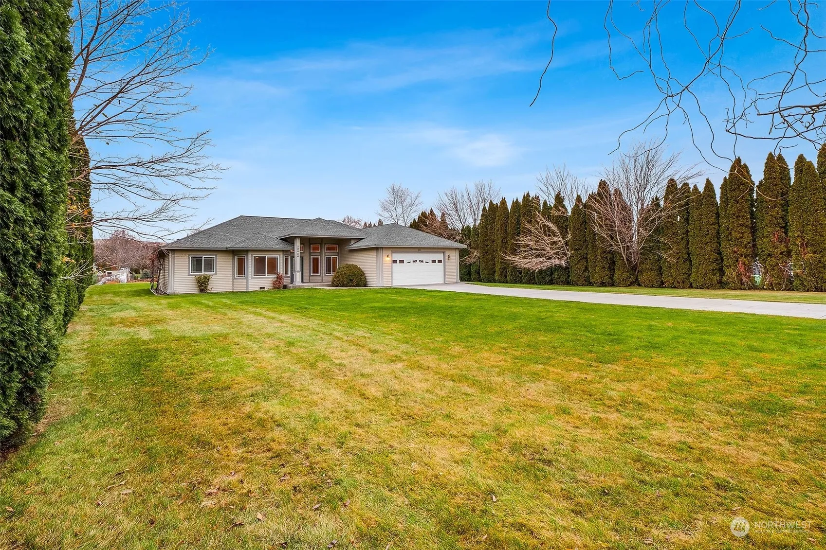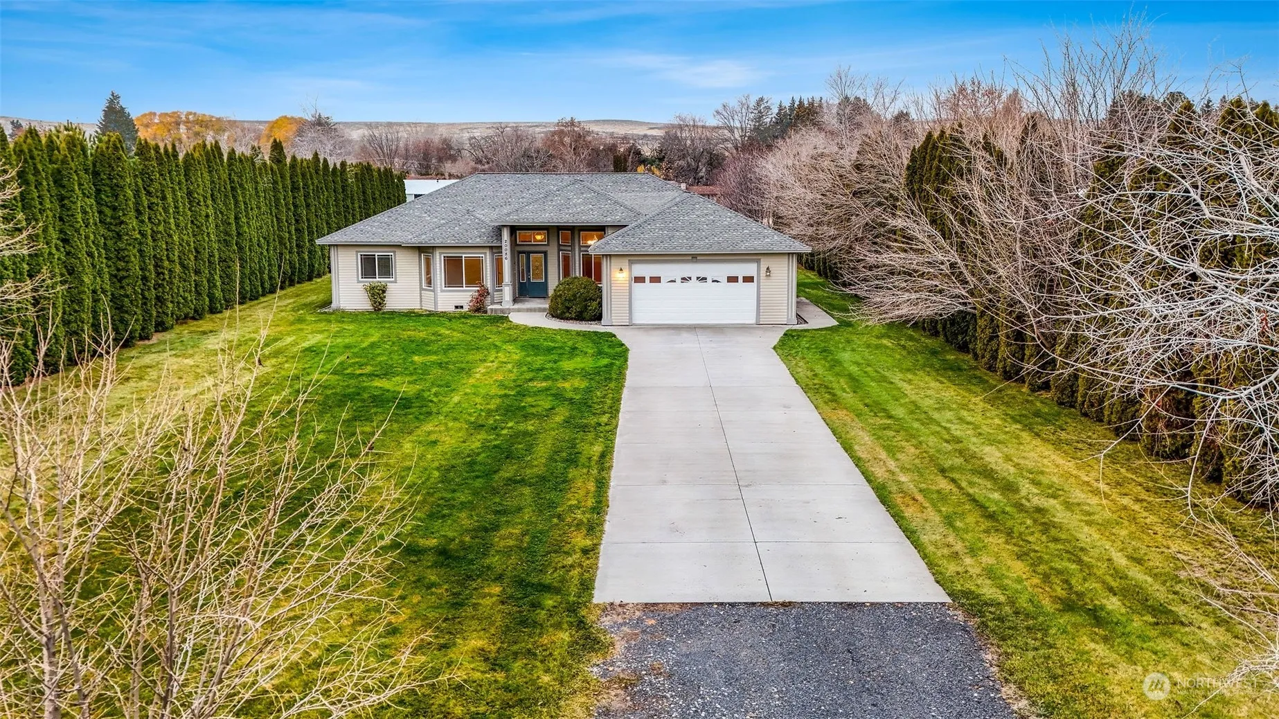 This stunning 3-bedroom, 2-bathroom home with an office offers luxury and practicality on nearly an acre of beautifully landscaped property. The living and dining area boasts 12-foot ceilings with crown molding, while tile floors and plush carpet add comfort and style. The spacious kitchen features custom cabinets, a wraparound bar, and granite countertops. Bedrooms have 9-foot ceilings, and the primary suite includes a walk-in closet, soaking tub, and walk-in shower. A 2-car garage, garden area, irrigation, and space to build a workshop complete this exceptional property.