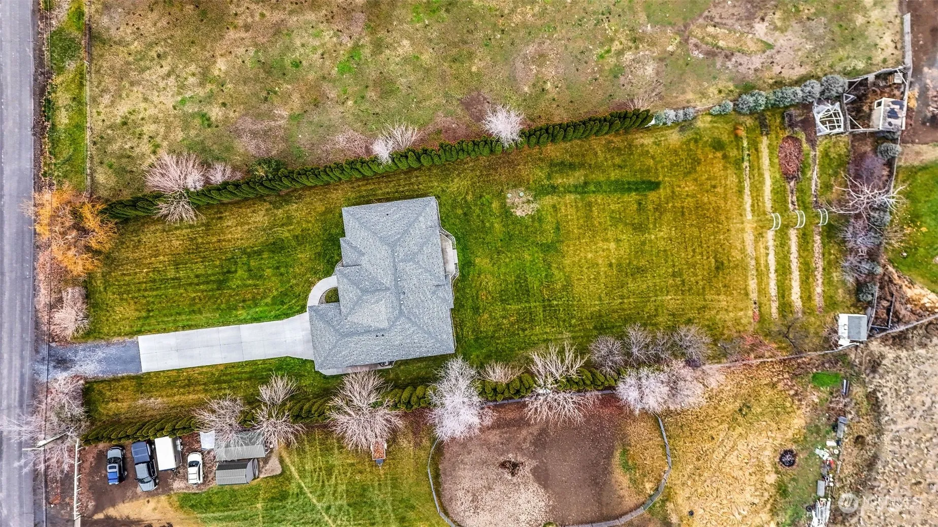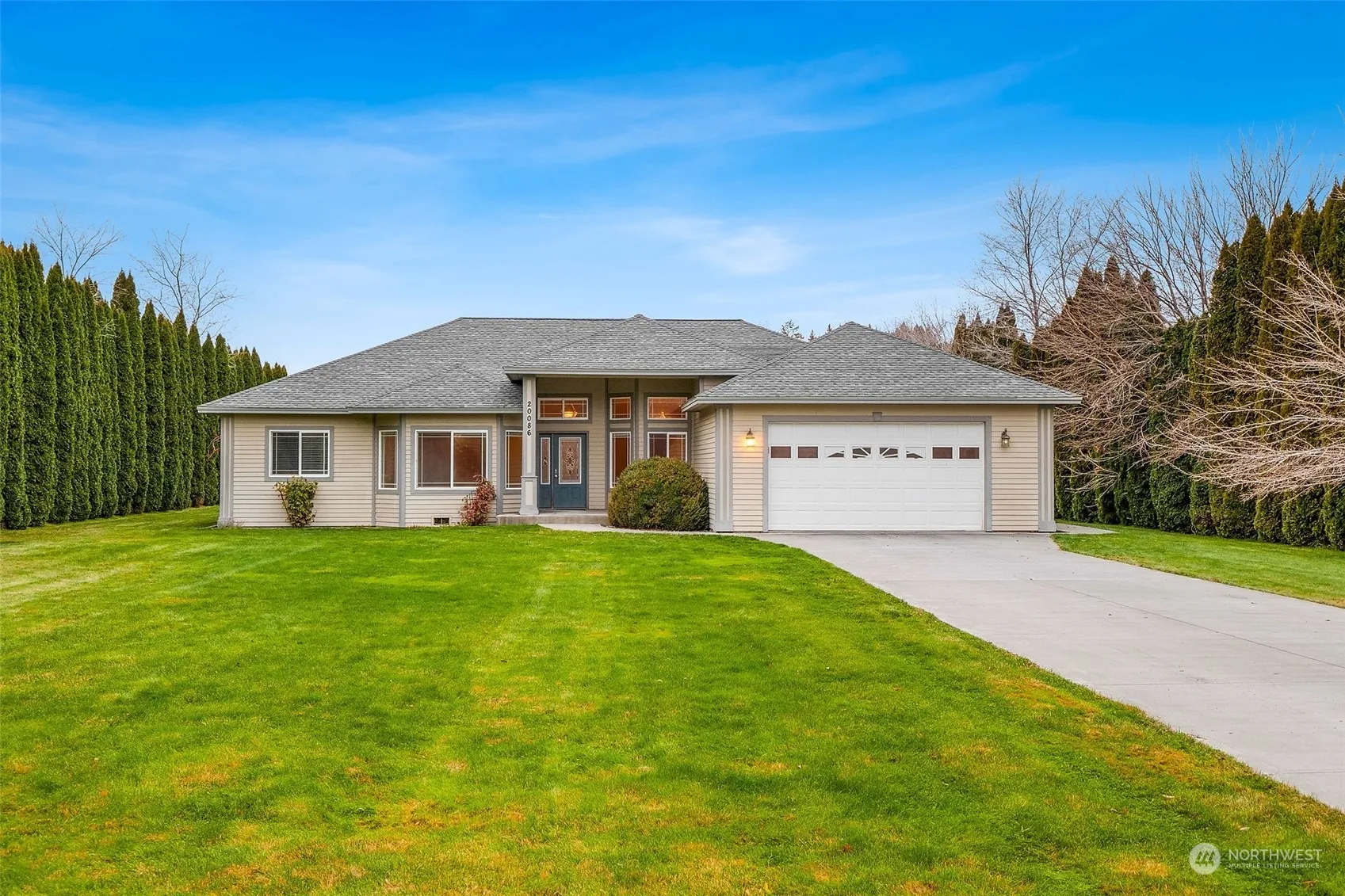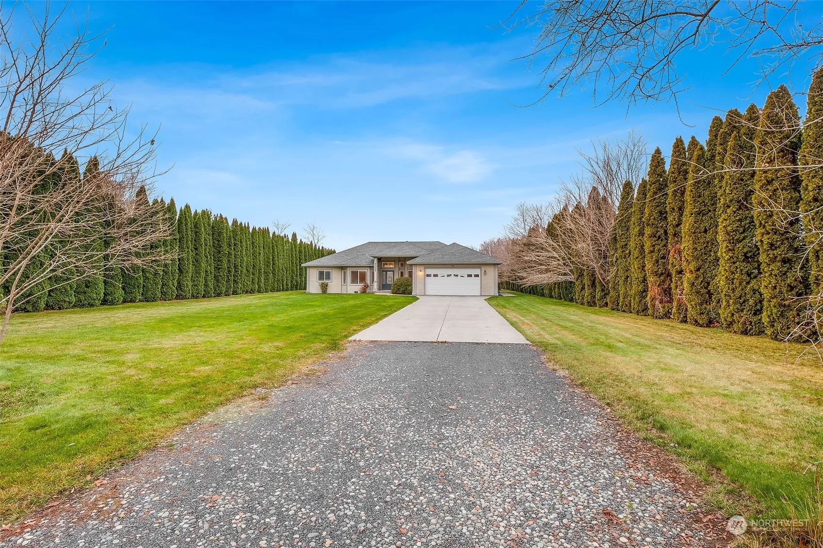 This stunning 3-bedroom, 2-bathroom home with an office offers luxury and practicality on nearly an acre of beautifully landscaped property. The living and dining area boasts 12-foot ceilings with crown molding, while tile floors and plush carpet add comfort and style. The spacious kitchen features custom cabinets, a wraparound bar, and granite countertops. Bedrooms have 9-foot ceilings, and the primary suite includes a walk-in closet, soaking tub, and walk-in shower. A 2-car garage, garden area, irrigation, and space to build a workshop complete this exceptional property.
