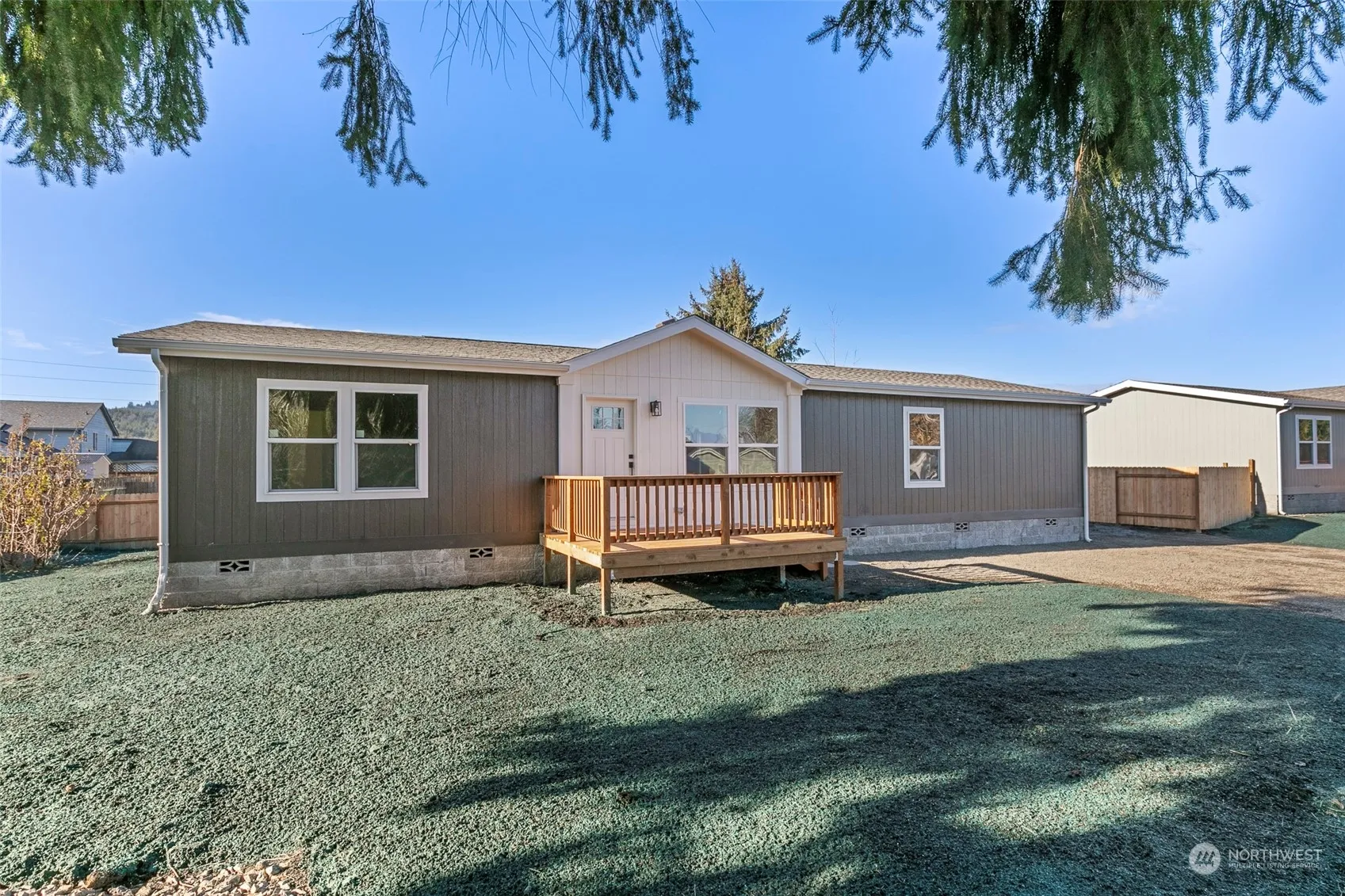 Captivating property nestled on over a quarter acre tucked back away from the main road. This 2024 double wide manufactured home has just been placed to perfection. Public water, sewer, and large fenced backyard makes this a home a real treat. Inside, your welcomed by the scent of new home smell, an open kitchen/living concept, and large windows that allow for tons of natural light. The home also comes complete with 4 spacious bedrooms, SS/appliances, and a Two-toned Island great for your inner home chef. Whether you’re relaxing in your spacious backyard or sipping a coffee on your front porch this home has everything you could ask for. All this at an affordable price and freshly hydroseeded makes this a can’t miss opportunity.