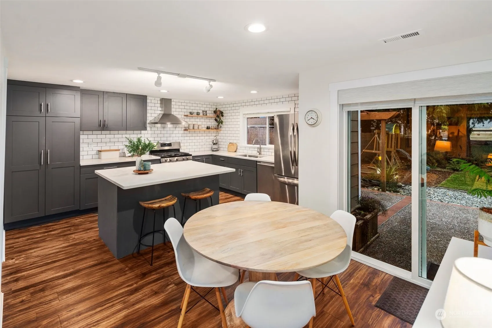 Discover the charm of this FABULOUSLY STYLISH 2 BR/1 BA home perfectly situated on a LARGE LOT! Recently updated inside & out, the home offers style, convenience, and comfort. Open floor plan and dream kitchen are perfect for entertaining. The kitchen boasts custom cabinets, tile backsplash, quartz countertops, & stainless steel appliances. Wood floors throughout the home, including bamboo floors in the bedrooms. Spacious utility room offers additional storage. Embrace the outdoors with flourishing organic raised garden beds, children’s play area, shed, chicken coop, & patio, creating an idyllic setting for relaxation and entertainment. 1.8 miles to Sound Transit light rail. Near Edmonds schools, I-5, parks, shopping, & dining. RV Parking.