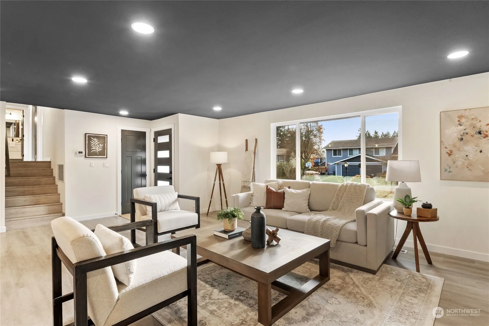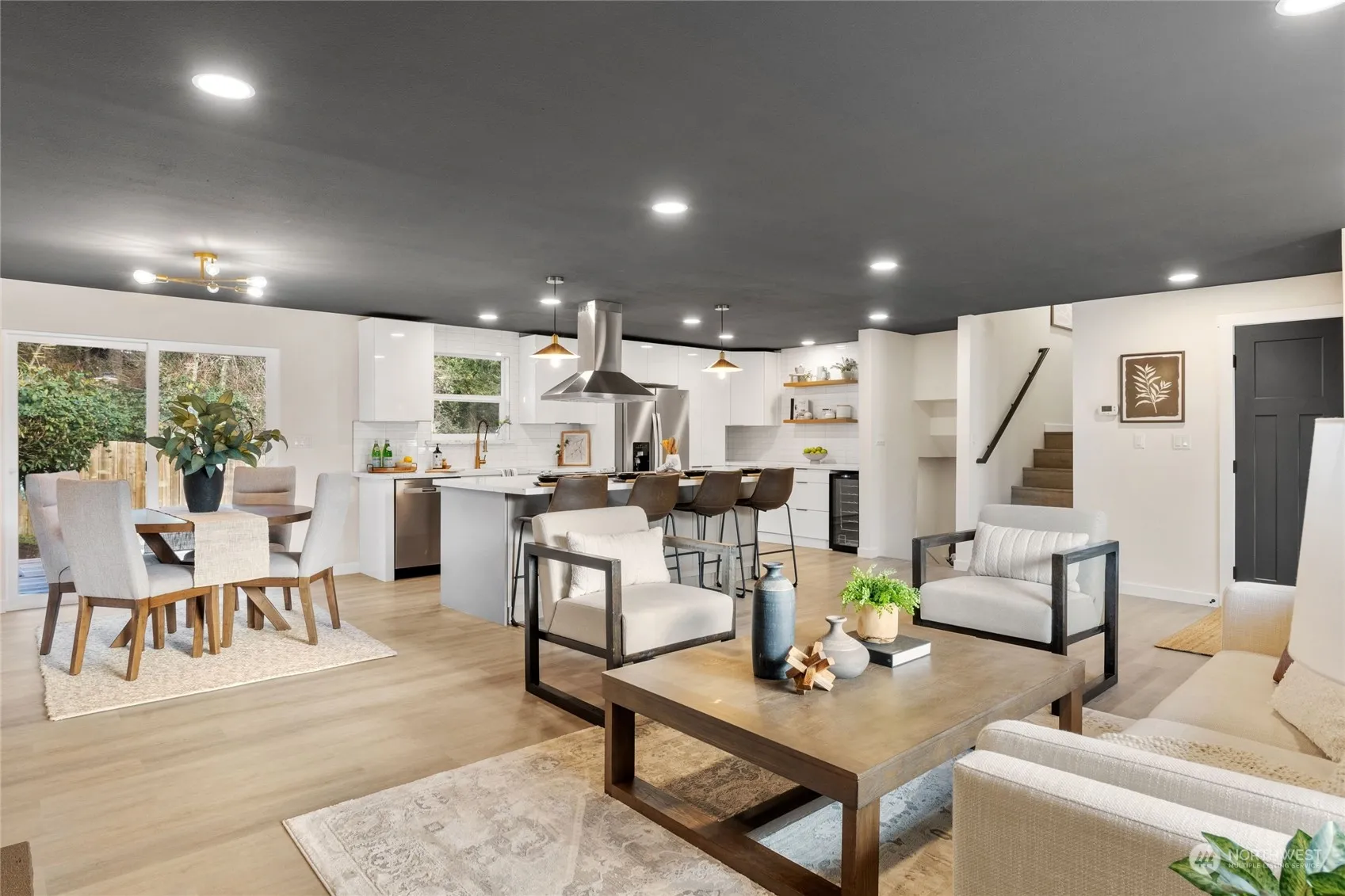 This beautifully remodeled home (On lot which may allow for an ADU/DADU – Buyer to Verify) offers approximately 1,690 square feet of thoughtfully designed living space, including three bedrooms and two and a quarter baths. The open-concept layout ensures a seamless, functional flow, while the south-facing exposure and absence of visible power lines enhance its charm on this quiet cul-de-sac. The two-car garage provides both convenient access and ample storage. Inside, you’ll find premium finishes, and stainless steel appliances. The newly installed sliding door opens from the kitchen to the deck, offering enhanced access to the backyard. Modern lighting and double-pane windows complete the home with energy efficient and natural lighting.