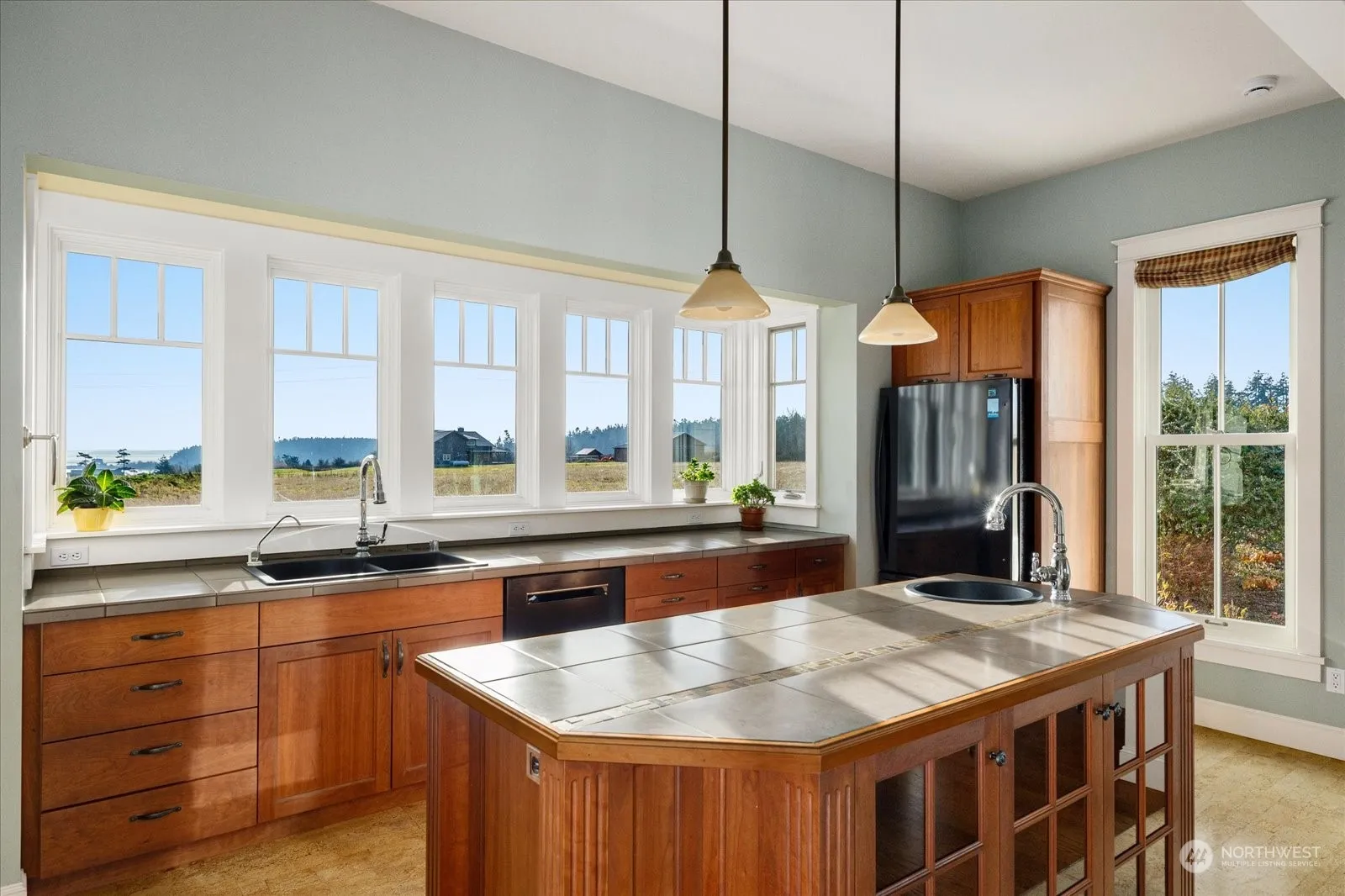 Nestled on 5 beautiful acres, this stunning custom-built award-winning 2203 s.f. Country Home was designed by renowned architect Ross Chapin. Featuring 2 bedrooms (3-BR septic), 2 baths, a versatile studio room, cozy sleeping loft, sub-floor heating, energy efficient solar-generated hot water system, and is wired for a generator for added peace of mind. Sustainable gardens and fruit trees take full advantage of nature and its location. The spacious detached garage/shop provides ample space for all your island hobbies and projects. You will enjoy views of Admiralty Inlet and Keystone Ferry while you experience the perfect blend of rural tranquility and modern convenience. Embrace the serene lifestyle of Central Whidbey Island.