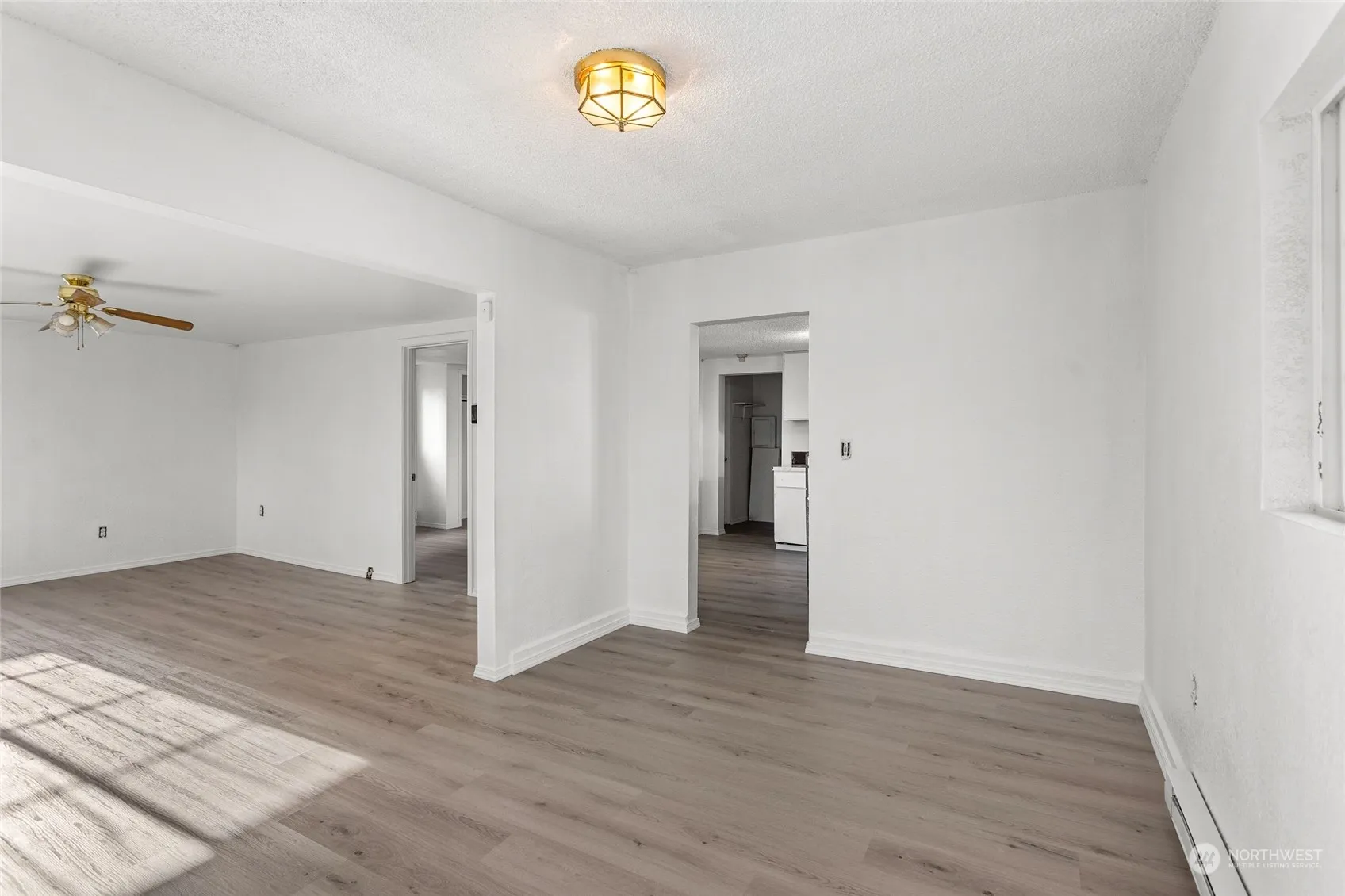 This cute and clean home is ready for move in with all new flooring and a fresh coat of interior paint! The inside features a comfortable living room with lots of natural light, formal dining room, nice size kitchen with appliances, two bedrooms and one full bath. The property features a large fenced yard with a secure, gated driveway and a detached garage with alley access. Conveniently located close to downtown, amenities, schools, and community centers with easy access to freeways for commuting. Great home with tons of potential! Contact your favorite agent for a showing!
