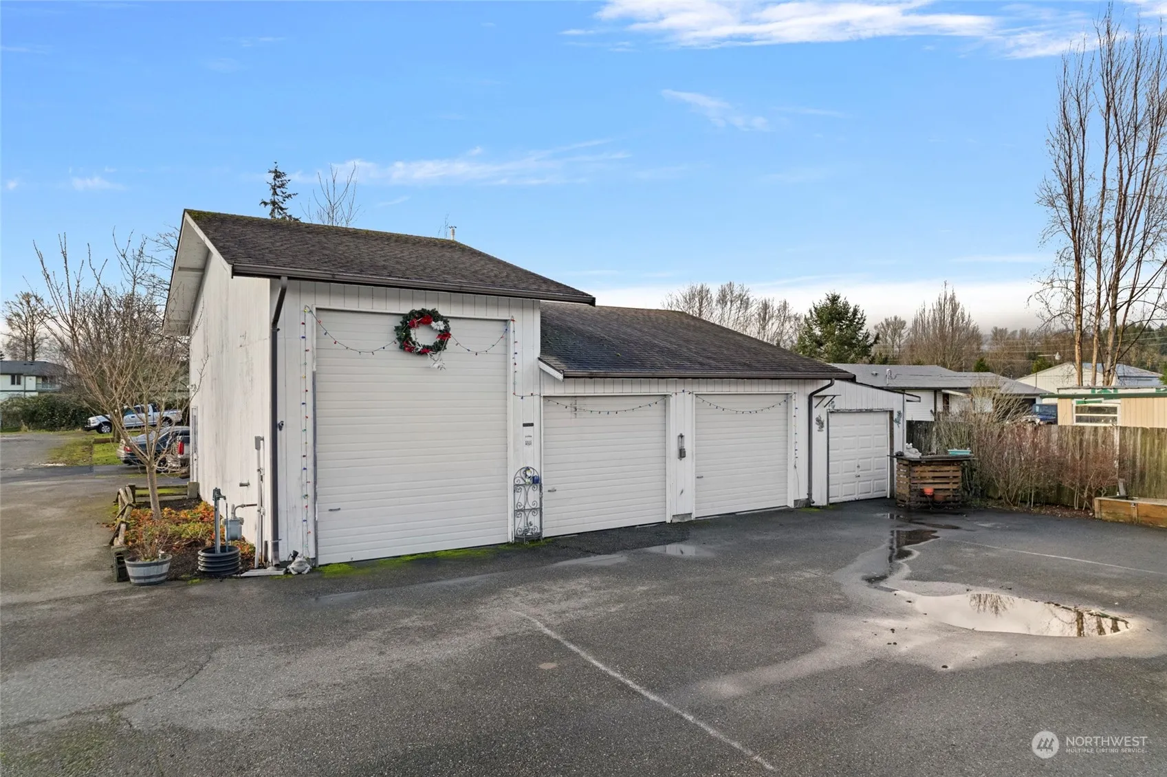 A rare find: the perfect house and shop combo in a prime central location! This charming property offers open-concept living with vaulted ceilings, quality oak cabinetry, and a built-in island bar ideal for morning coffee. The thoughtful layout separates the bedrooms for added privacy, plus there’s a versatile office or 3rd bedroom. The star of the show is the XL heated 4-bay shop with RV-height clearance, extra storage, and a man door—perfect for hobbies, a workshop, or storing all your toys. Enjoy mature landscaping with gorgeous roses, wisteria, lilacs, rhubarb, strawberries, tomatoes, and blueberries. An asphalt courtyard provides ample parking behind the shop, while two covered patios offer peaceful spaces to relax and unwind.