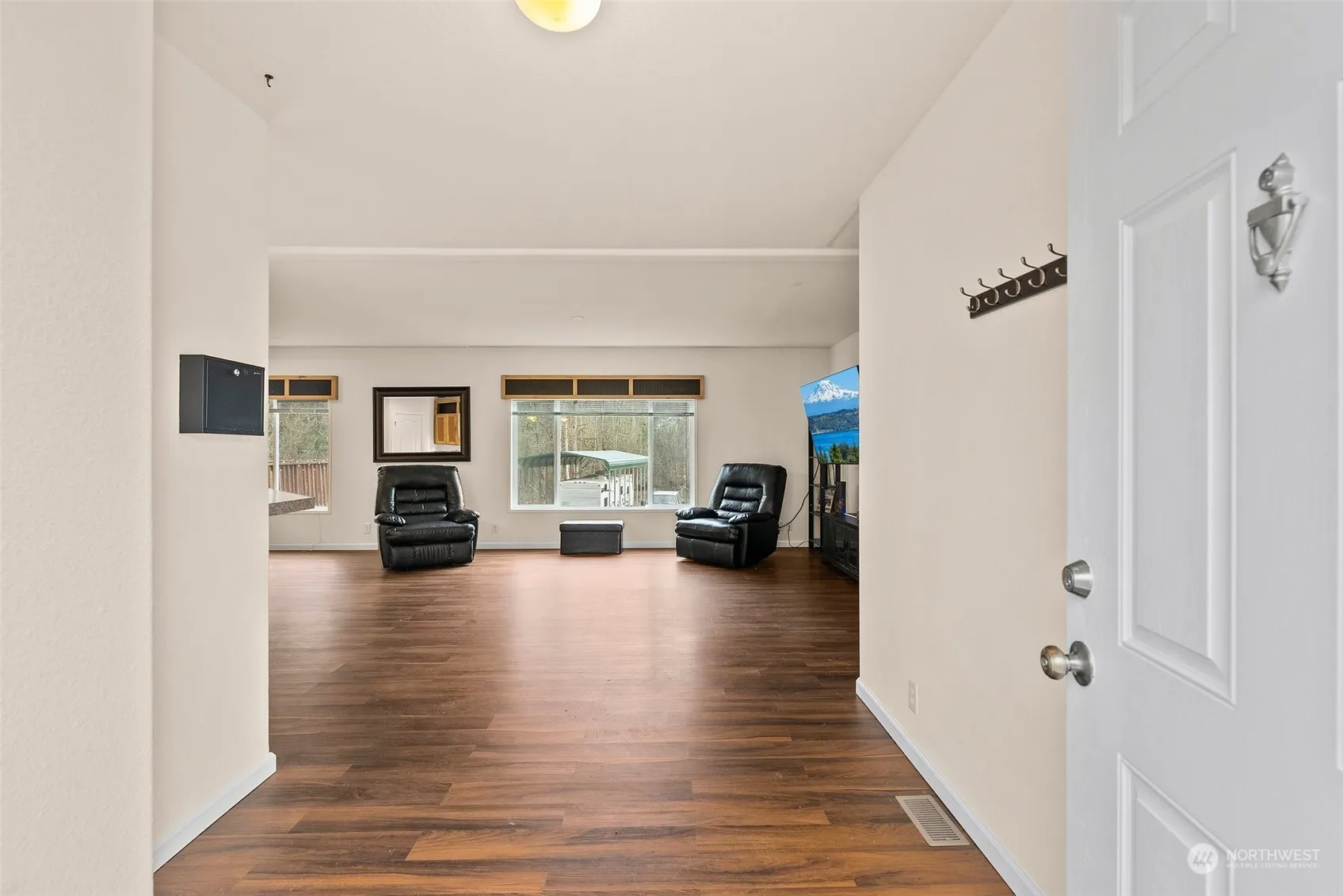This home has 3 bedrooms, 2 baths, 1620 sq Ft and sits on just shy of 5 acres (4.850). Large primary suite with bathroom and walk-in closet. Huge open concept living room, kitchen and dining room that flow together well. Opposite end of the house has 2 spacious bedrooms, full bath, and a laundry/utility room with separate entrance to a large back deck. Attached carport with 2 parking spaces. This home has plenty of room for toys, hobbies, etc. Brand new covered RV spot with power. Private well and septic. The remaining untouched 4 acres are ready for your imagination. Buyer to do their own due diligence. All furnishings convey to buyer, including riding mower and container. Use Pamela Maas Fidelity National Title