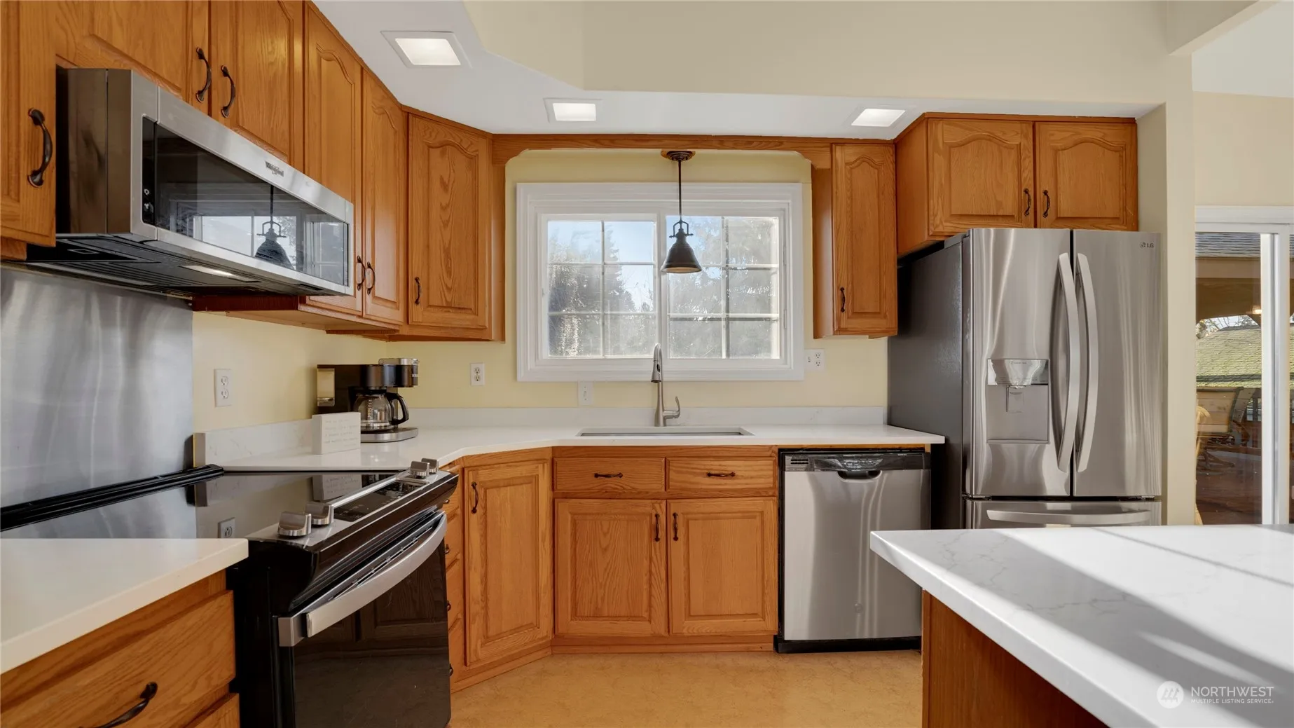 Discover this charming split-level home in the sought-after Angle Lake neighborhood of SeaTac! The main level features hardwood floors, refinished oak cabinets, quartz counters, newer stainless appliances, and a spacious island. Updates include copper plumbing, a new electrical panel, and a newer roof. Enjoy the expansive entertainment deck with a large gazebo. The lower level boasts a roomy recreational space, while the two-car garage offers ample workspace. Two outbuildings include an insulated woodshop with power and a red barn for tools. The fully fenced yard offers garden space, patios, and walkways. RV parking and proximity to parks, YMCA, Light Rail, Southcenter, and more make this home a perfect blend of comfort and convenience!