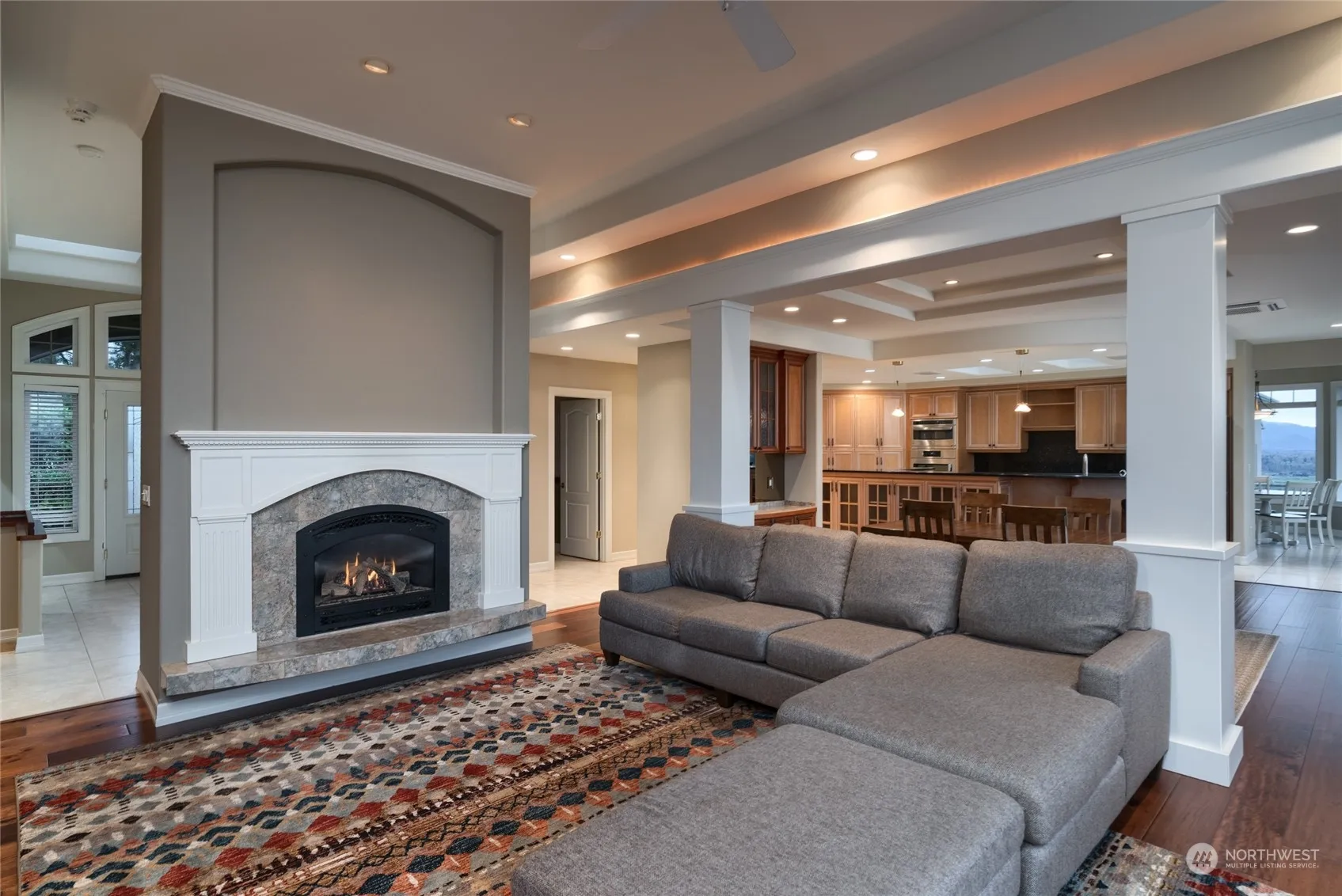 Elegant and stunning spaces feature timeless, rich finishes and a thoughtful layout. The traditional design includes an open main level, showcasing a beautiful kitchen with a bar, a separate sunny nook/sunroom, a formal dining room, and a great room with a fireplace. There is also an elegant den/office with an exposed beam ceiling. The owner’s suite boasts a soaking tub, a walk-in tile shower, double vanities, and a private balcony. The lower level offers two ensuite bedrooms, extra storage rooms, a pool table/hobby area, and a separate view deck. Amazing landscaping pulls you outside and you’ll never tire of the North & East Views of the Skagit Valley and Cascades!