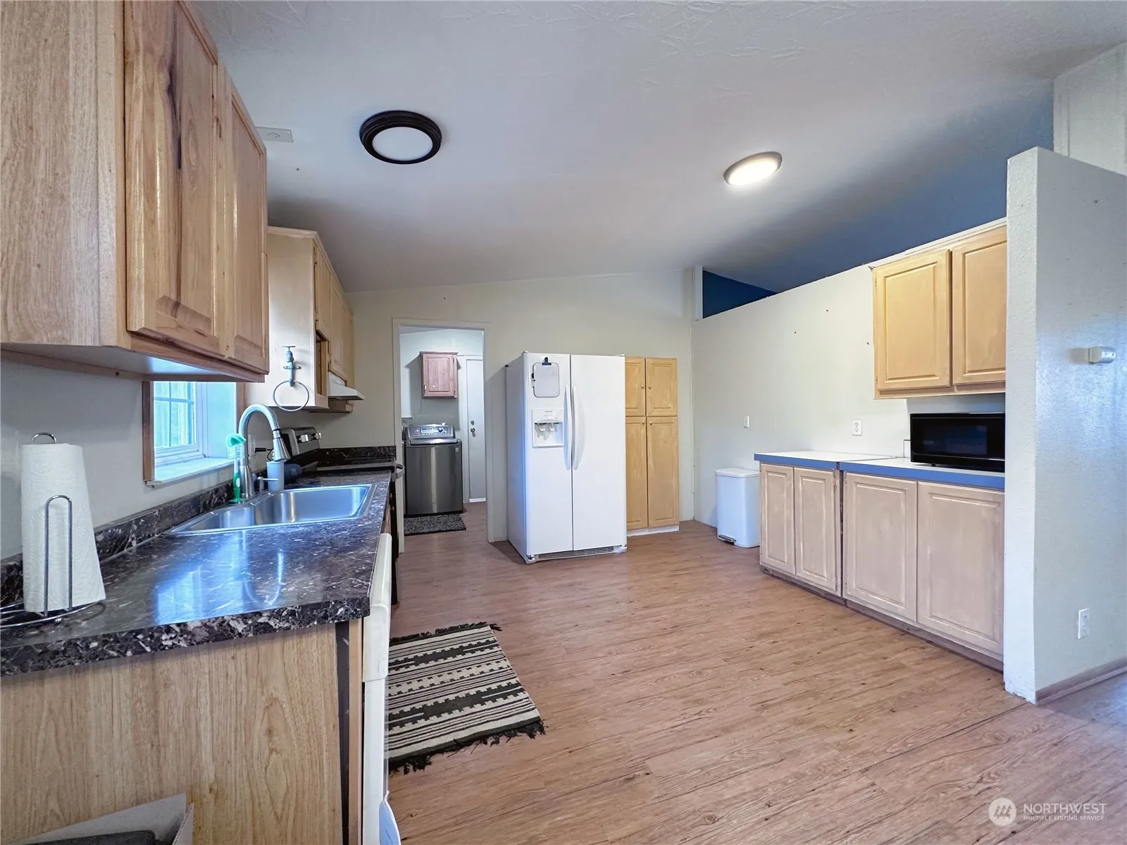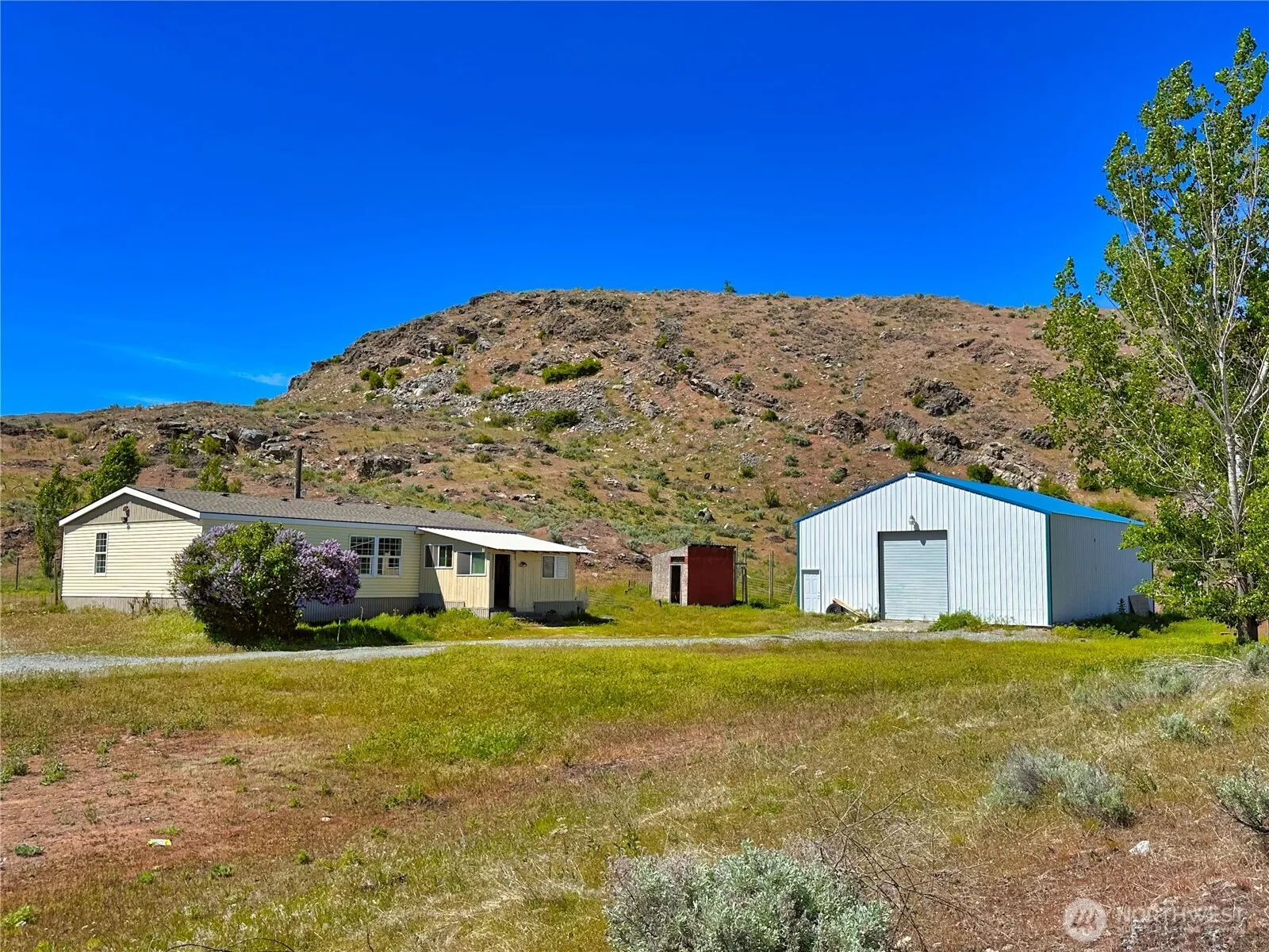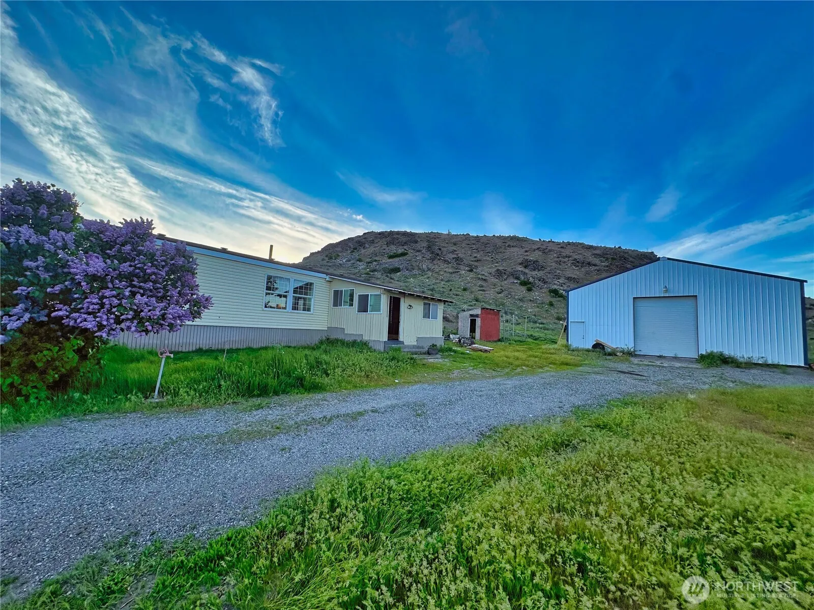 RIVERSIDE – 1996 Fleetwood doublewide on 18.5 acres. 3 bd/2 full bath minutes from Omak on paved County Road. Living room has large windows providing great natural light, dining room with pellet stove, separate utility room with W/D & backyard access, covered back porch. Front enclosed porch. Newer roof, laminate flooring. Carpet in bedrooms & vinyl in utility/baths. Massive 36×40 insulated shop w/220-amp power, 12 ft roll-up door, loft storage area, office space, concrete floor. 30-amp RV hookup. Barn/fenced animal area in back, property is partially fenced with fenced backyard, extra storage shed. This is a great location with the country privacy you crave, yet conveniently close to all amenities. Appliances credit offered. No CCRs here!
