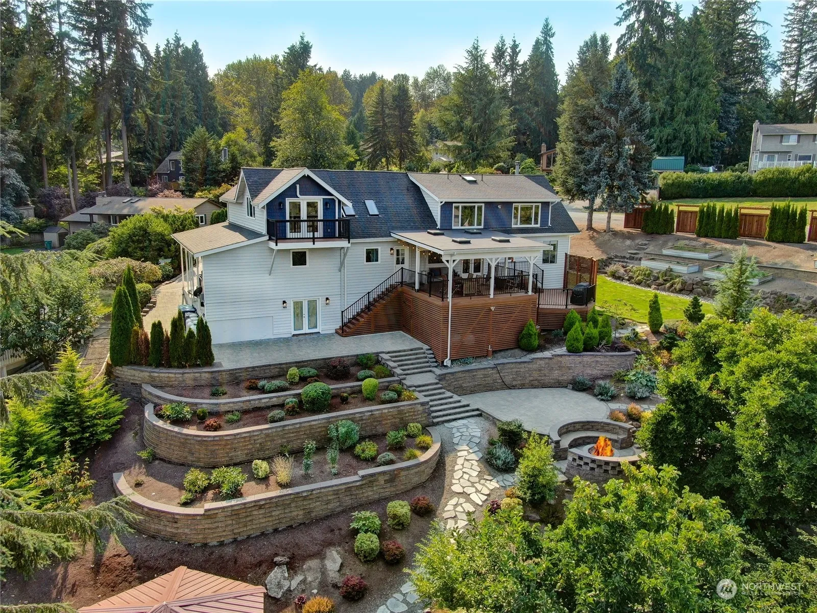Above it all, The View! One-of-a-kind, this amazing home has stunning, panoramic views of the valley, mountains. Only 15 min to Starlink in Redmond, but set in a quiet neighborhood, embrace the resort-style living this home offers. So many amenities: expansive outdoor living on the Trex deck, 2 1st floor bedrooms, huge primary suite w office on 2nd floor, along with a very large family room. The newly done primary bath is a masterpiece. The grounds are truly park-like with a cascading waterfall, firepit, gazebo, raised beds,expansive patios. Radiant in-floor heat with mini-splits for summer AC, engineered hardwoods throughout, huge garage with epoxy floors, additional carport with RV pedestal, Tesla charger, sep. hobby room on lower level!
