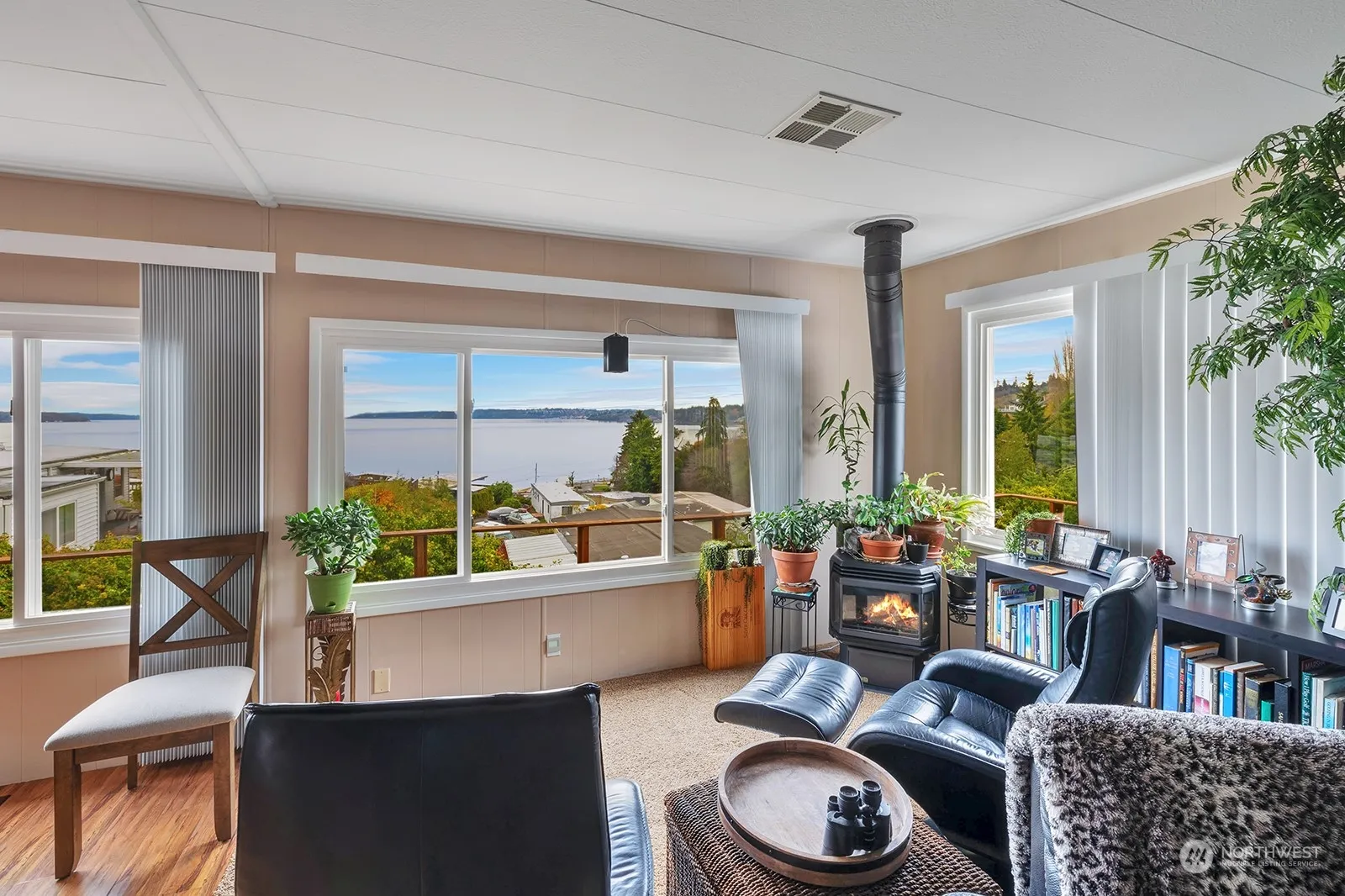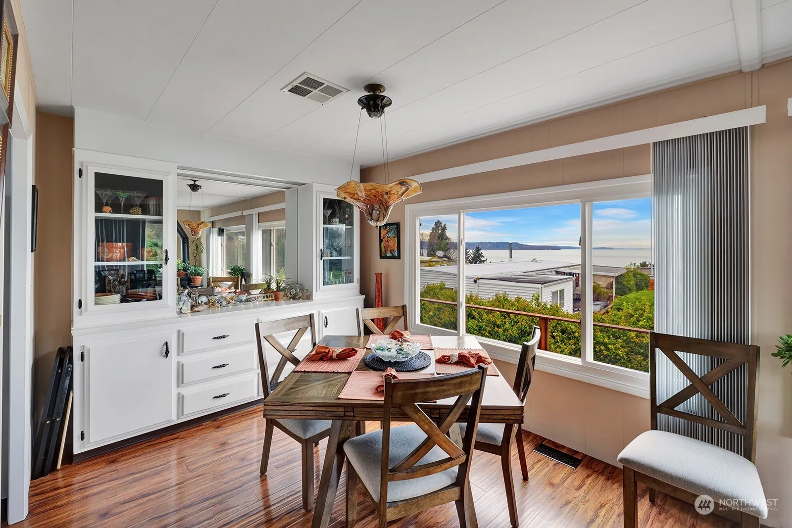 Unbelievable million dollar Sound View for under $350,000! Located right above the Redondo Beach drive, you can feel and breathe the salt air. Puget Sound and Olympic Mountains greet you all day and every day. Located in the 55+ Del Ray MH community, this meticulously maintained home features: New HVAC in 2021, quartz counters, gas stove, expanded tile walk in shower, vinyl windows and new skylights. Also has updated electrical panel, parking for three cars and extensive wrap around decking. Conveniently located just minutes to shops, dining and freeways. Park approval required. Home may be purchased partially or fully furnished (except for some personal items).