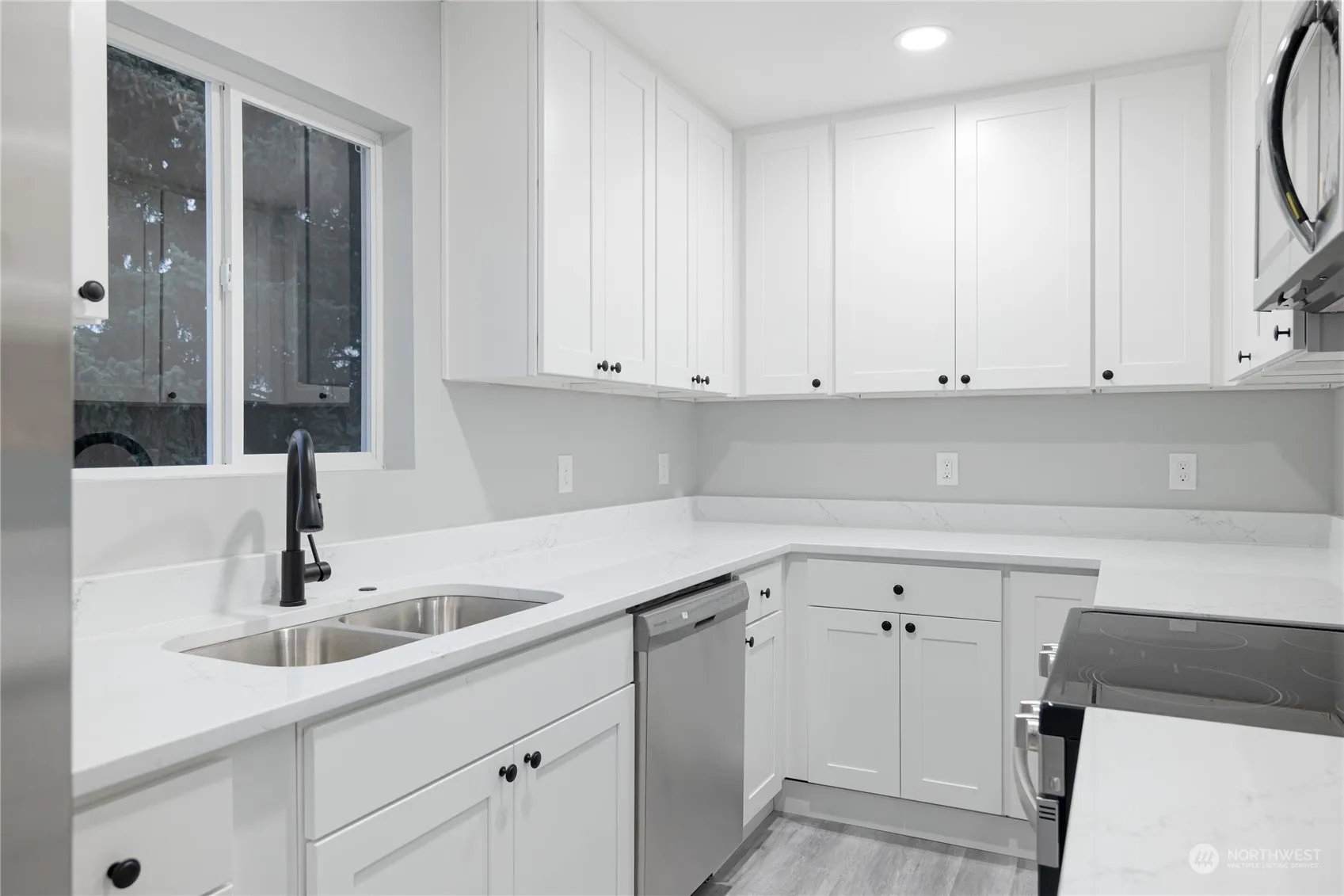 Tastefully updated 3-bedroom, 2.5-bath home on a picturesque 5.46-acre lot with Hollow Creek running through it—be sure to explore the property beyond the creek and fencing. The home features a main-floor primary suite with an en suite bath and walk-in closet, a fully updated kitchen with white shaker cabinets and quartz countertops, and luxury vinyl plank flooring. Enjoy a covered front porch, side deck, and a lower level with a second living area, two bedrooms, a full bath, and private backyard access surrounded by trees. The spacious shop with its own power meter offers great project potential but could use some TLC.