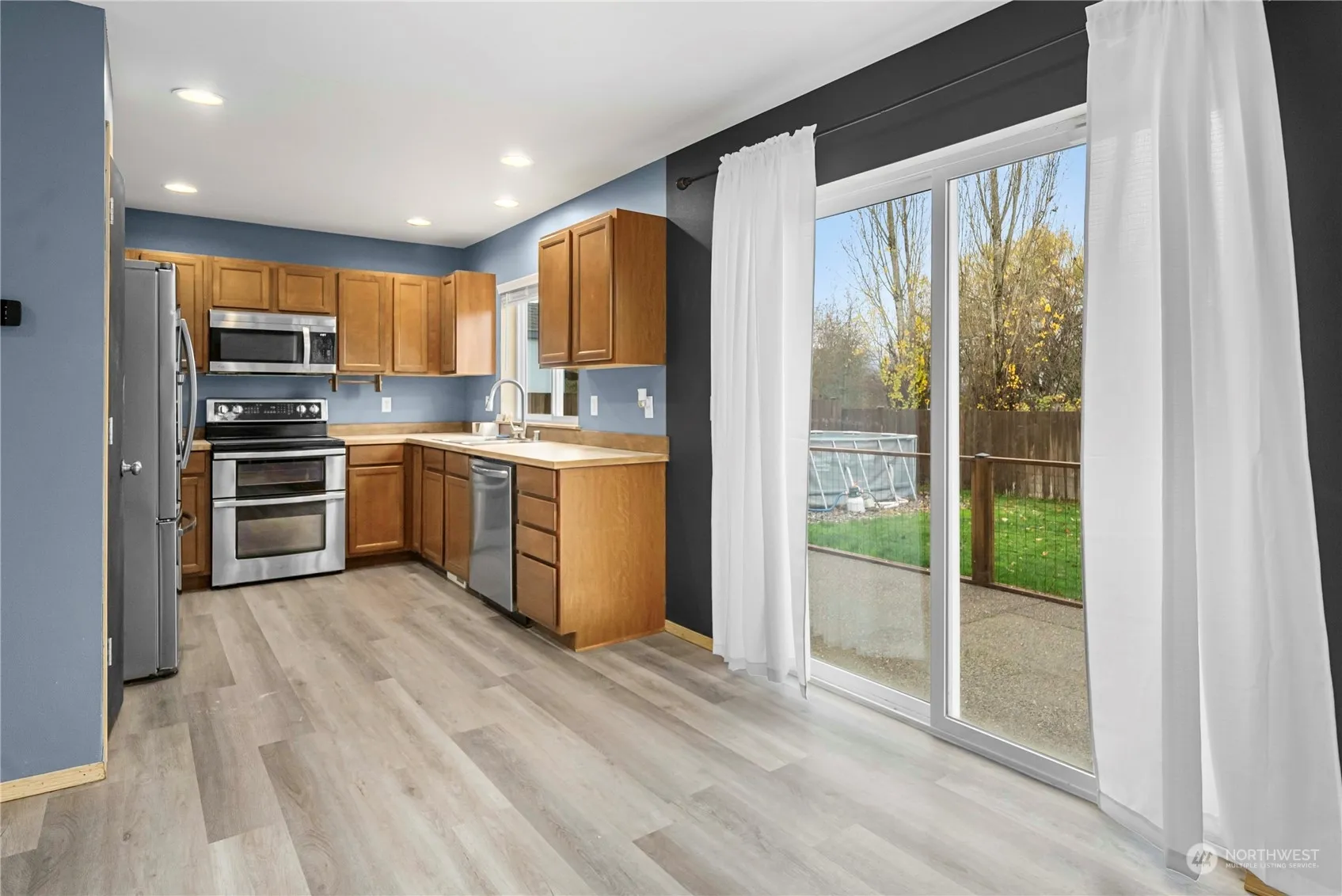 This amazing 4-bedroom, 2.5-bath home in Orting offers 2204 SF of comfortable living space on an 8064 SF fenced lot. Built in 2009, it features new interior paint, & newer vinyl plank flooring. The kitchen includes newer stainless steel appliances and a separate eating area. Upstairs, enjoy a large primary suite with a large walk-in closet, oversize tub, and a beautiful mountain view from bedroom. With a private fenced backyard and patio, cozy gas fireplace, new large gas water heater, family room, living room, and a versatile fourth bedroom/bonus room, this home is perfect for entertaining and relaxation. Great location close to shopping, schools, hiking/biking/walking trails, and lots more!! Quiet street on cul-de-sac, ideal location!