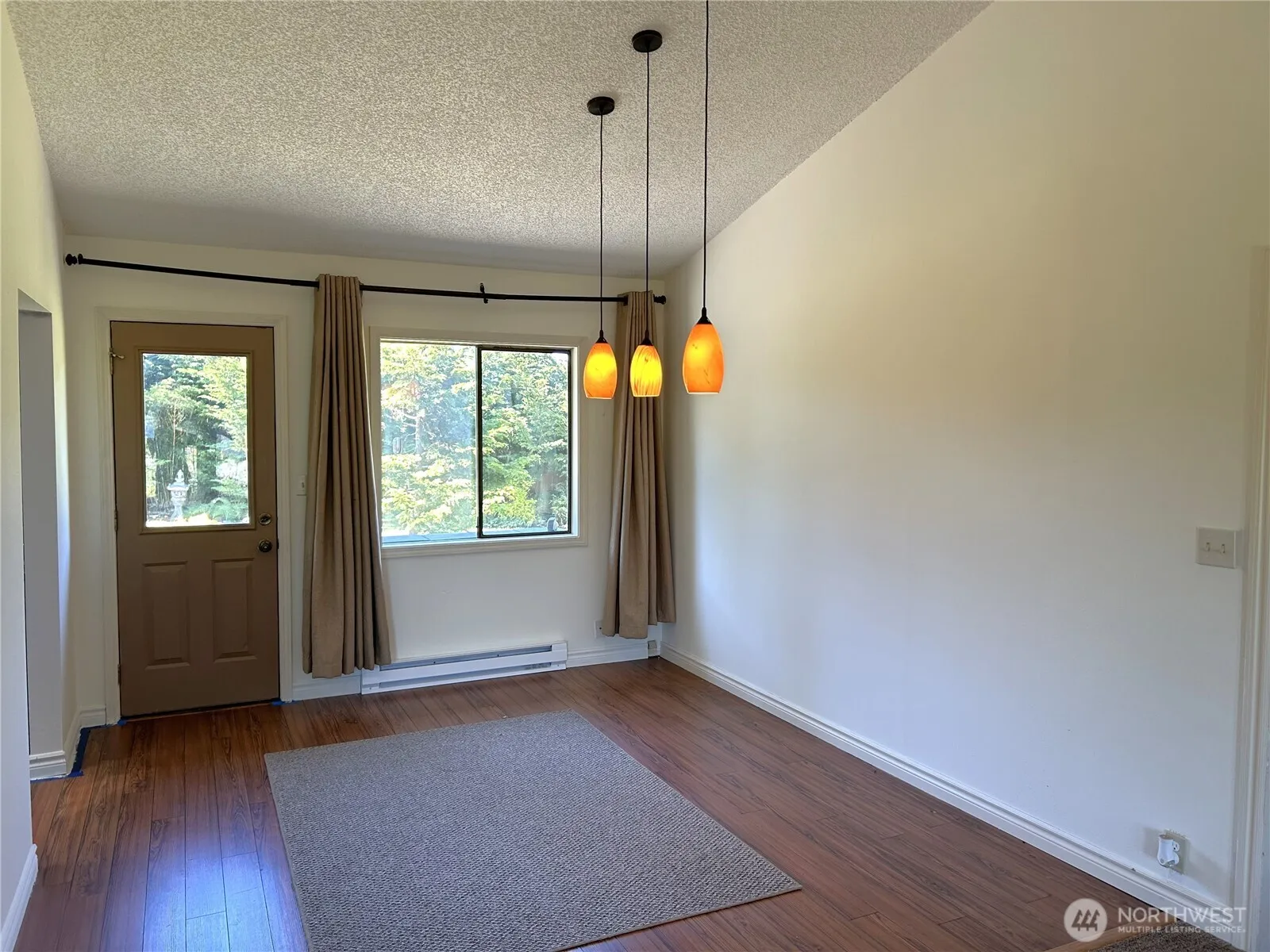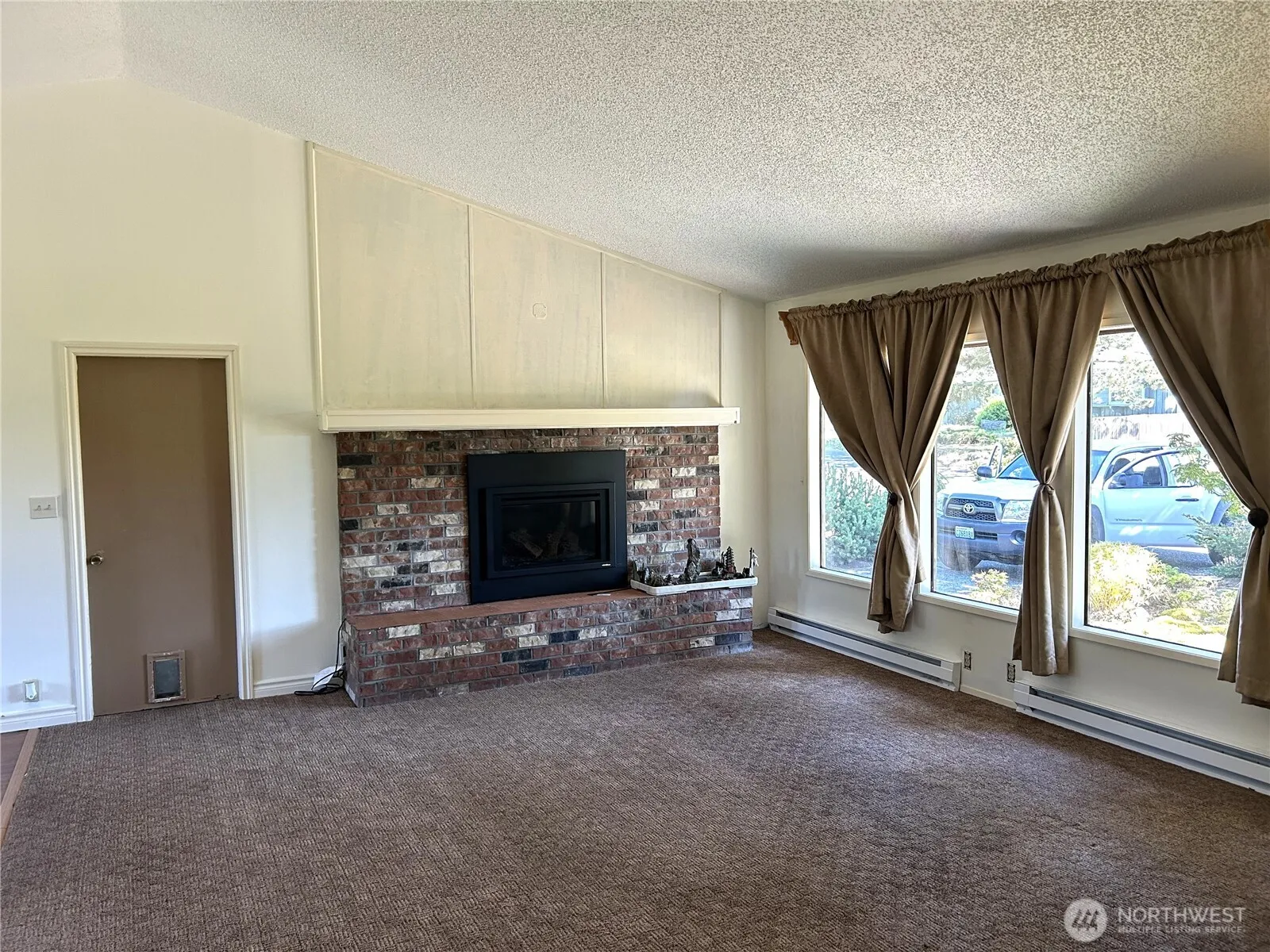Great starter home! Cute south-facing house in town with 1288 sf, 3 bedrooms, 2 full baths, vaulted ceiling, propane fireplace, bonus room as attached unfinished garage conversion of 448 sf, beautiful landscaping front and back, large backyard is partially fenced, corner lot, and close to grocery store and town center.