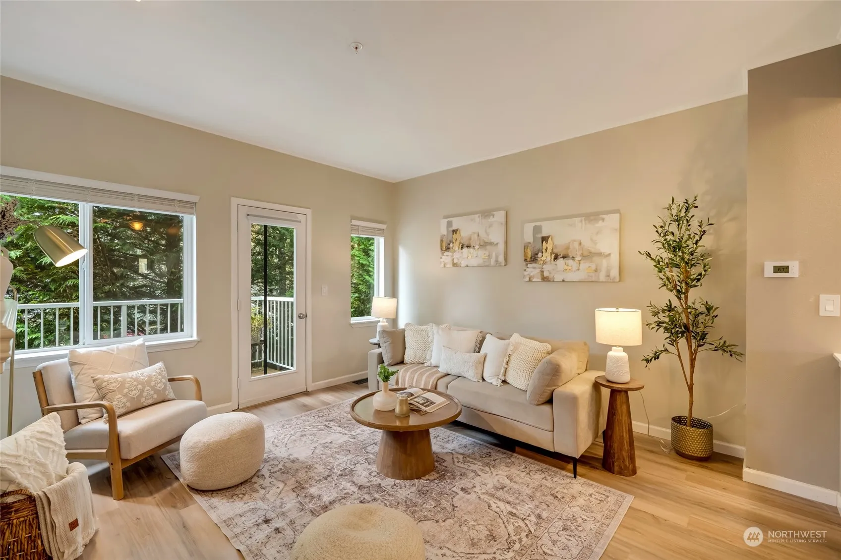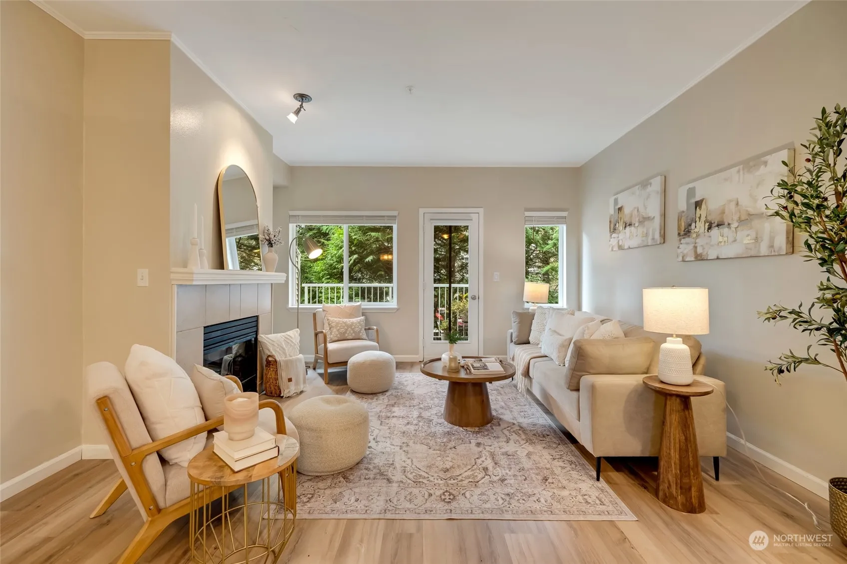Mill Creek, at the intersection of everything, a convenient life and a sense of community. Recently refreshed townhome spans 3 levels with a functional, traditional layout. Thoughtfully, tastefully updated over the past two years with scratch-resistant plank flooring, new carpet, fresh paint, stainless steel appliances. Nice size bedrooms, built-in closet organizers, and new bathroom vanities, flooring & fixtures. Private deck off main floor living space, gas fireplace for comfortable time spent at home. Move on in and you are barely a mile up the trail from beloved hotspots like Azul, Kafe Neo, Visible Coffee Roasters, shops, so much more. A commute to work? Just minutes to I-405 or I-5. A terrific investment and place to call home!