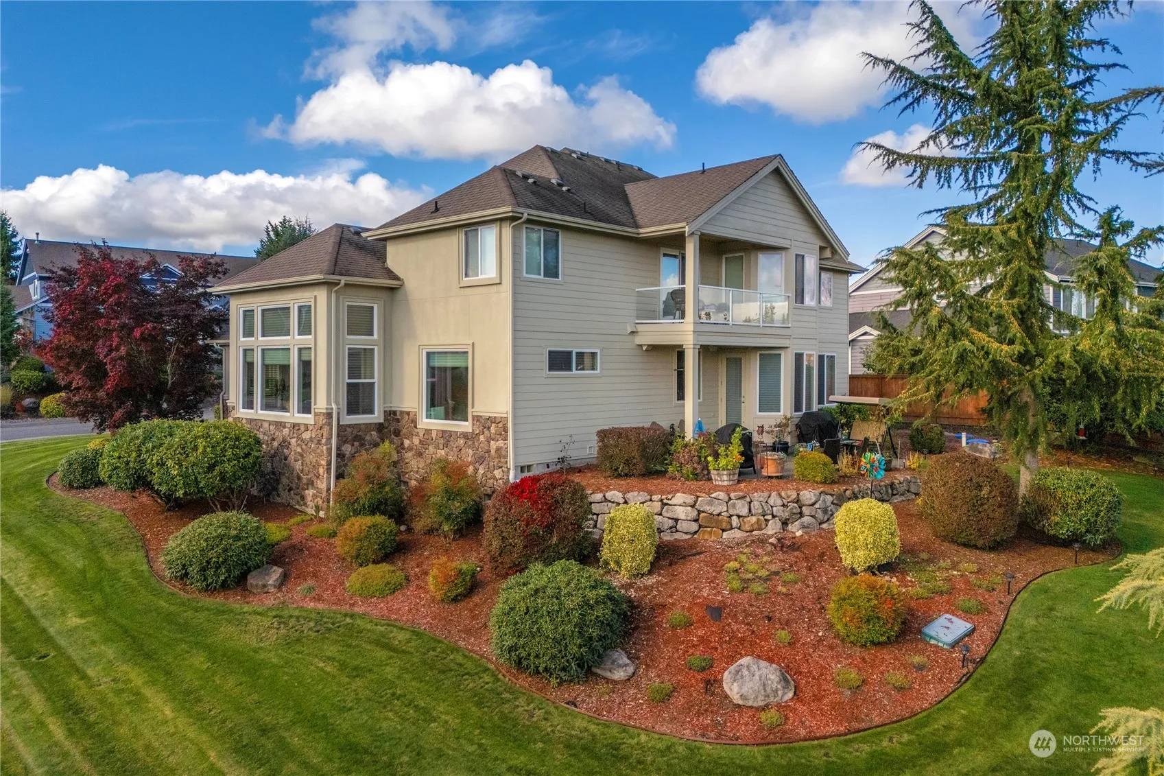 This beautiful Zetterberg home is located in the sought-after Quiet Water community. This home offers timeless craftsmanship throughout. The home features 4 spacious bedrooms, 2.5 baths, & main floor office. The home boasts refinished hardwood floors, updated bathrooms, vaulted ceilings, fresh interior and exterior paint, A/C, and a central vacuum system for effortless living. The professionally landscaped yard with a sprinkler system provides year-round beauty, while breathtaking views of Mount Rainier elevate the charm of this exceptional property. Oversized 3 car garage with storage. A perfect blend of elegance, functionality, and location awaits. Dieringer School District. Assumable VA loan at 2.75%.