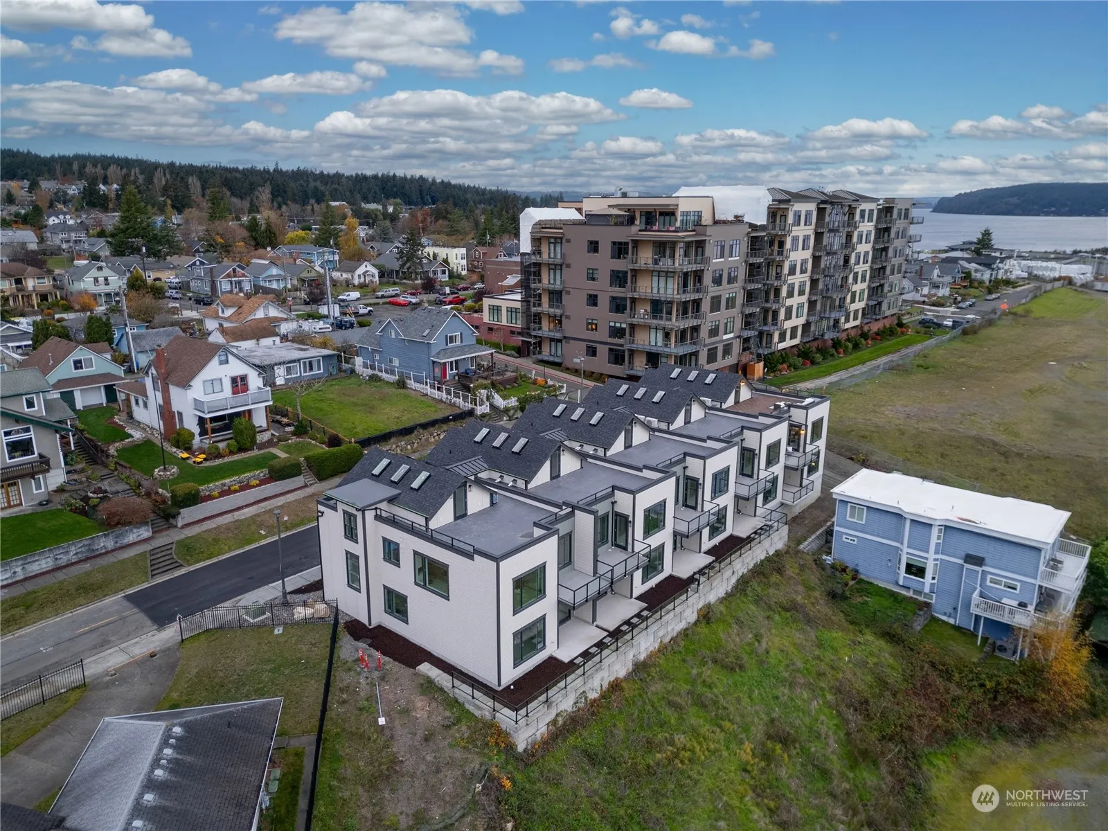 Experience the PINNACLE of Modern Living in these Stunning NEW TOWNHOMES! Each offers designer finishes, a spacious OPEN FLOORPLAN, mult. patios/decks providing panoramic PNW VIEWS. Enjoy low-maint. townhome ownership w/out the hassle of HOA fee! 1st flr feat. convenient front entry, 2 bedrms, office, full bath, garage w EV port & eastward patio. 2nd flr boasts open-concept kitchen, dining area, pantry, powder bath & a lg living room w deck overlooking the sound. The LUX PRIMARY SUITE offers dressing room, full bath & dual vanity. Ascend to the 3rd & final flr & discover versatile bonus room leading out to a huge OPEN AIR SKYDECK, prime for social gatherings. Buyer could install Elevator at later date. Pls inquire w/listing agent.