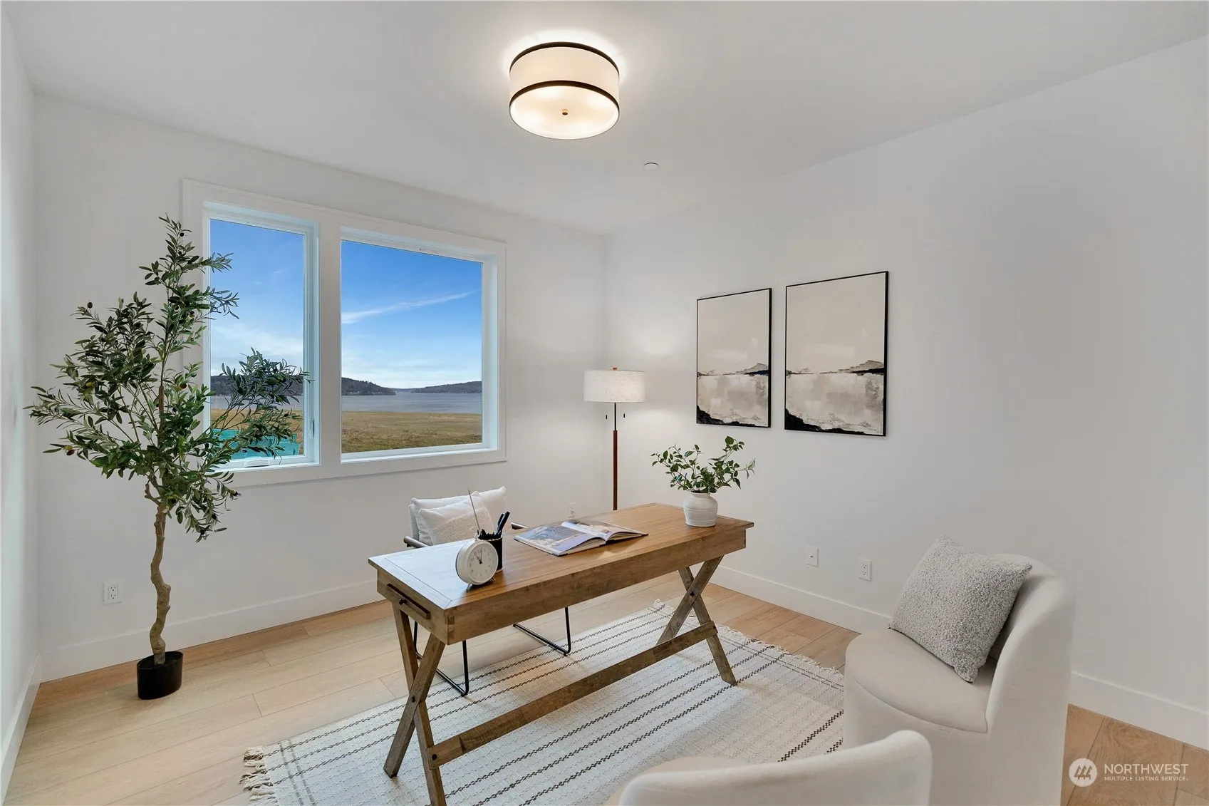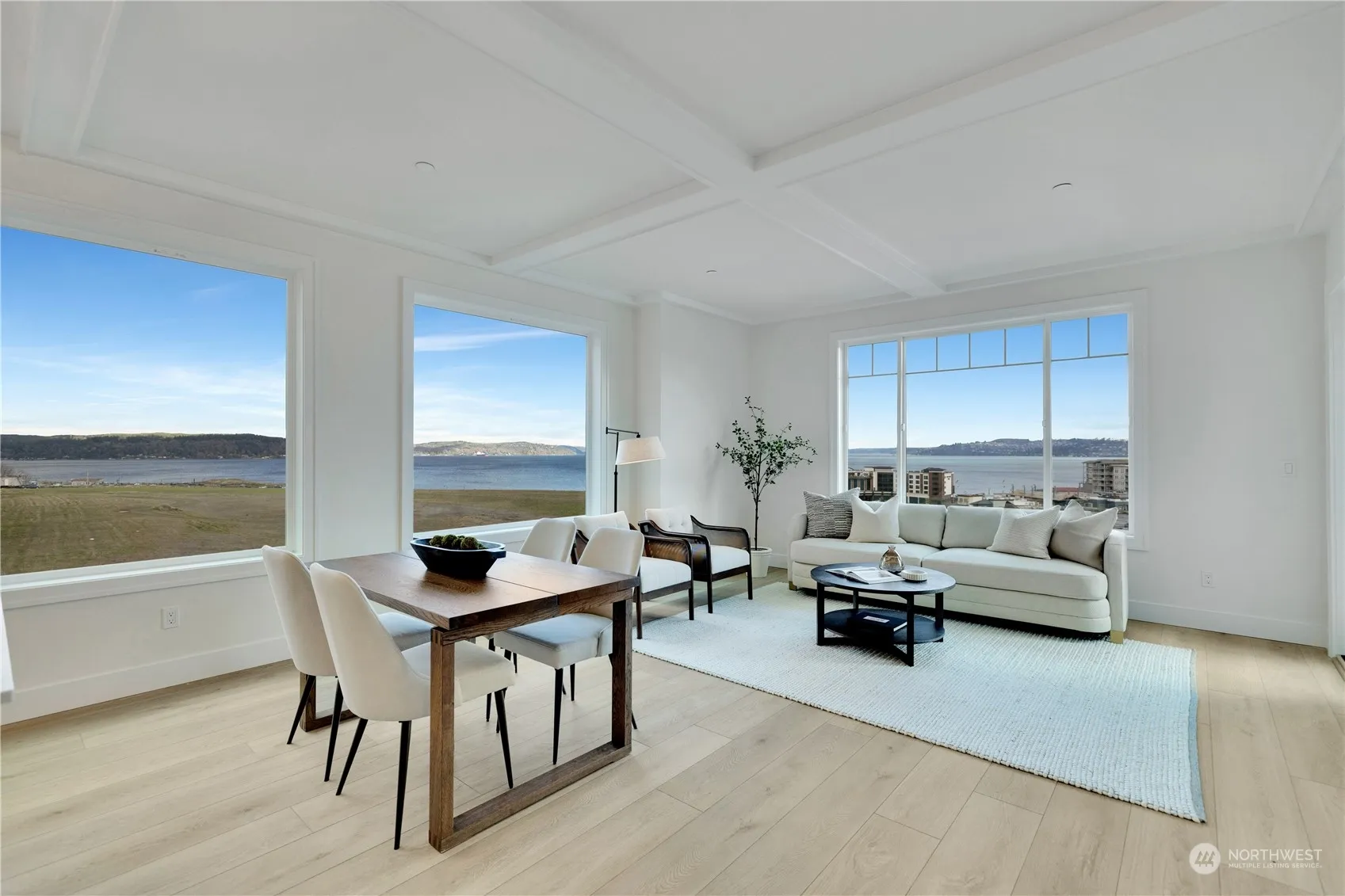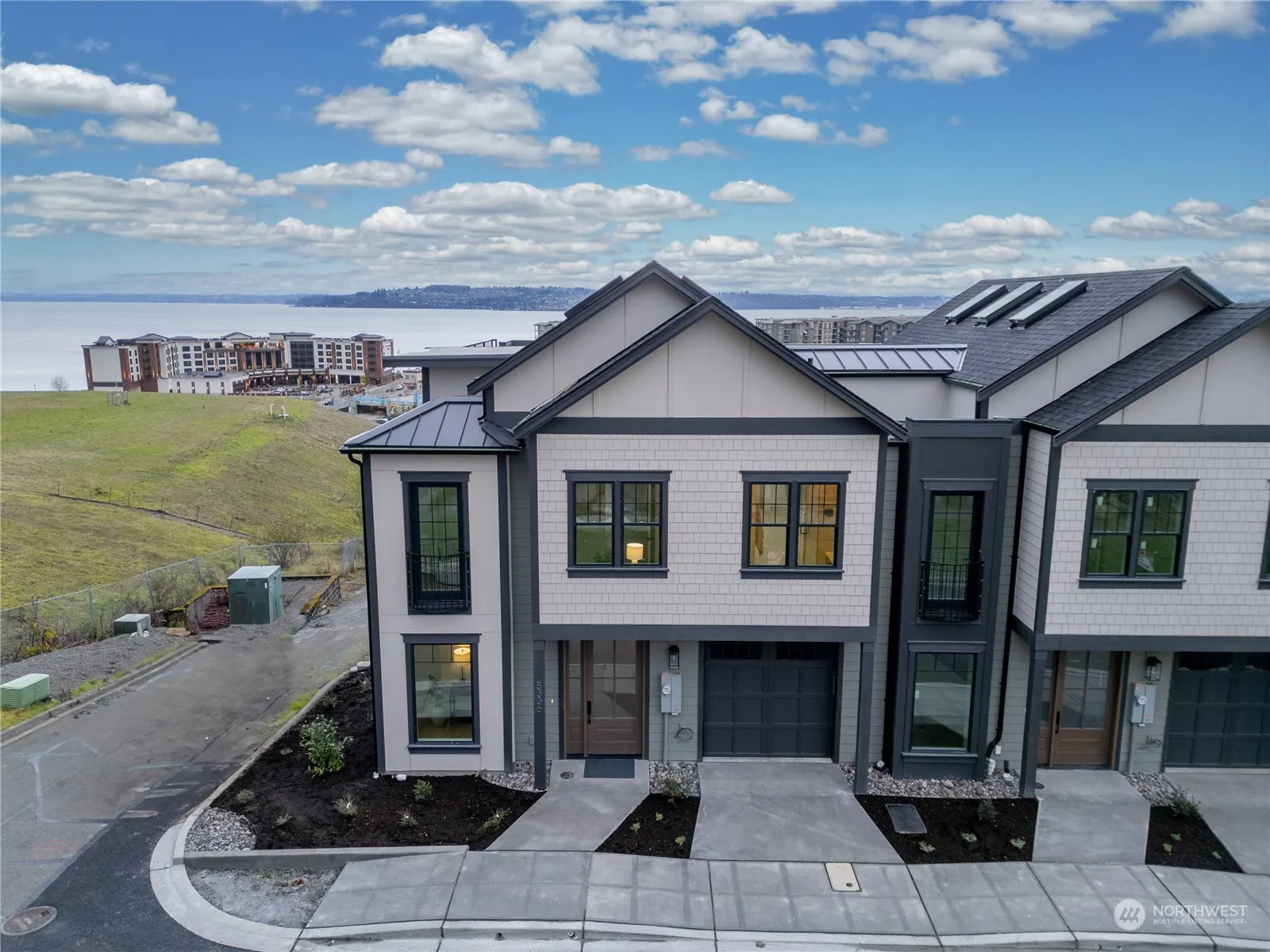 Experience the PINNACLE of Modern Living in these Stunning NEW TOWNHOMES! Each offers designer finishes, a spacious OPEN FLOORPLAN, mult. patios/decks providing panoramic PNW VIEWS. Enjoy low-maint. townhome ownership w/out the hassle of HOA fee! 1st flr feat. convenient front entry, 2 bedrms, office, full bath, garage w EV port & eastward patio. 2nd flr boasts open-concept kitchen, dining area, pantry, powder bath & a lg living room w deck overlooking the sound. The LUX PRIMARY SUITE offers dressing room, full bath & dual vanity. Ascend to the 3rd flr & discover versatile bonus room leading out to a huge OPEN AIR SKYDECK, prime for social gatherings. Buyer could install elevator at later date-pls inquire w/listing agent.